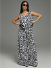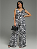 Костюм Аманда состоит из топа и брюк. Вырез горловины топа на полочке и спинке V-образный. Лямки топа выполнены из декоративной резинки. Брюки прямые от бедра с отрезным поясом.