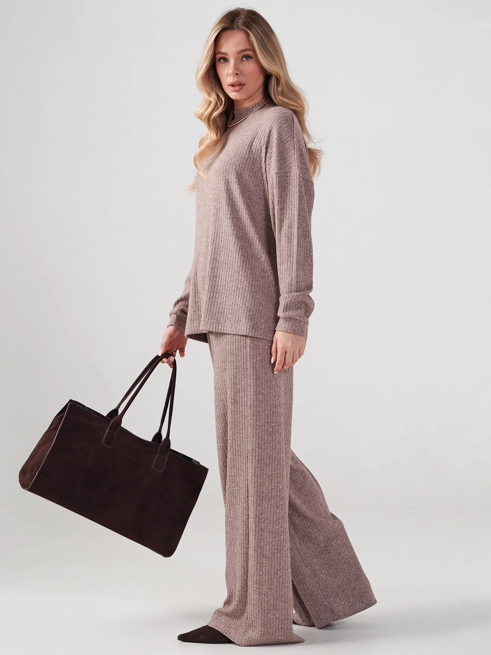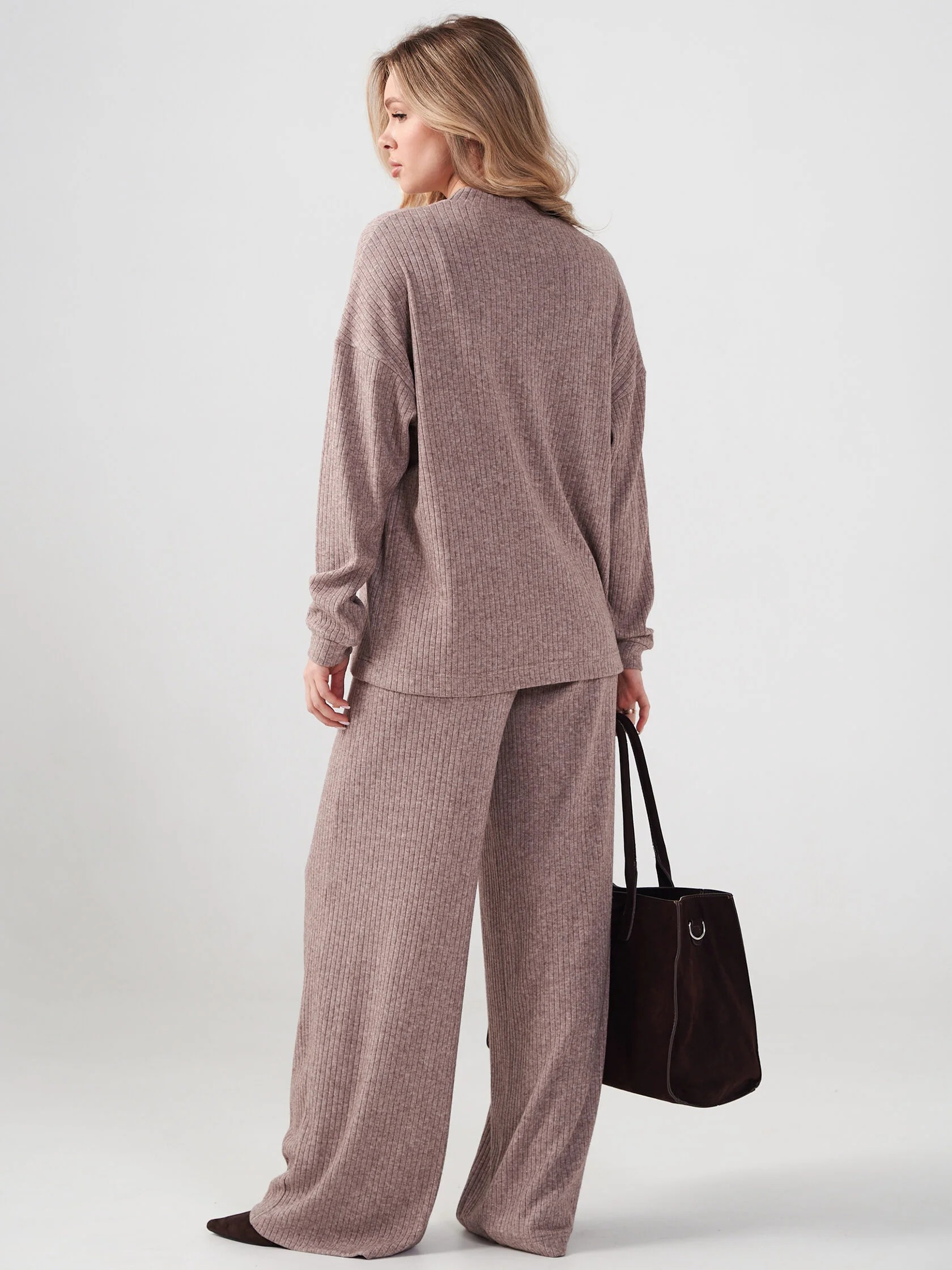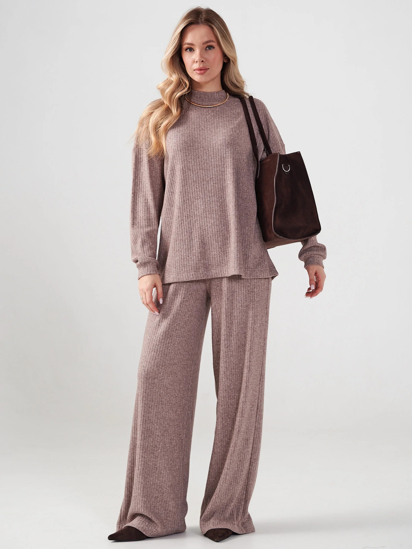 Костюм женский "Ангора" 2412-Л состоит из толстовки и свободных брюк палаццо. Костюм отлично подойдёт для офиса и вечерних прогулок.