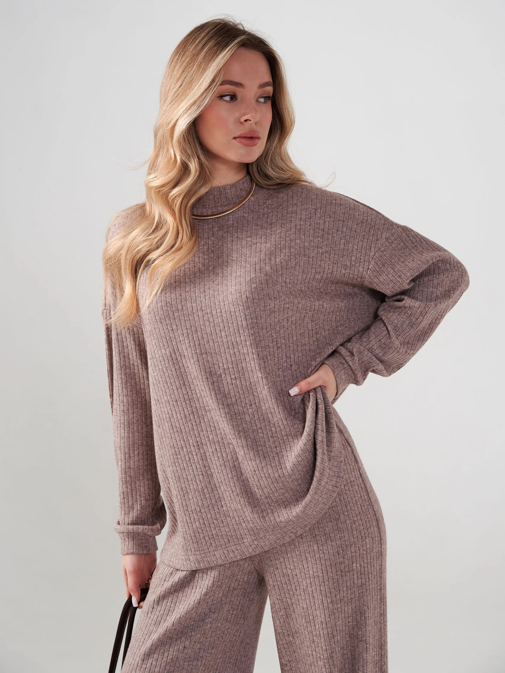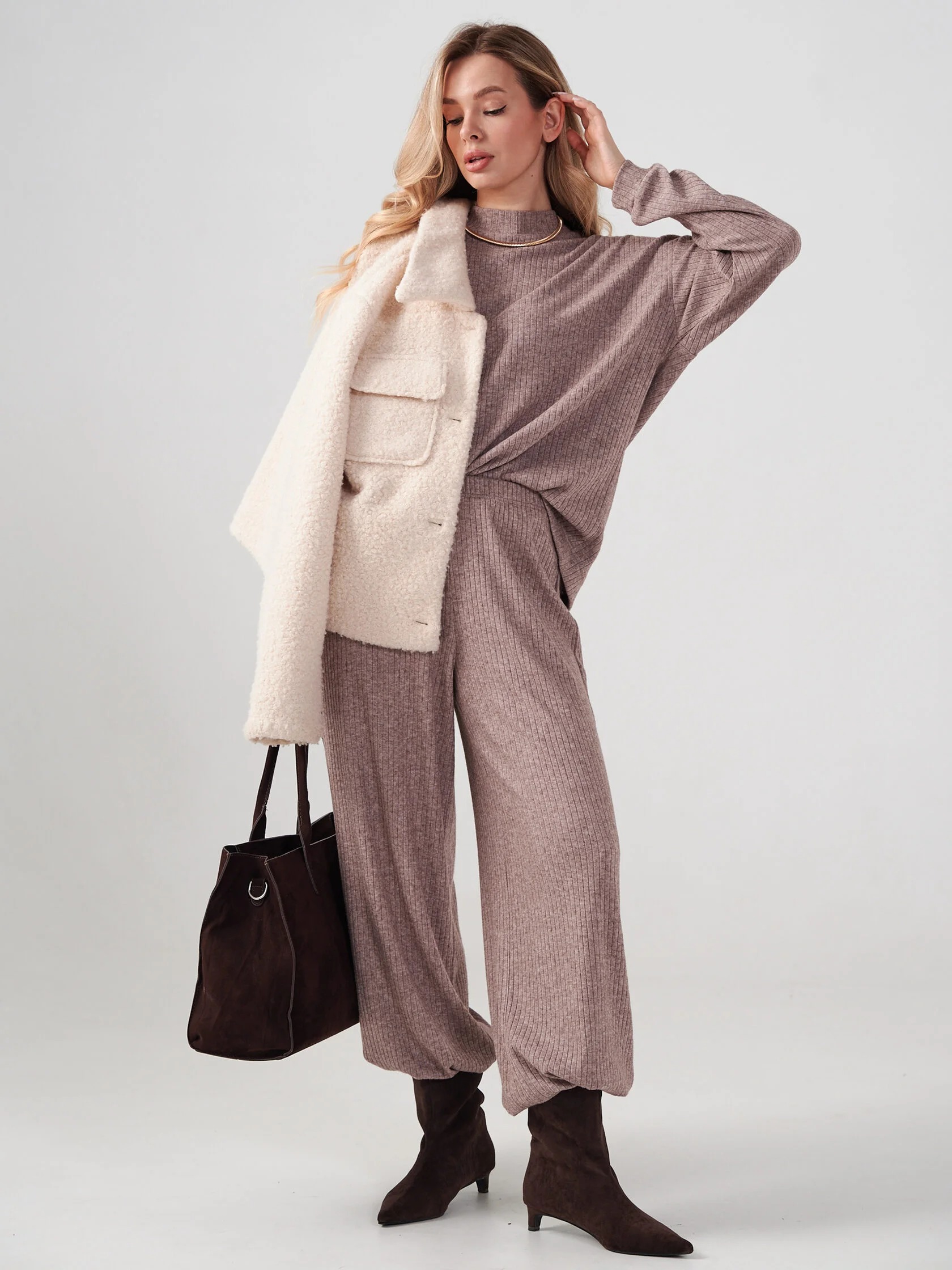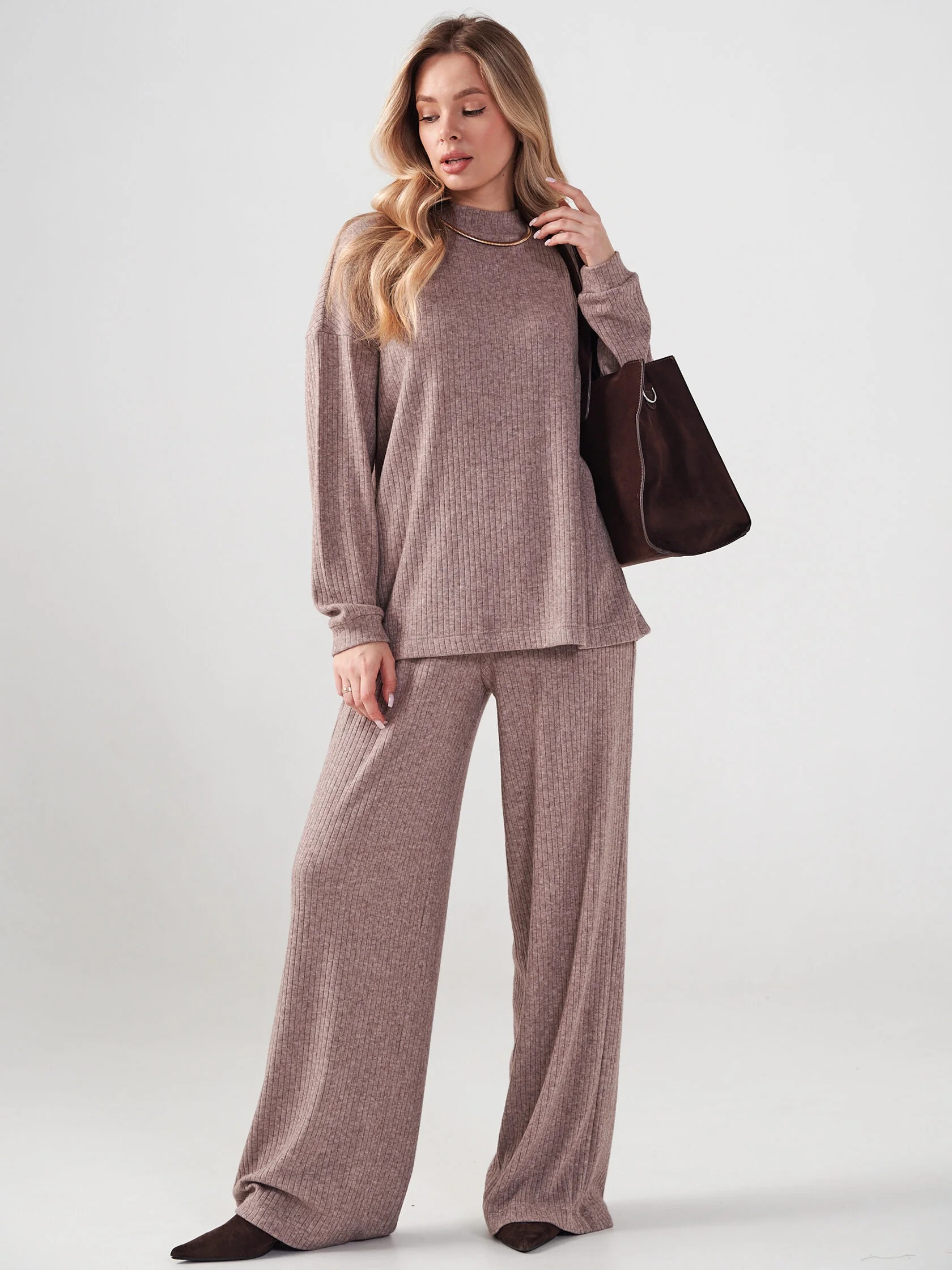 Костюм женский "Ангора" 2412-Л состоит из толстовки и свободных брюк палаццо. Костюм отлично подойдёт для офиса и вечерних прогулок.