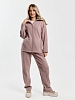 Костюм молодежный из гладкокрашенного трикотажного полотна «флис», Толстовка - полуприлегающего силуэта, с длинными втачными рукавами, воротником «стойка», карманами в рельефных швах, центральной бортовой застежкой на тесьму «молния». Брюки длинные, полуприлегающего силуэта, на притачном поясе с эластичной тесьмой внутри и карманами в боковых швах. Передние половины застрочены поцентральным линиям, низ брюк обработан подгибкой с вложением эластичной тесьмы и регулируется по ширине с помощью фиксаторов.