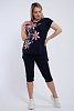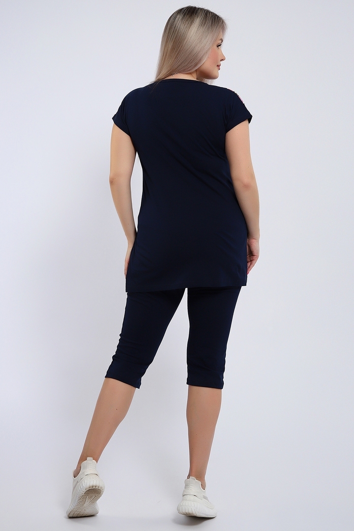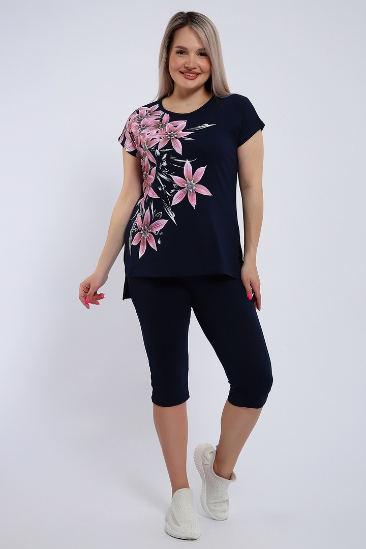 Женский костюм с бриджами из кулирки — это комплект из туники или футболки и бриджей, изготовленный из трикотажного полотна кулирка (100% хлопок). Такая одежда подходит для дома, отдыха, прогулок и активного времяпрепровождения благодаря воздухопроницаемости, мягкости и комфорту.