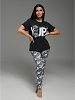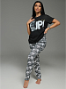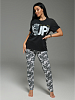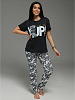 Красивый, уютный домашний костюм должен быть у каждой женщины. Эта одежда позволяет легко двигаться, чувствовать себя свободно. Кроме того, домашняя «униформа» выглядит красиво. Женщина в аккуратном наряде выглядит стильно, привлекательно. Мы решили найти для Вас подходящий комплект, состоящий из футболки и брюк, изготовленный из двух видов хлопковой ткани, прекрасно гармонирующих между собой. Спереди на футболке оригинальный принт. Больше удобства придадут карманы на брюках. В нашем костюме Вам будет удобно и комфортно отдыхать и заниматься домашними делами. Он станет незаменимой и любимой вещью в Вашем гардеробе.