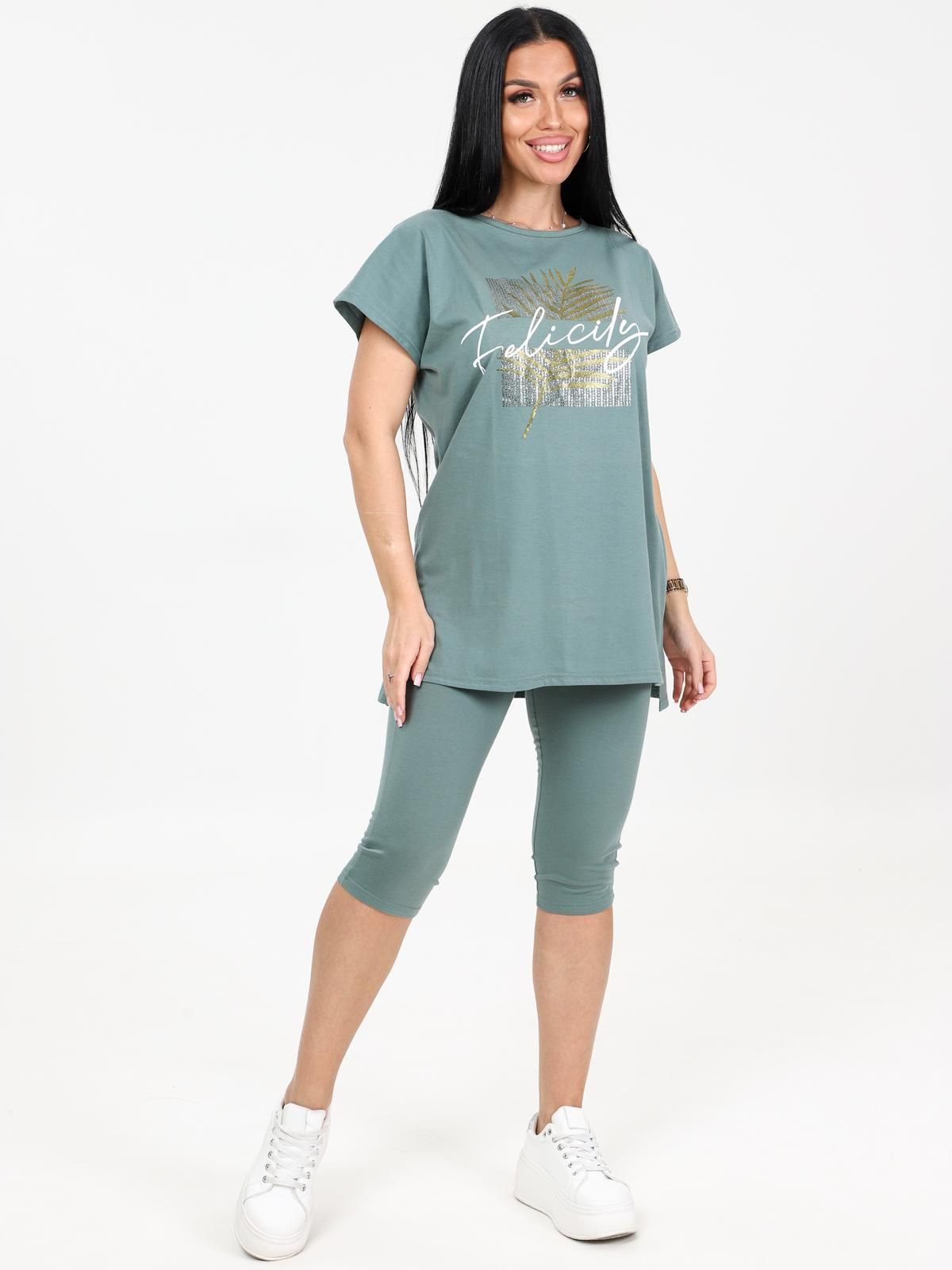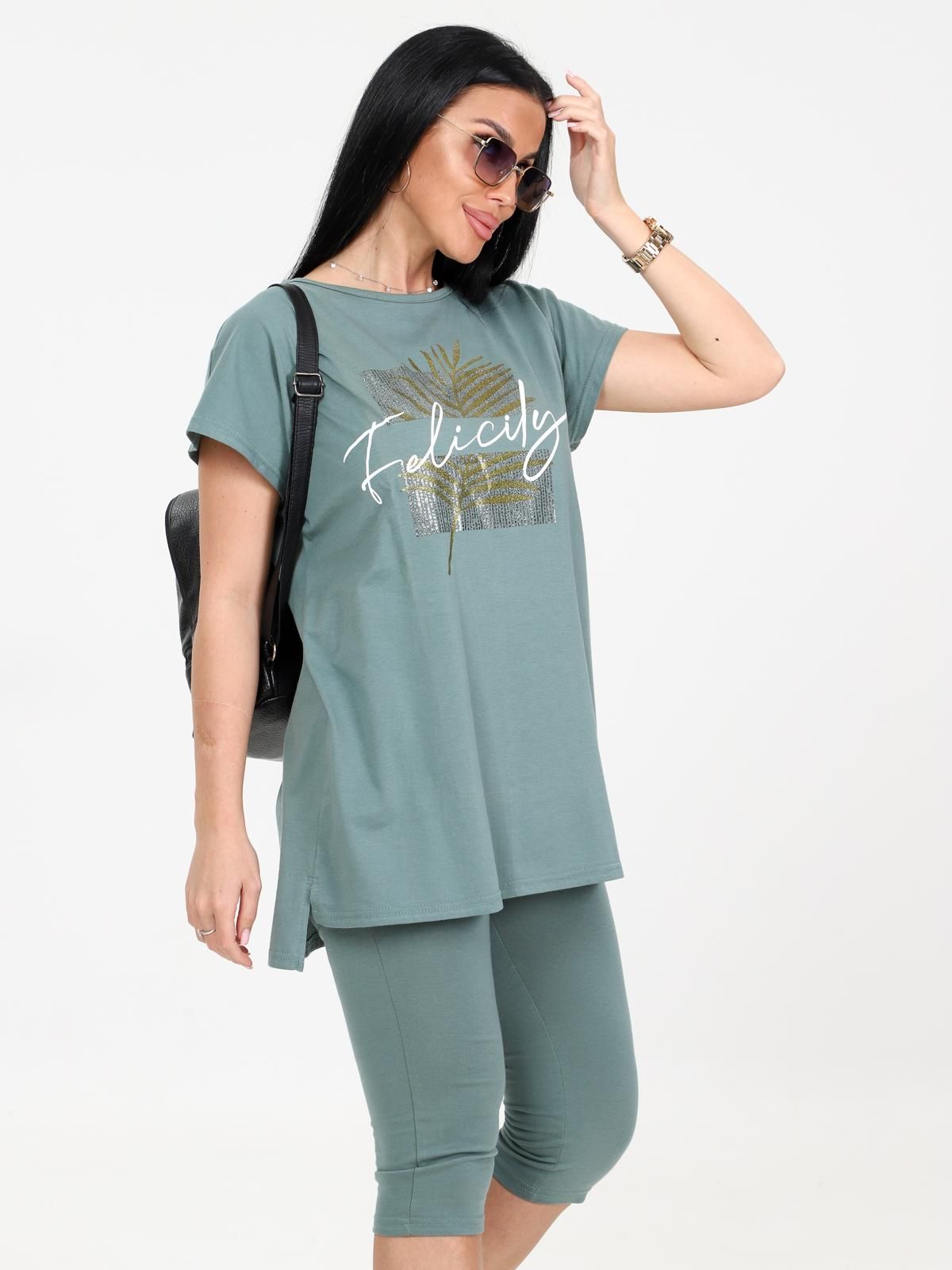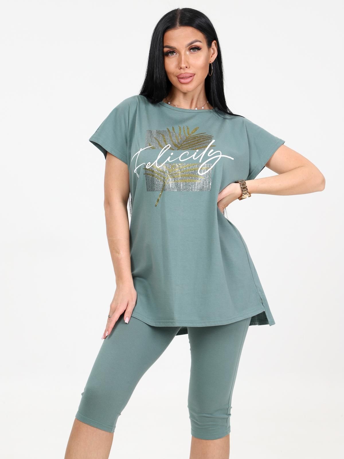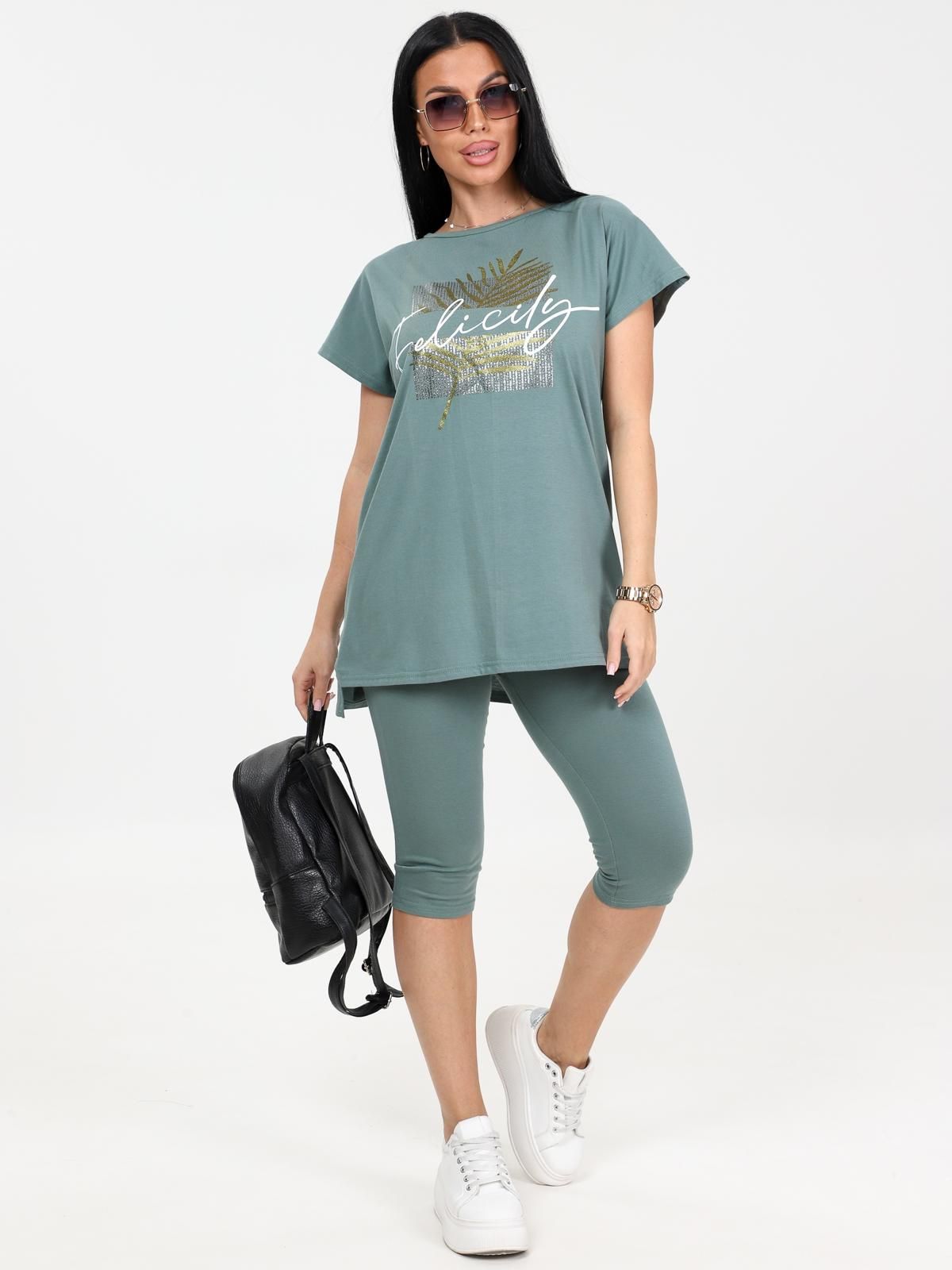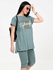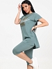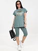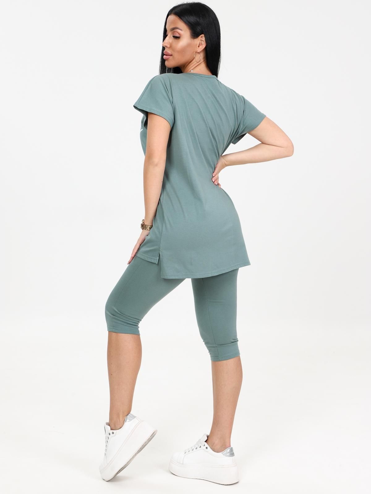 Женский костюм с бриджами из кулирки — это комплект из футболки или туники и бриджей, изготовленный из 100% хлопка. Кулирка — мягкая и дышащая ткань, которая хорошо подходит для повседневной носки, дома, спорта или путешествий.