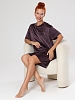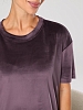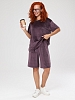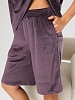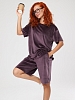Женский велюровый костюм с шортами. Костюм состоит из свободной футболки и шорт, выполненных из мягкого велюра. Этот материал приятен на ощупь, хорошо сохраняет тепло и подходит для домашнего отдыха или сна.
