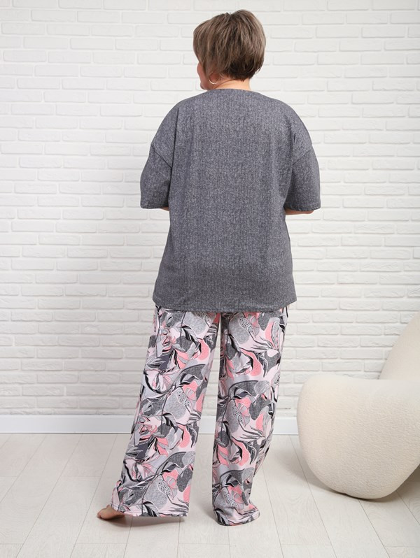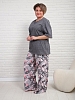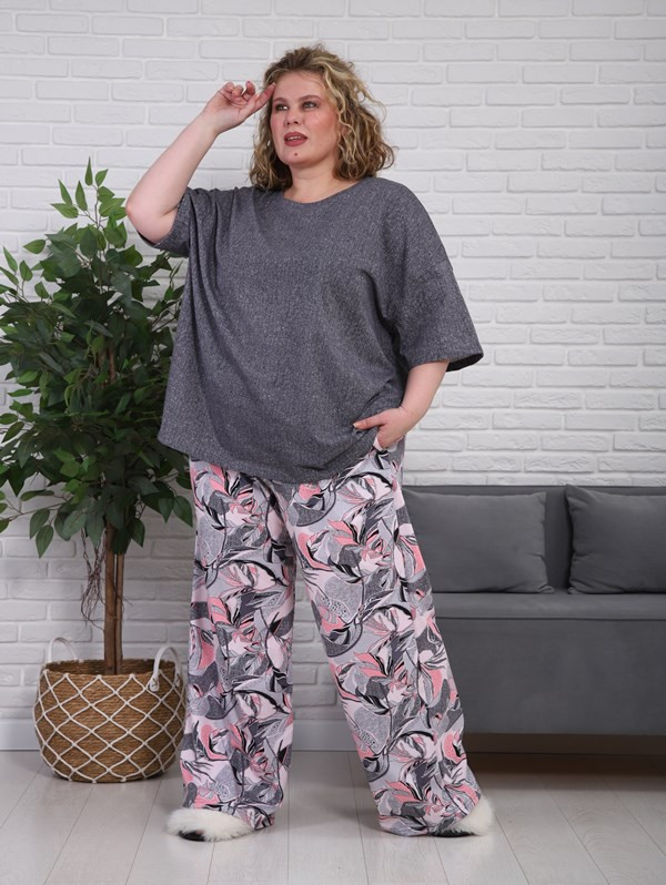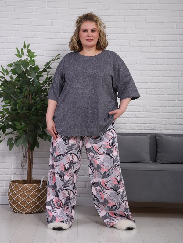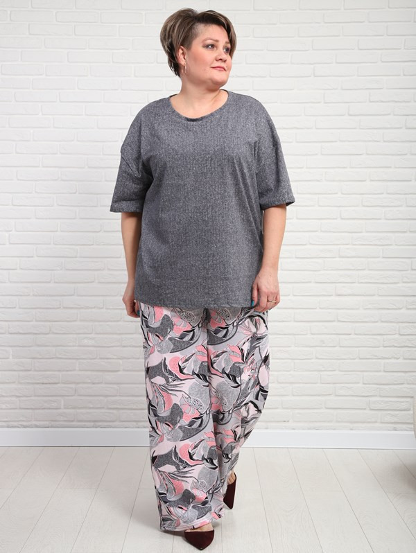 Женский костюм с брюками из кулирки — это комплект одежды, состоящий из футболки и брюк, изготовленный из тонкого трикотажного полотна. Кулирка — это материал из 100% хлопка, который хорошо пропускает воздух, приятен к телу и подходит для повседневной носки, дома или в тёплое время года.