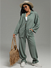 Костюм Диана состоит из блузы и брюк. Блуза прямого силуэта с втачным рукавом длинной 3/4. Брюки прямые от бедра с отрезным поясом.