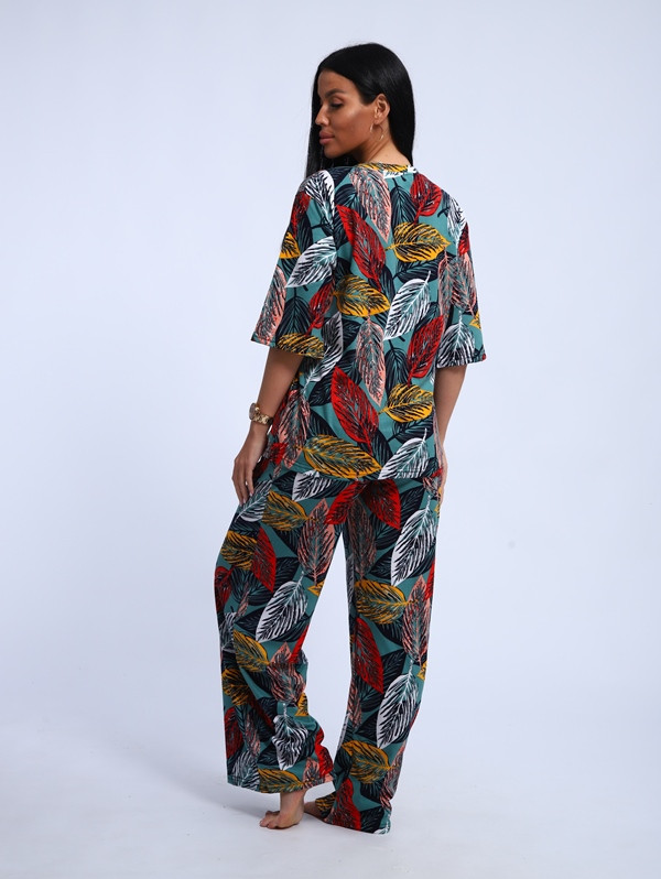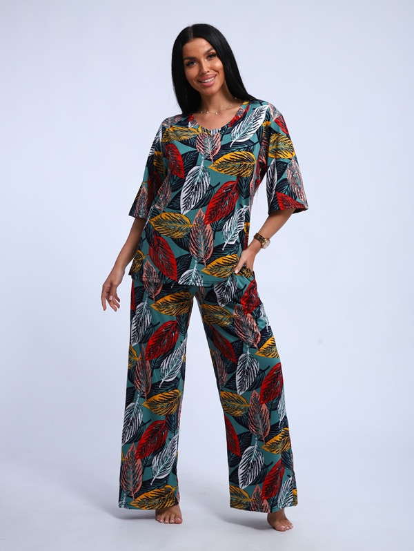 Женский костюм Джина - 2 представляет собой элегантный комплект, состоящий из футболки и свободных брюк. Модель идеально подходит как для повседневной носки, так и для отдыха.