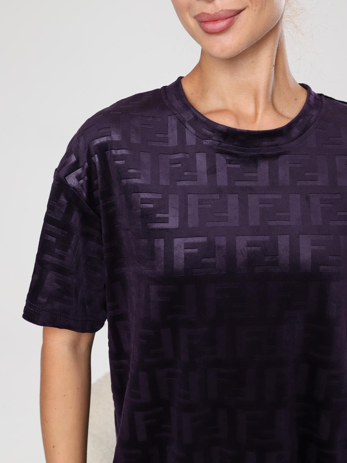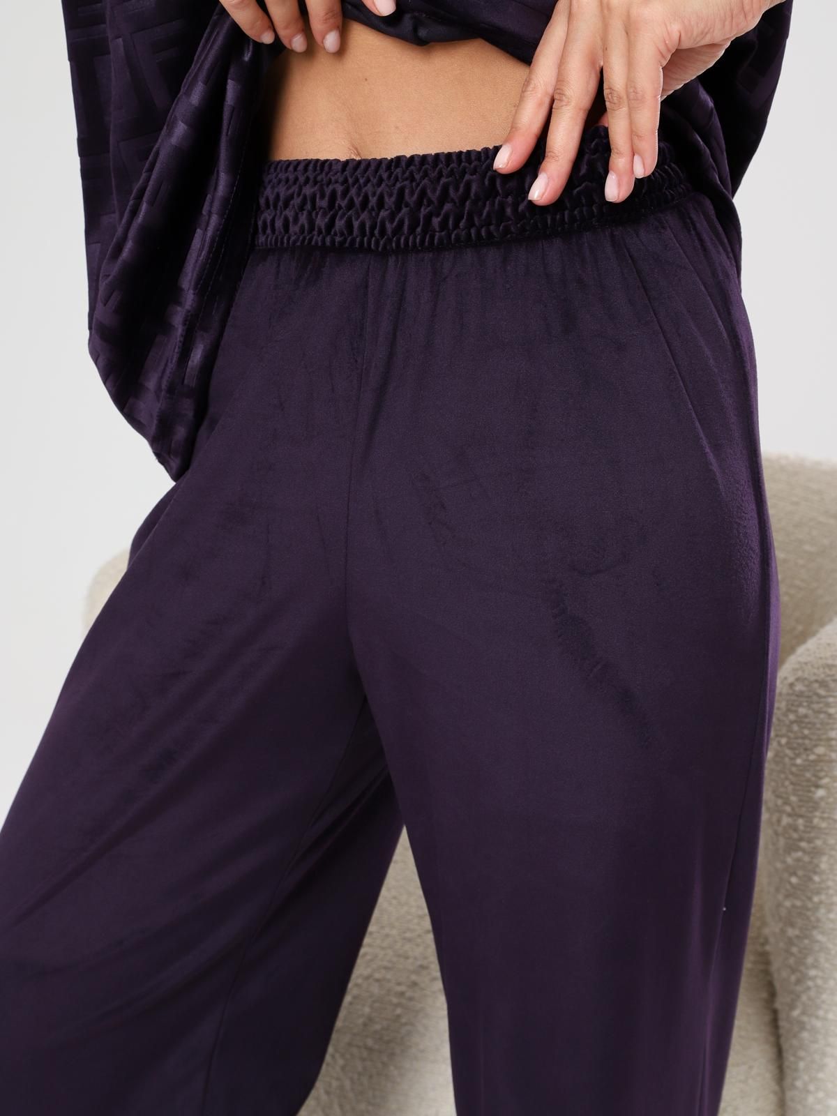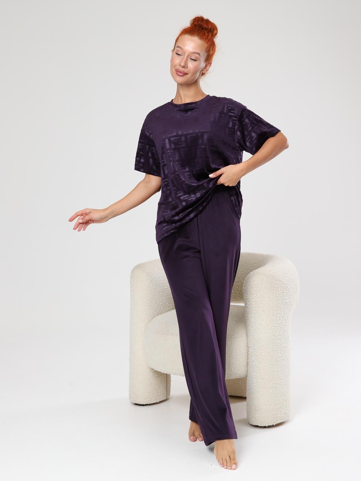 Женский велюровый костюм, состоящий из свободного свитшота и брюк прямого кроя. Костюм выполнен из мягкого велюра, что делает его комфортным для повседневной носки, прогулок или домашнего отдыха.