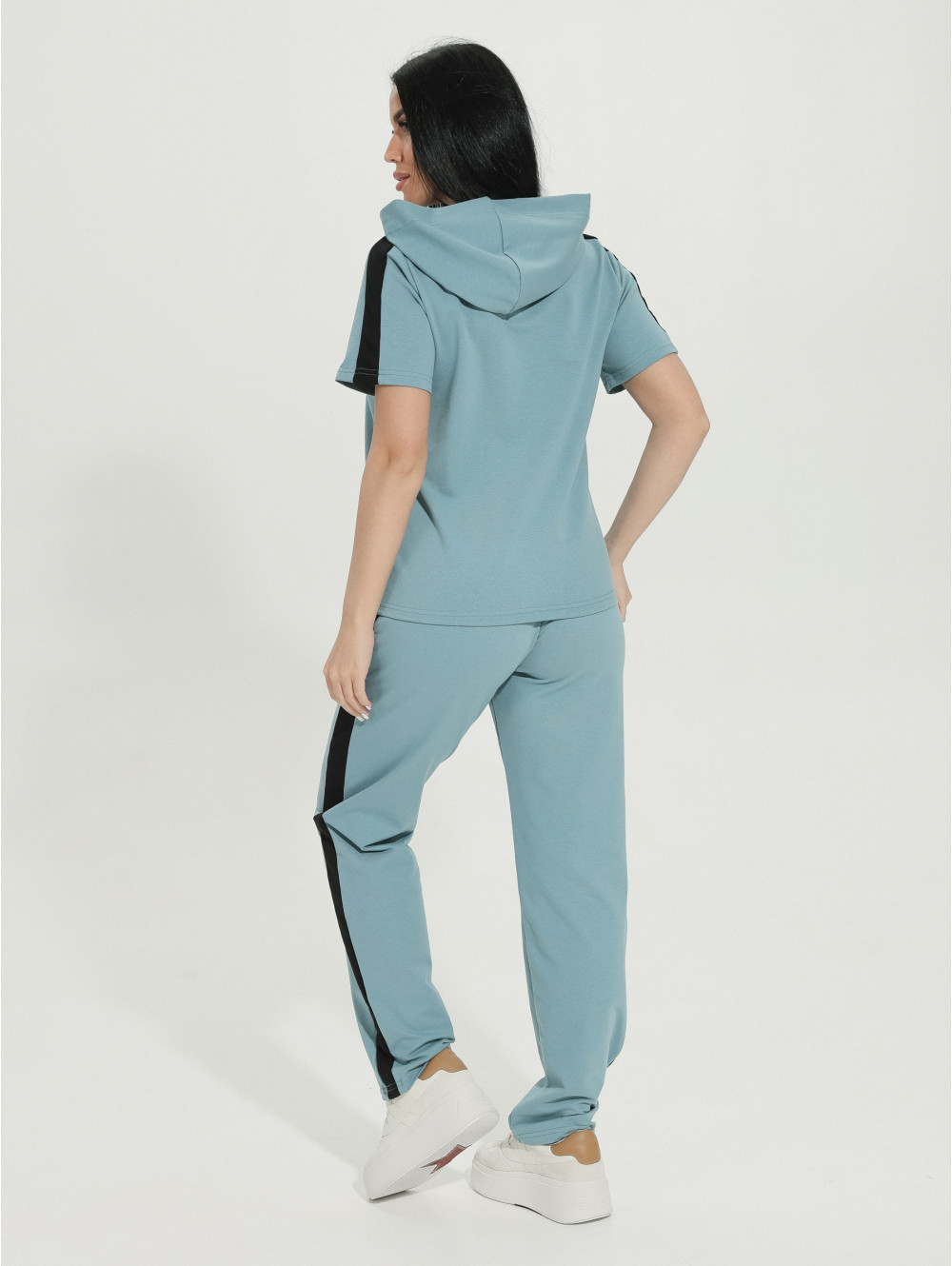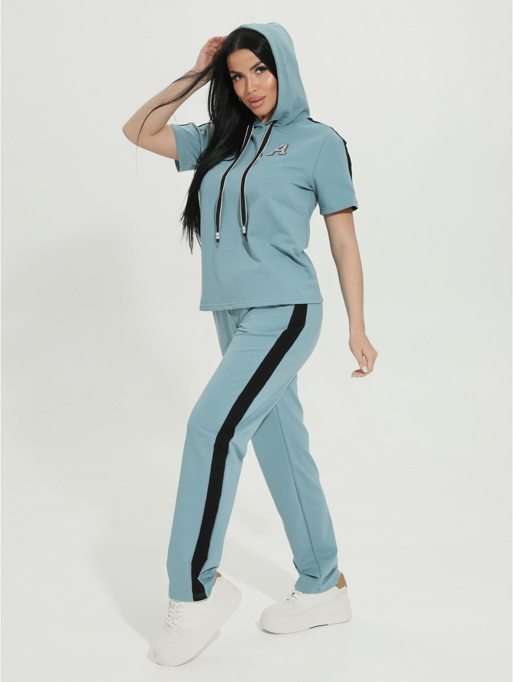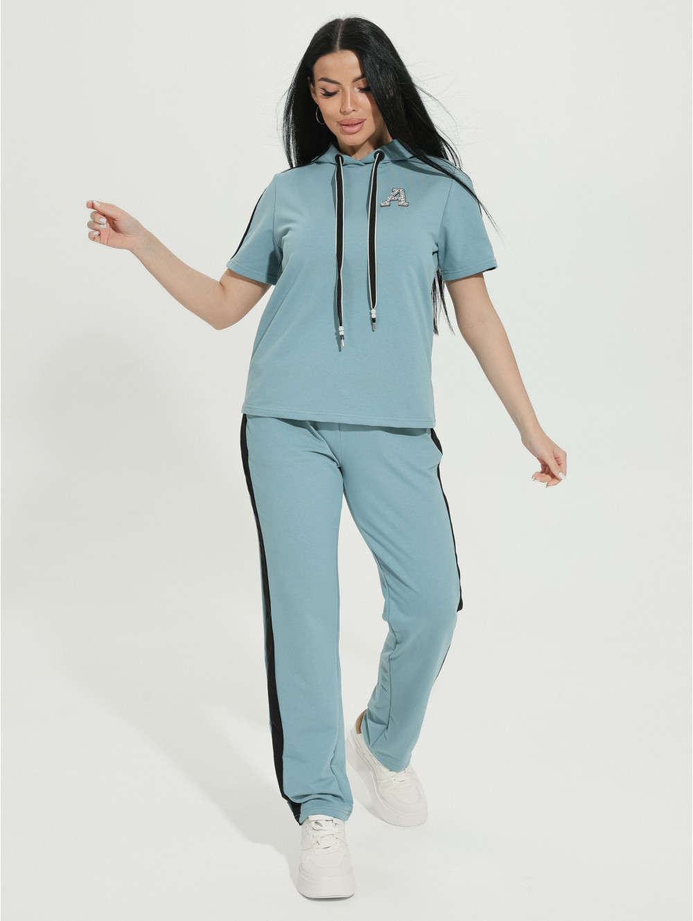 Представляем Вам наш костюм ФАНТАСТИКА, состоящий из кофты и брюк с карманами. Кофта с капюшоном, край которого стягивает декоративный шнурок с оригинальным наконечником. Рукав короткий. Дополнением к образу служат лампасы и стильная наклейка со стразами. Футер изготавливается из хлопка. Благодаря этому, ткань позволяет коже "дышать", великолепно сохраняя при этом тепло. Футер хорошо впитывает влагу и, при этом, остается гипоаллергенным. Благодаря эластичной нити, костюм надолго сохранит форму.
