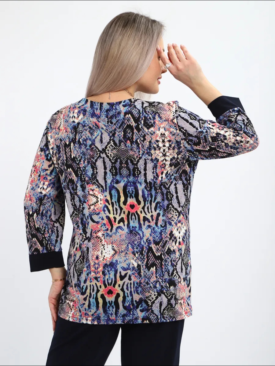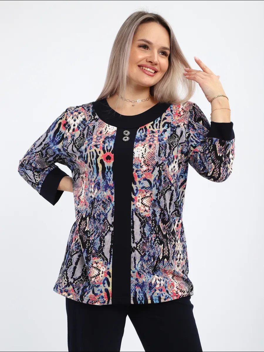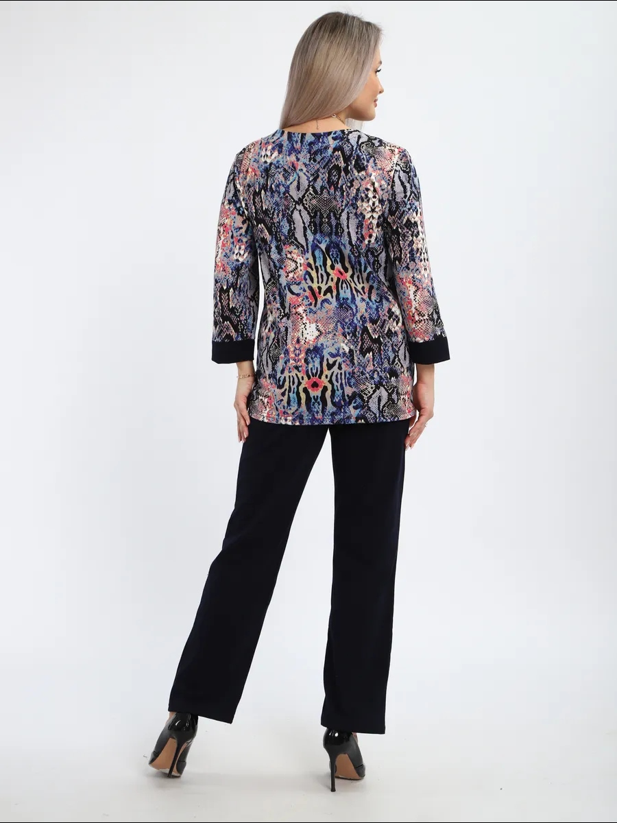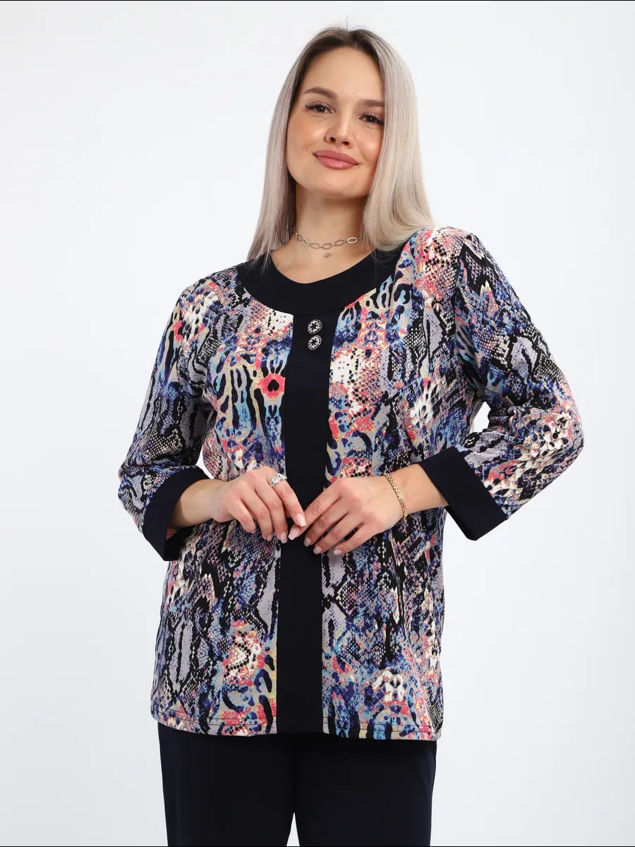 Эффектный женский костюм "Фазенда-2" мод. А260 из 100% хлопка прекрасный вариант для летнего отдыха, прогулок, для дома и путешествий. Домашний костюм женский из трикотажа высокого качества. Летний костюм из футболки с округлым вырезом с рукавом 3/4 и брюк на резинке. Костюм женский со штанами обеспечивают красивый внешний вид и при этом не сковывают движений. Женский домашний комплект свободного покроя очень приятен к телу. Женский трикотажный костюм удобный и комфортный для повседневной и домашней носки. Футболка свободная, прямого кроя, с манжетами и двумя накладными карманами. Брюки комфортной длины, с высокой посадкой на талии. Отлично подойдет как пижама для сна так и для повседневной домашней носки.