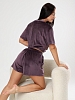 Велюровый женский комплект домашней одежды (пижама), состоящий из футболки и шорт.