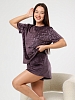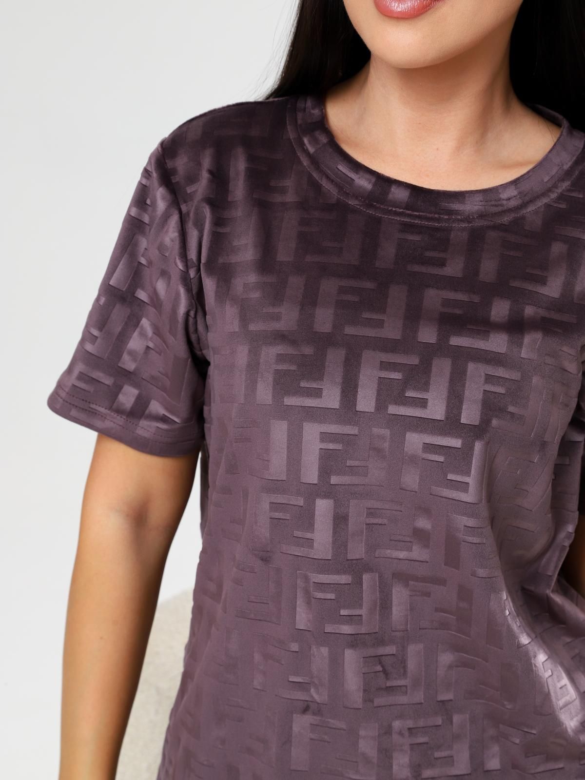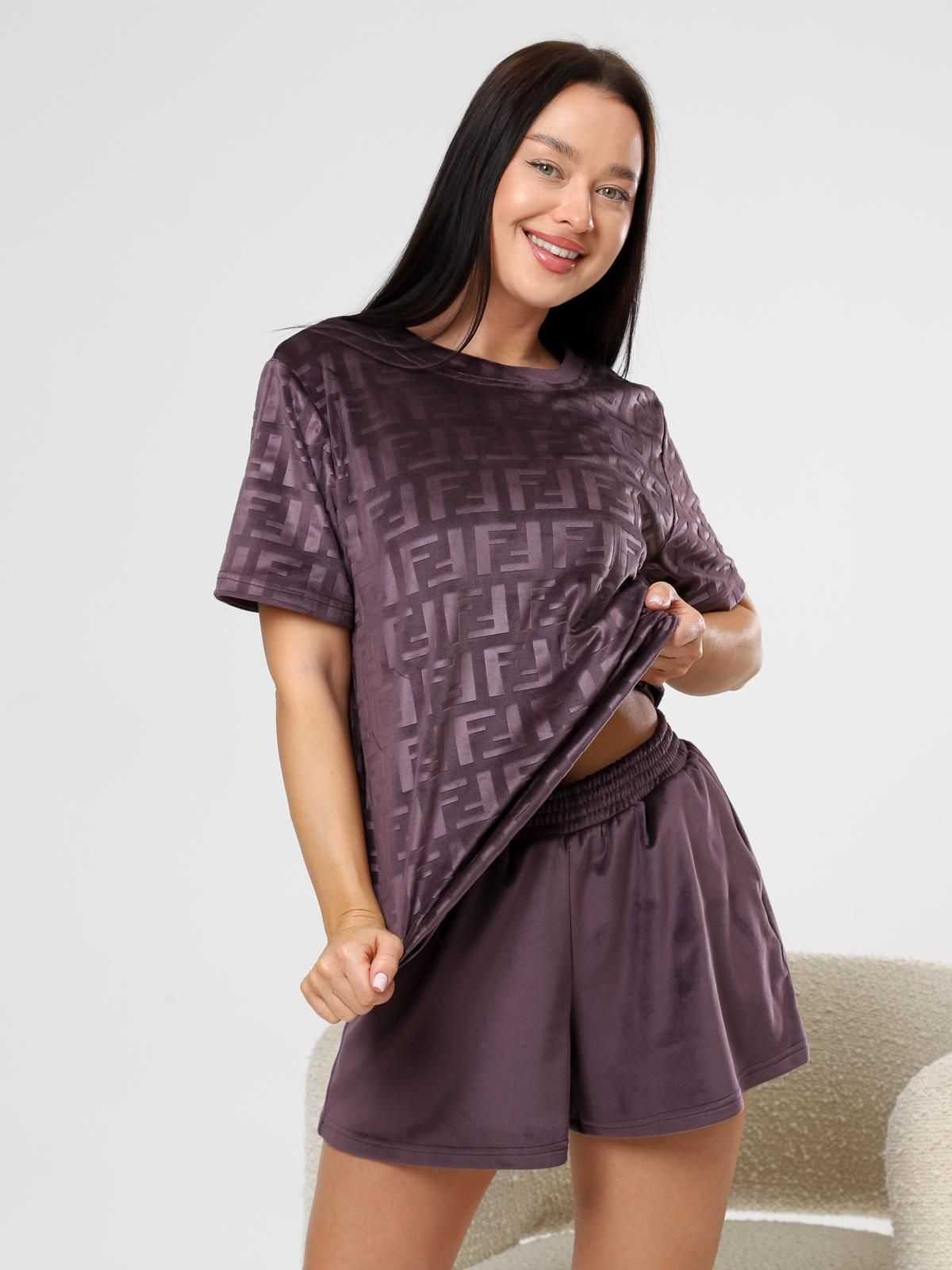 Велюровый женский комплект домашней одежды (пижама), состоящий из футболки и шорт.