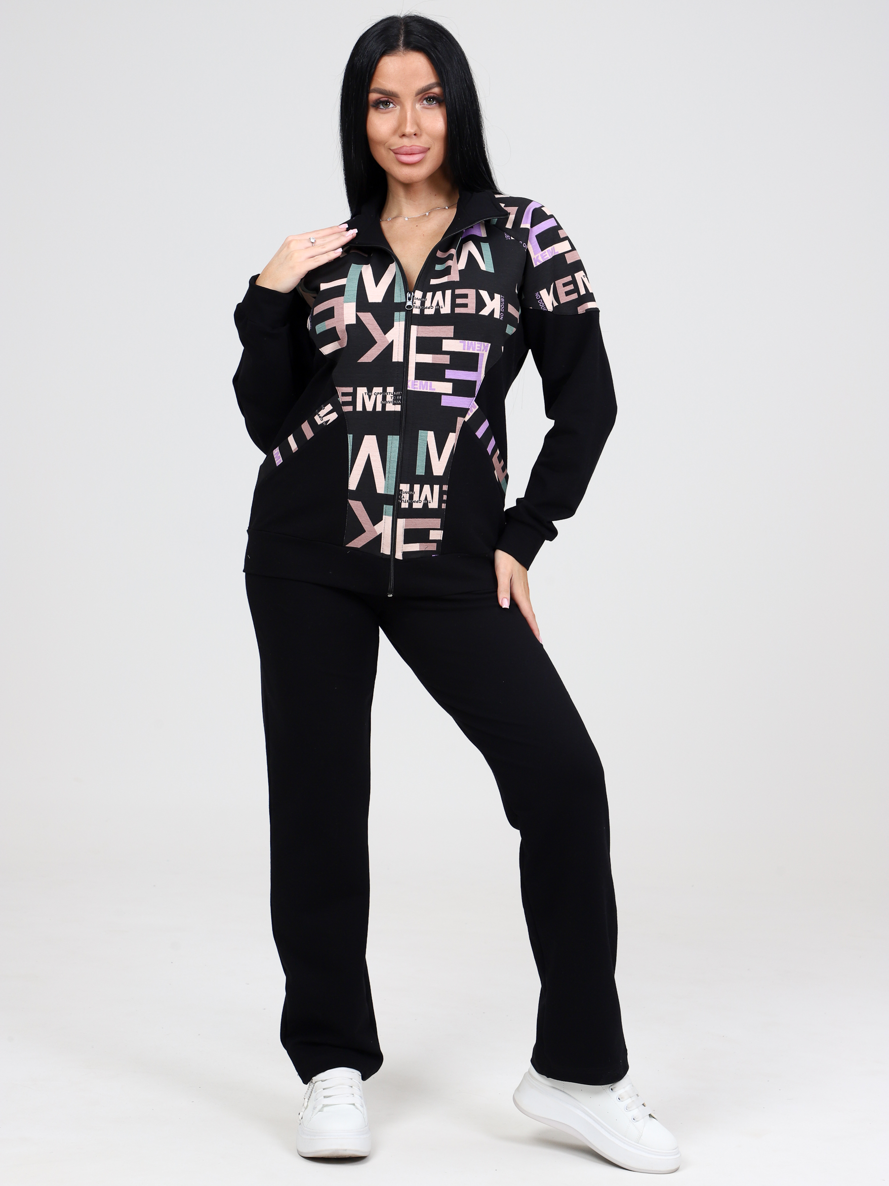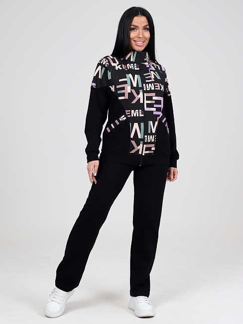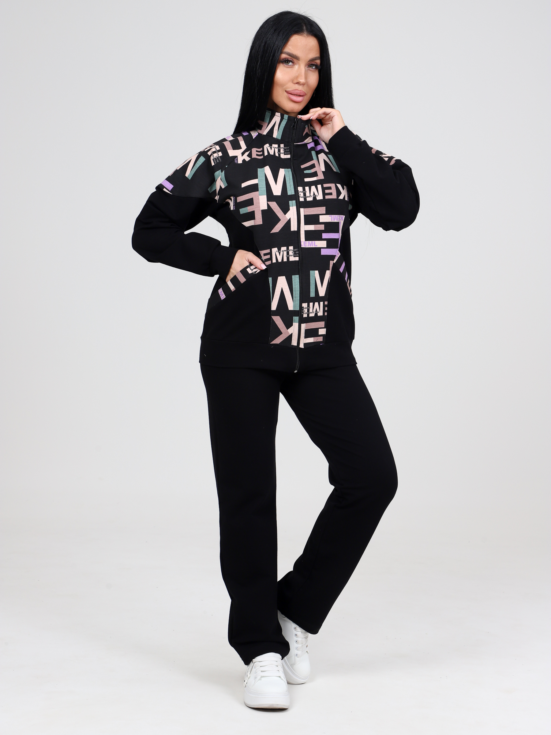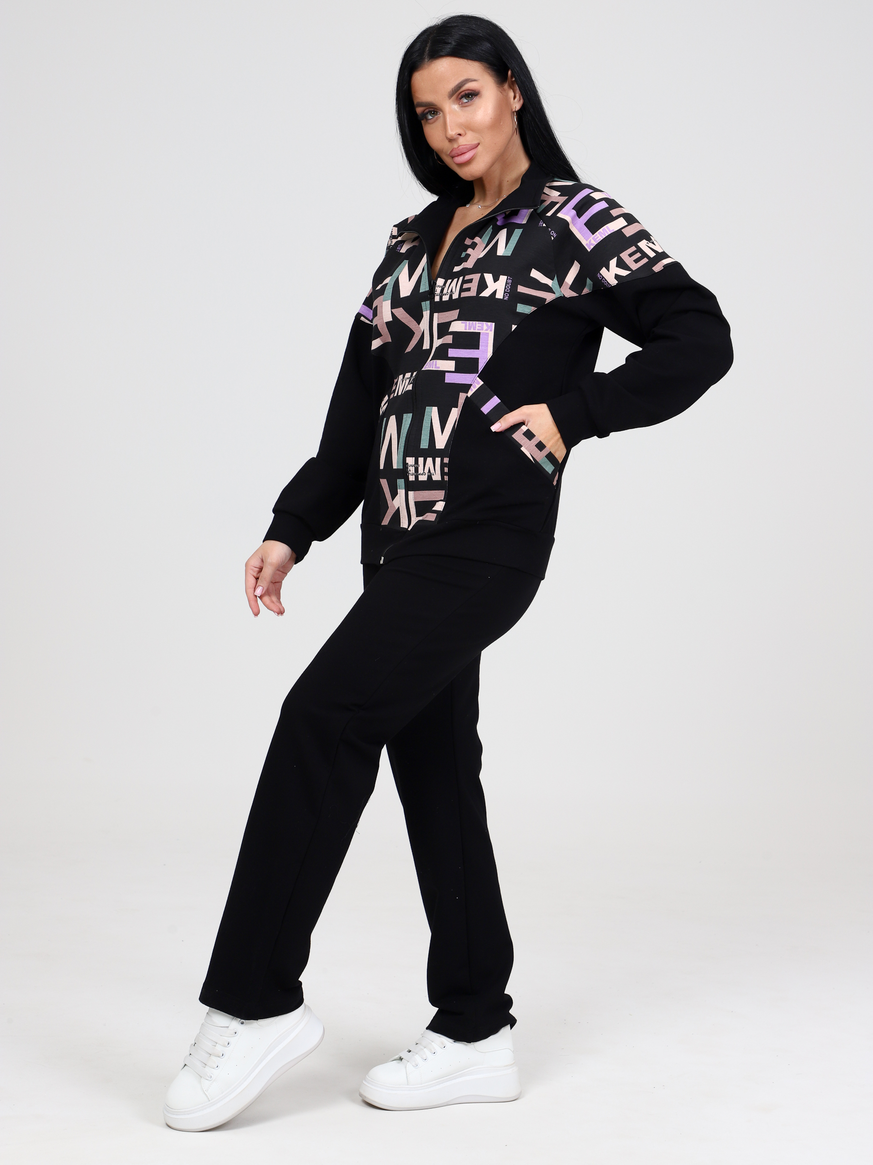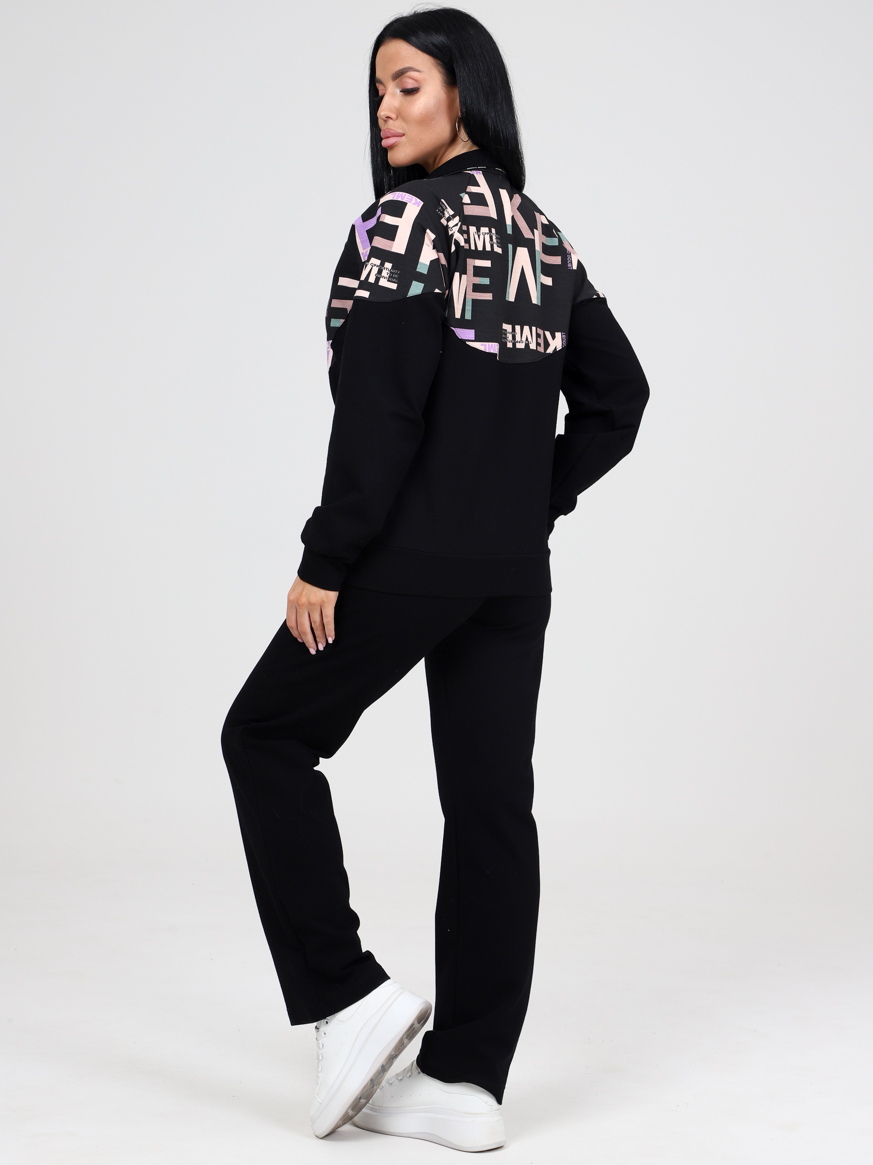 Костюм трикотажный из футера с лайкрой. Рукав - реглан, манжета и окантовка кармана из отделочной ткани, воротник-стойка. Брюки классические. Комфортный женский костюм разработан для длительных прогулок на свежем воздухе, для путешествий, для загородных поездок, для мамочек на прогулки с коляской. Хорошая посадка брюк имеет предельно лаконичный крой, не сковывает движение. Костюм не требовательный в уходе. Прекрасно впишется в базовый гардероб женщины.