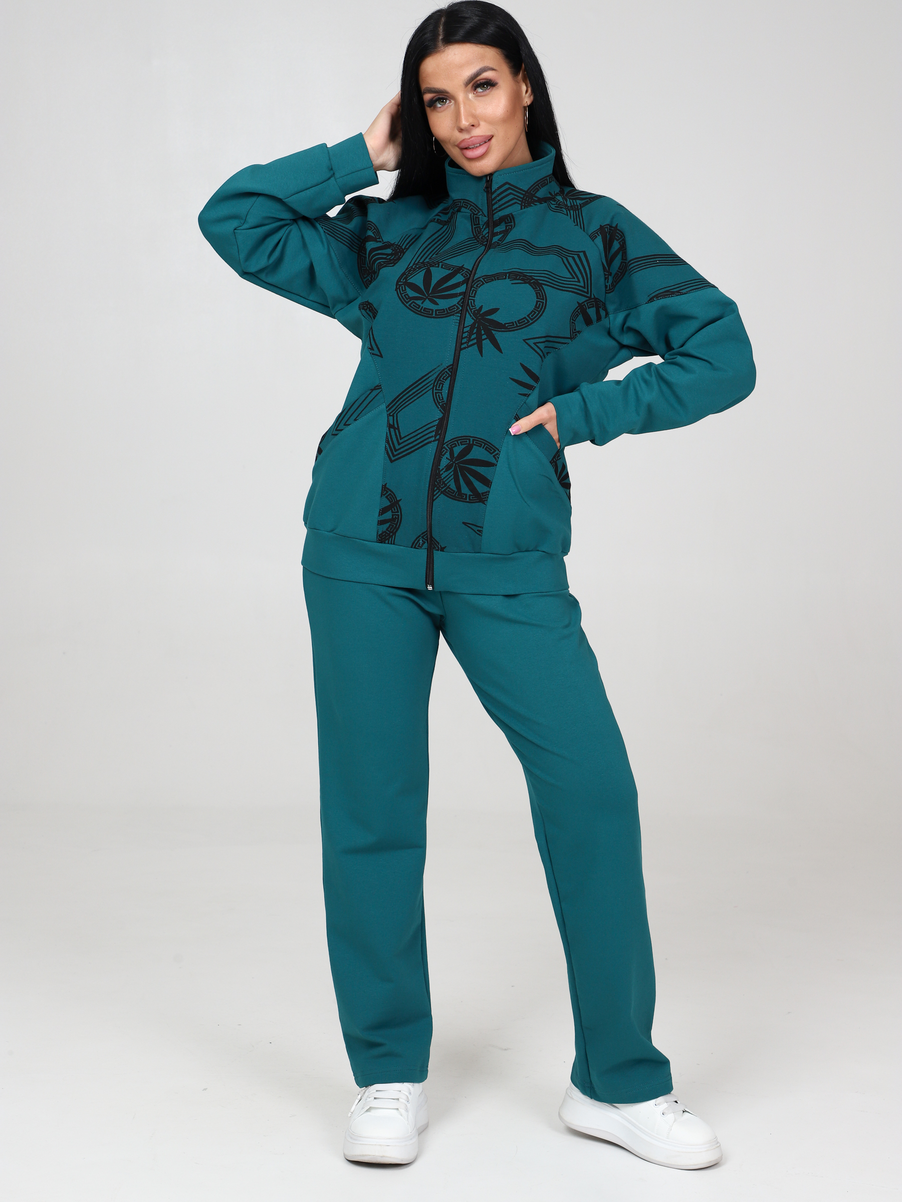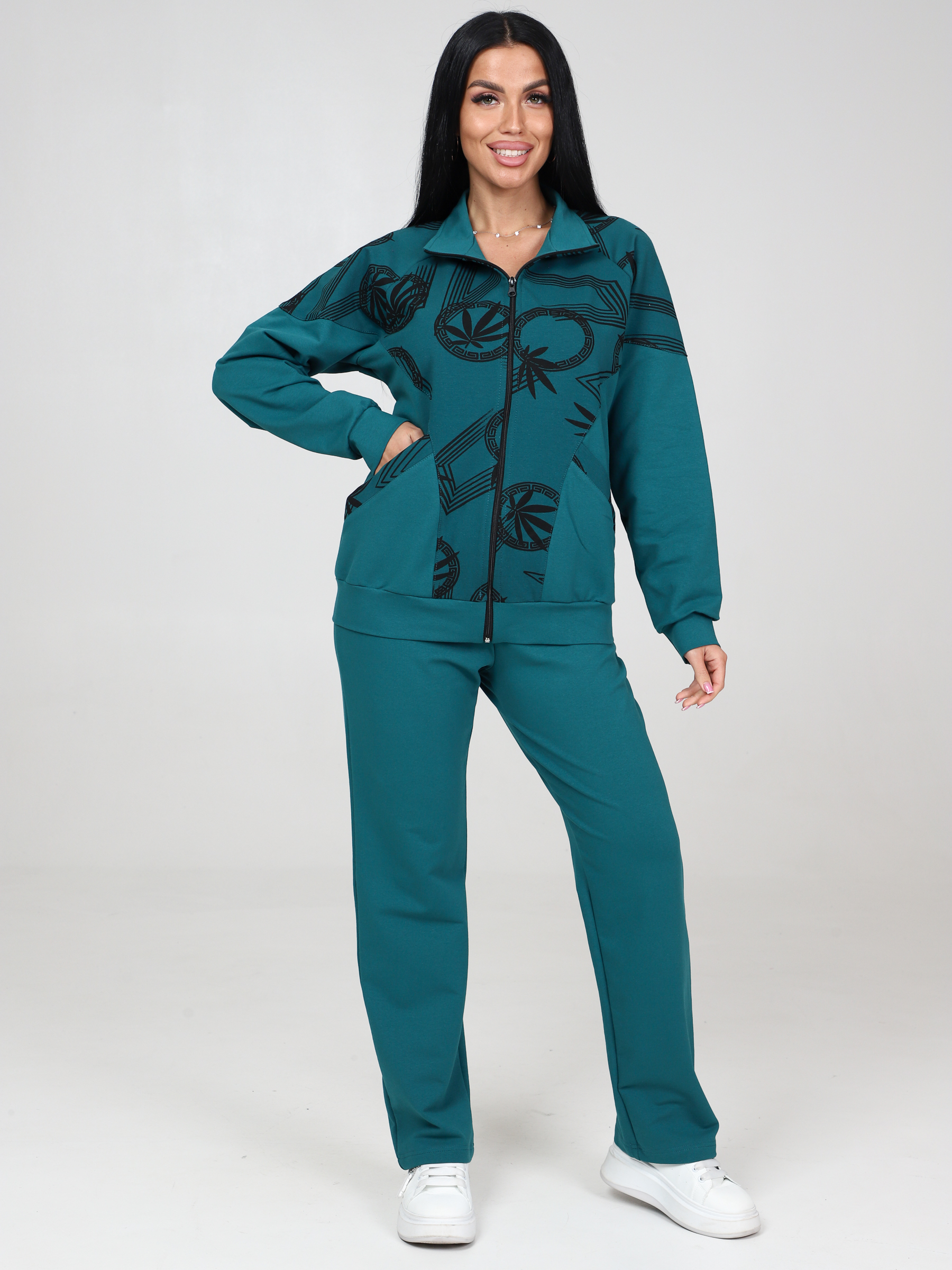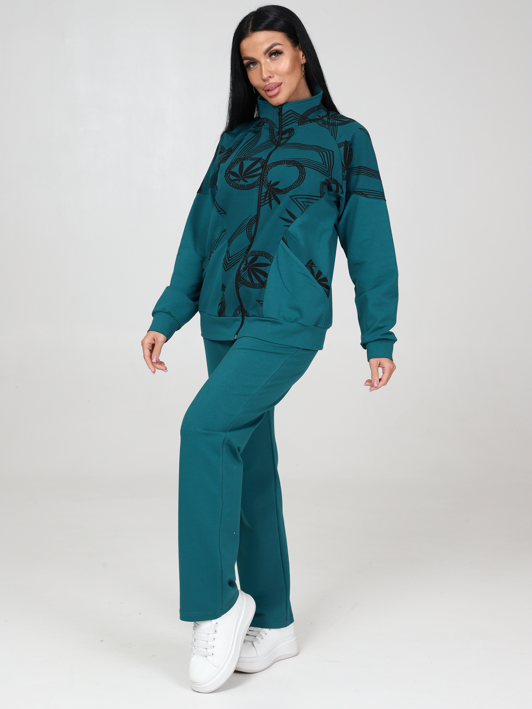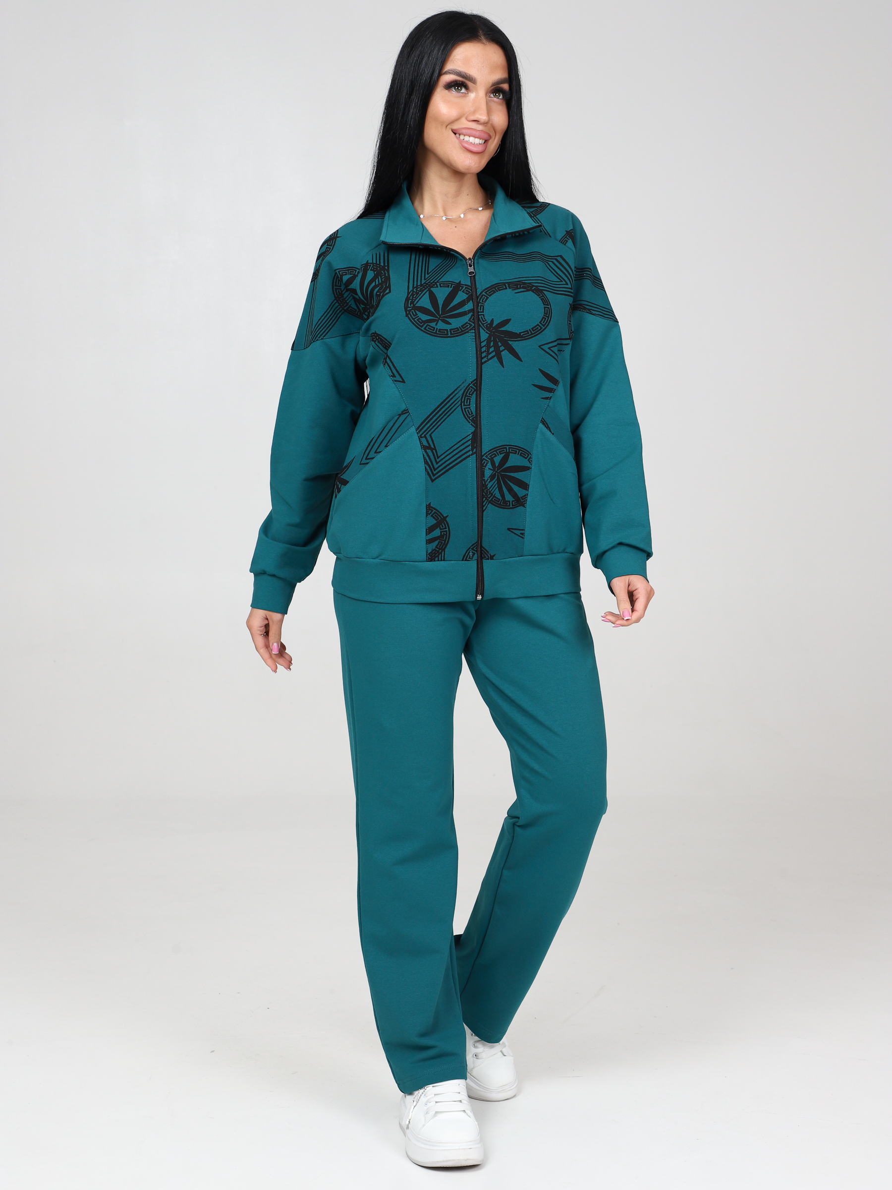Женский костюм футер КФ-215 / Изумруд-меандр