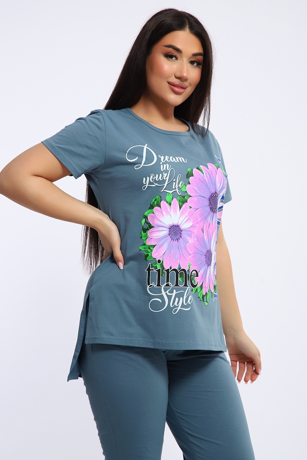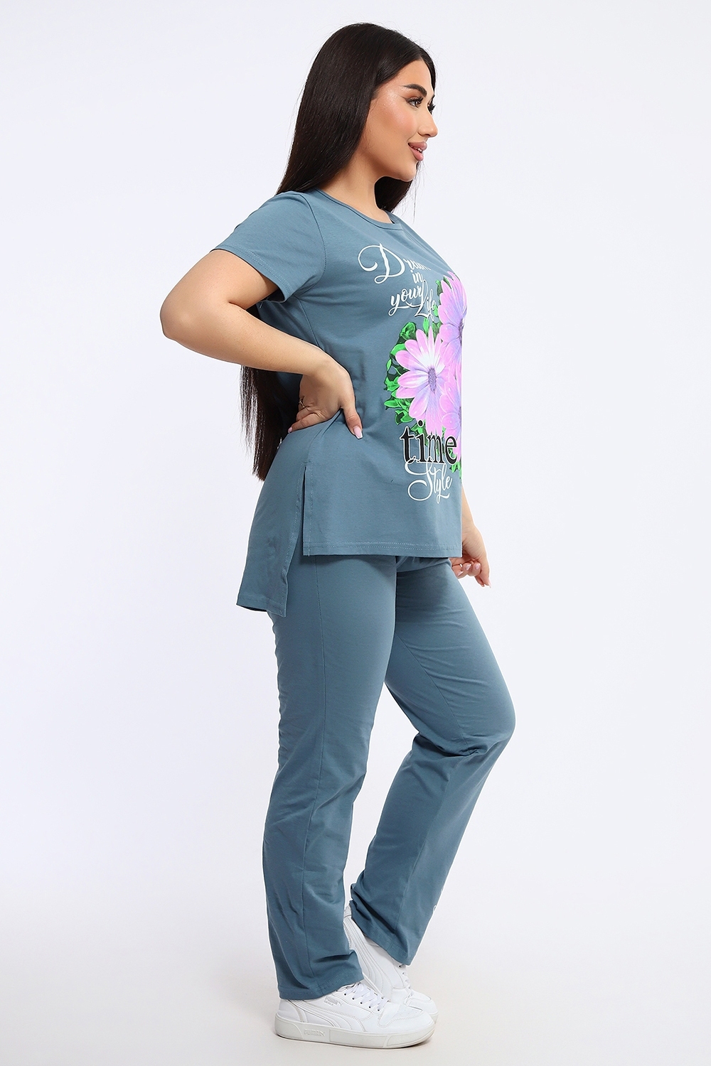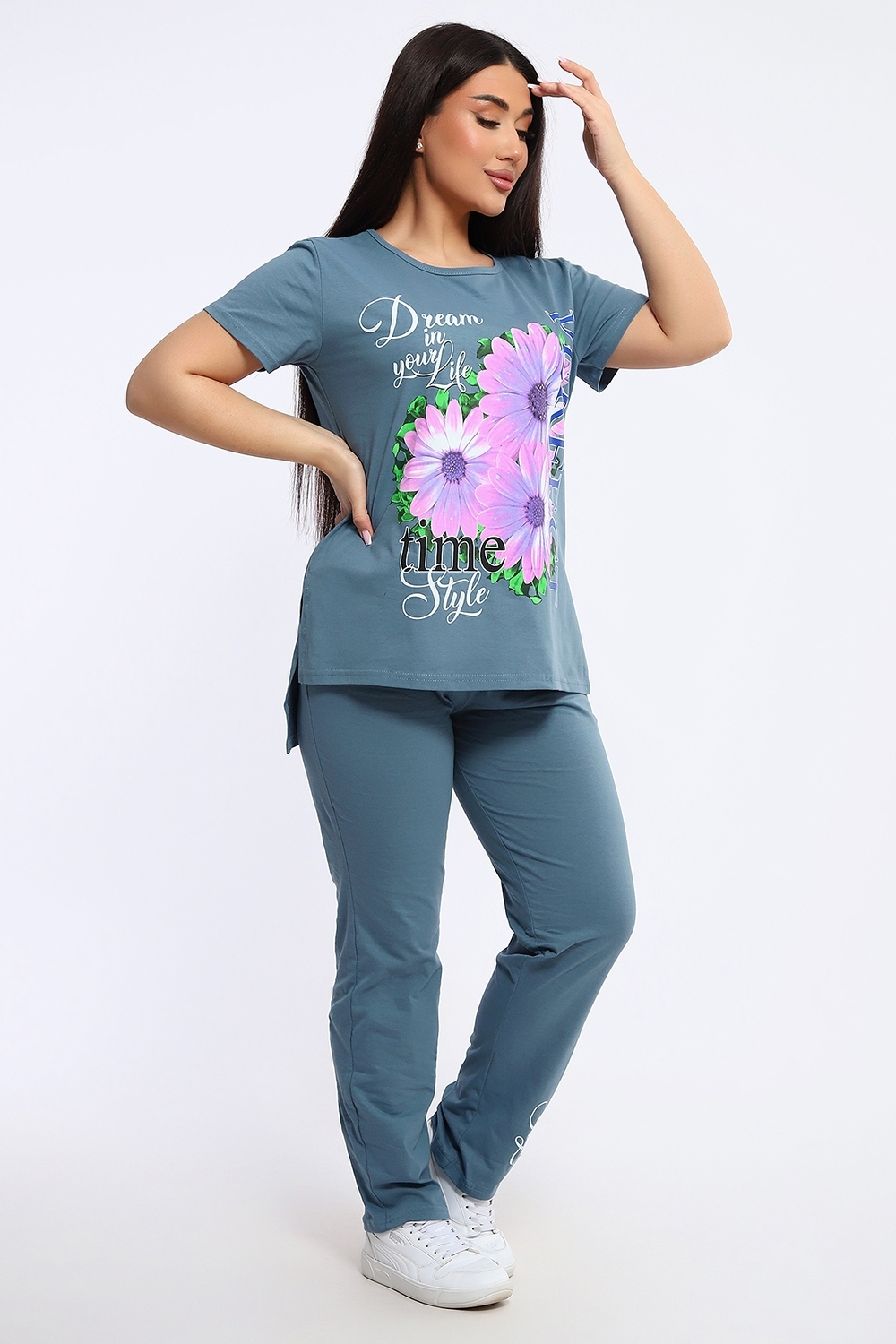 Женский костюм Герберы 646 / Серо-голубой
