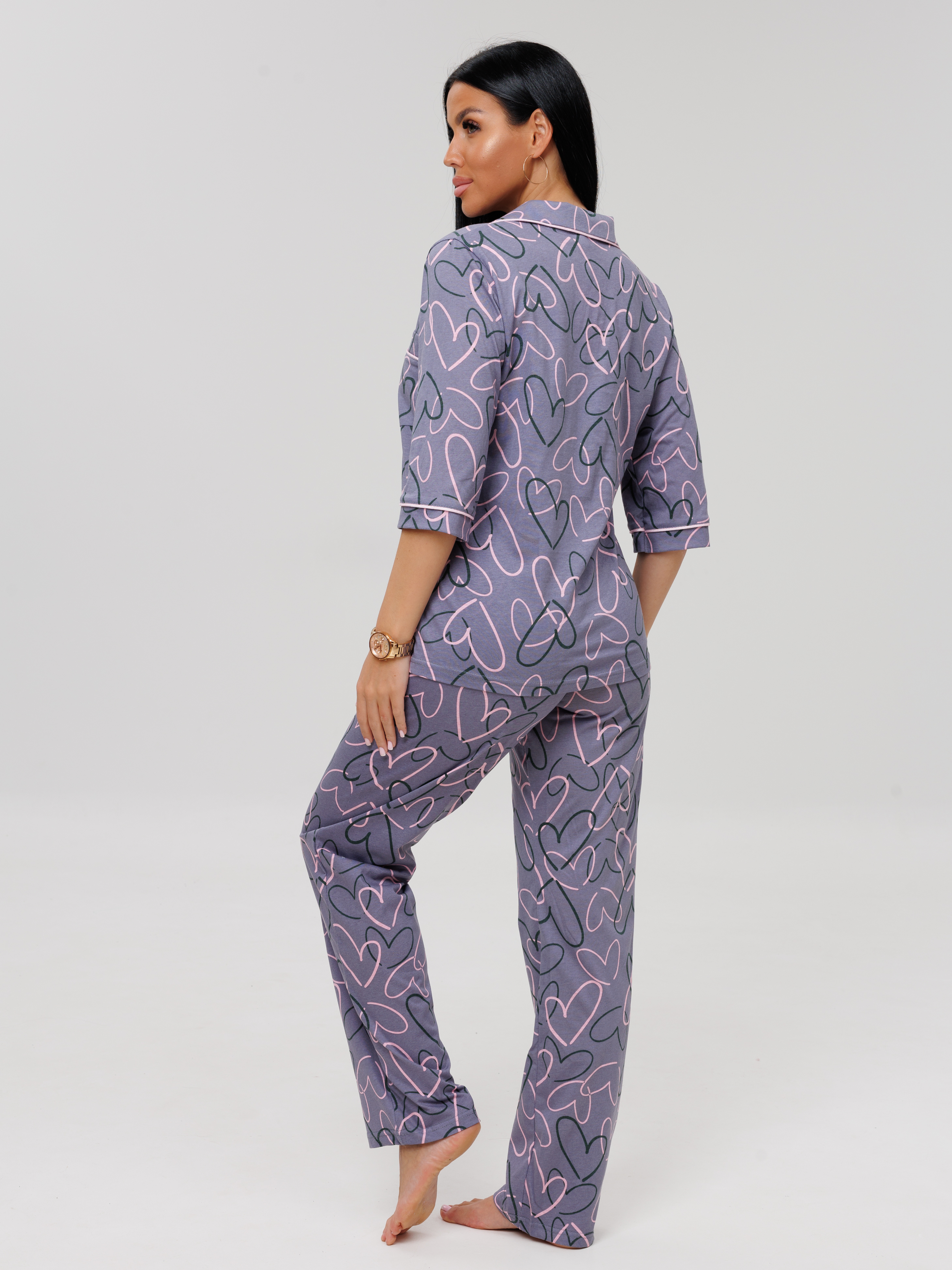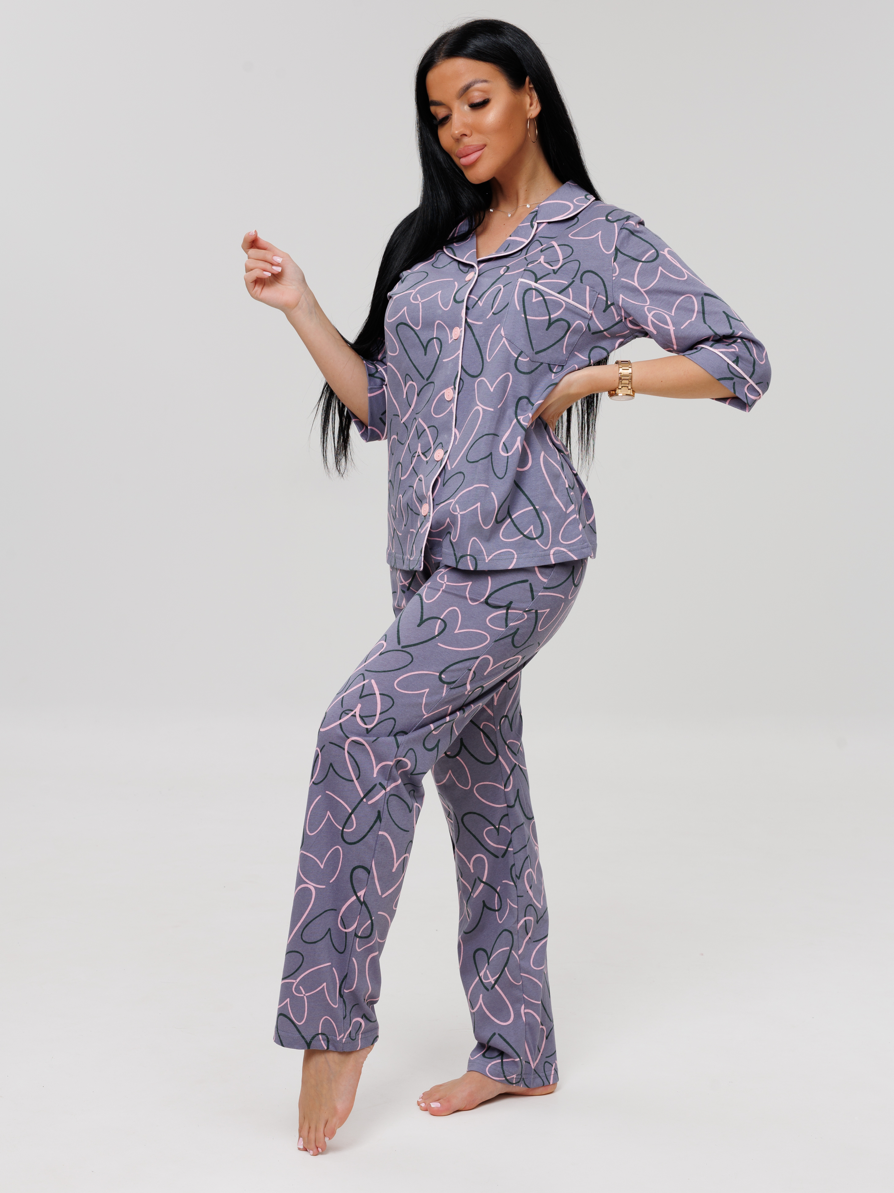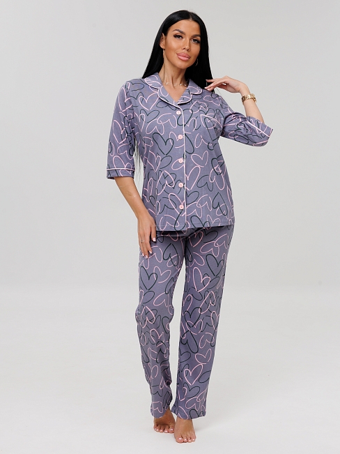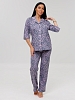 Женский костюм К-132(К) из кулирки, 100% хлопок. Женская пижама состоит из рубашки на пуговицах, с рукавами 3/4 и пижамных брюк.