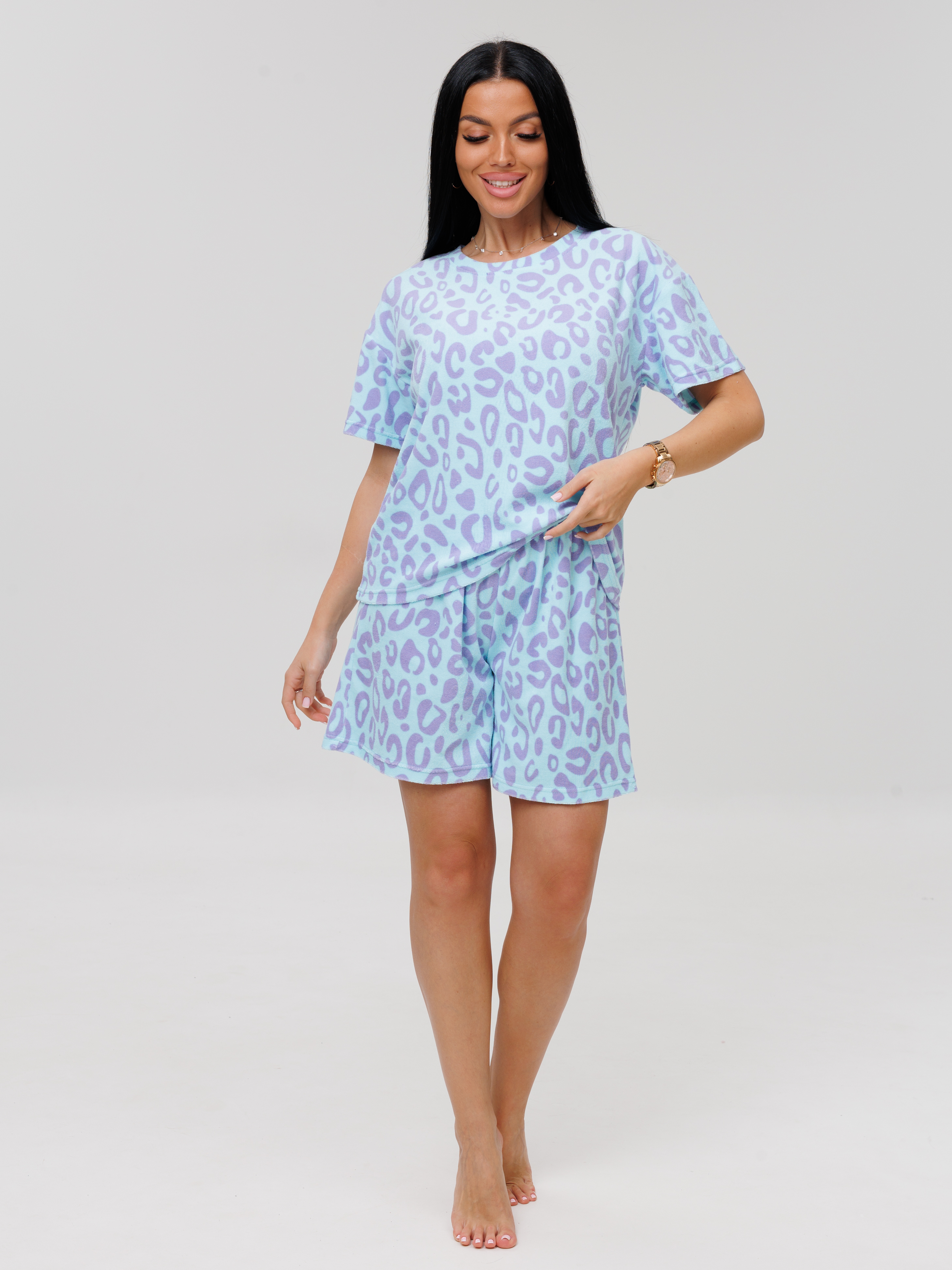 Женский костюм К-203(М) состоит из свободной футболки и шорт. Женский костюм отшивается из мягкой ткани, хлопковой махры.
