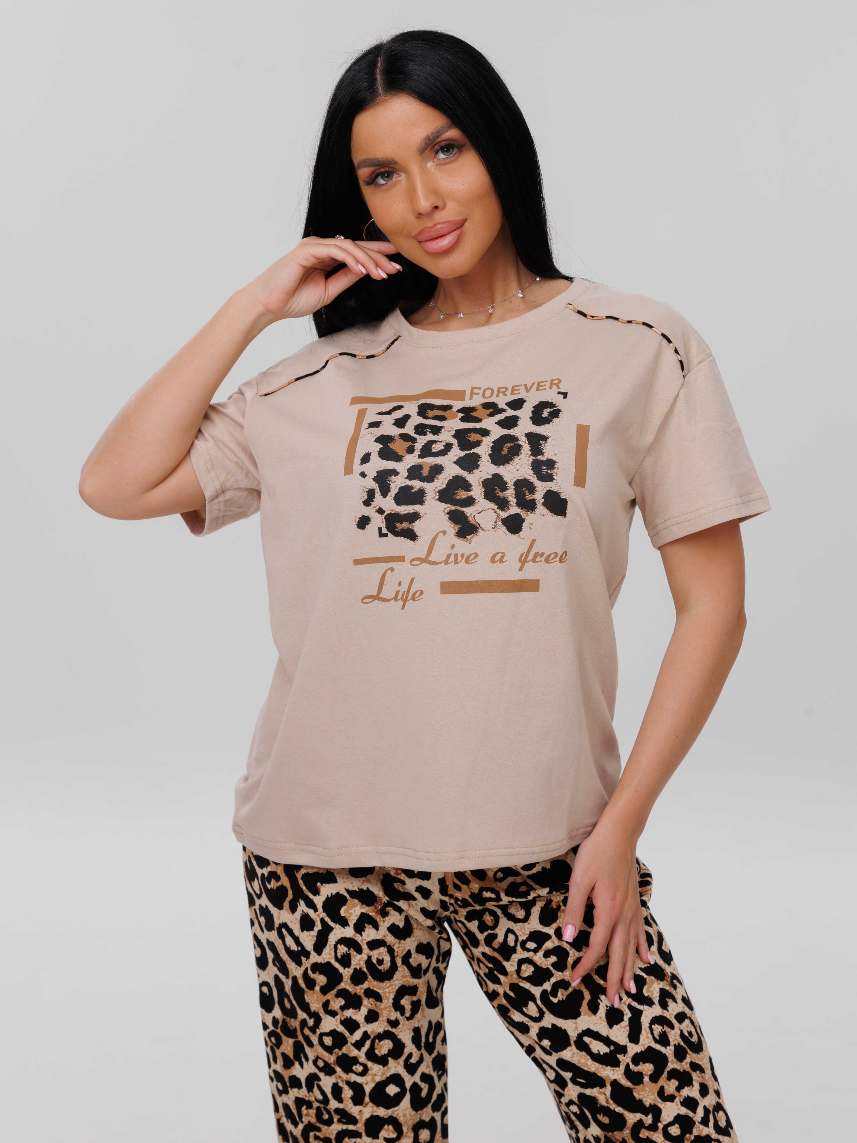 Женский костюм К-220(К) / Темно-бежевый (леопард)