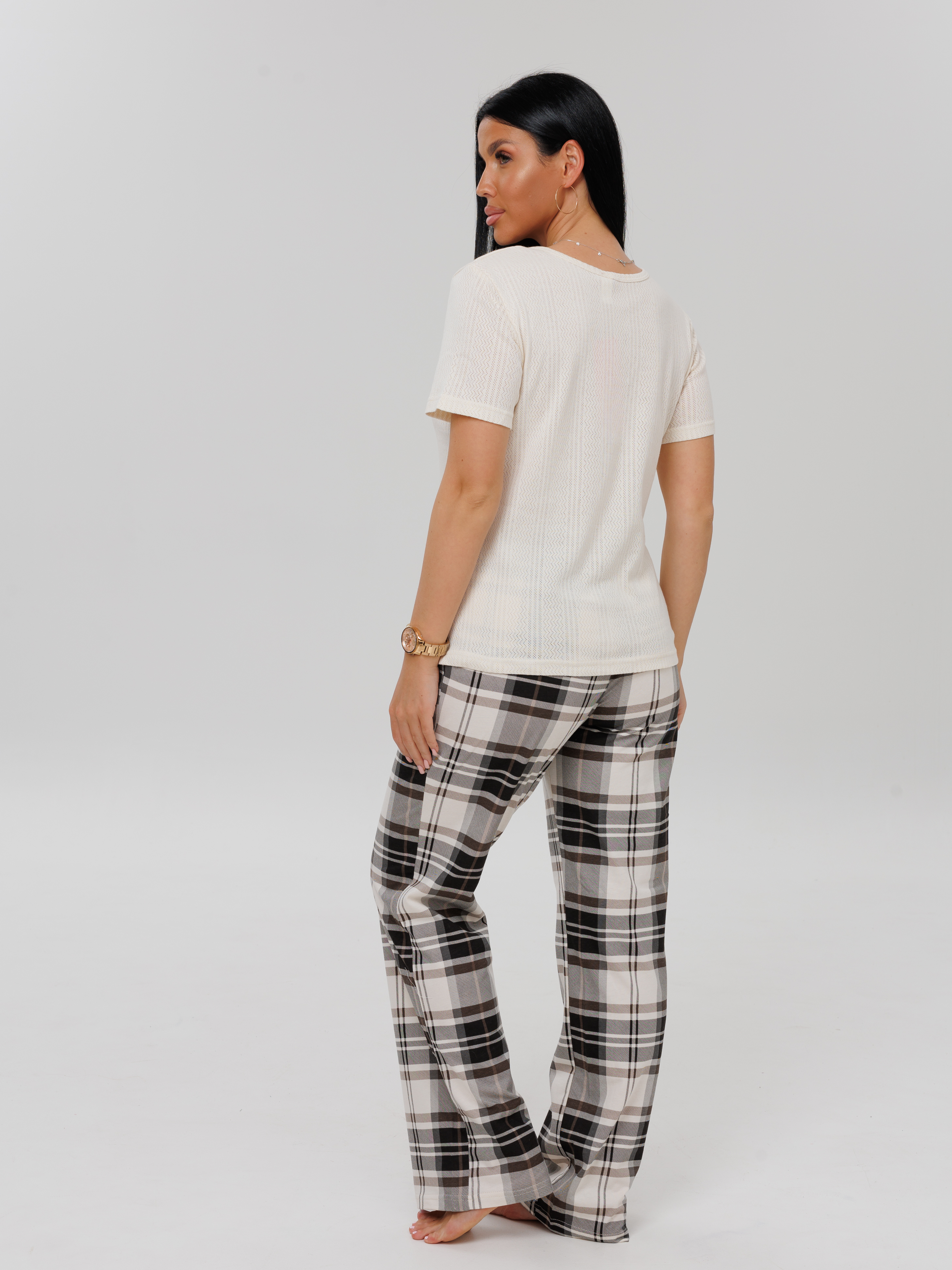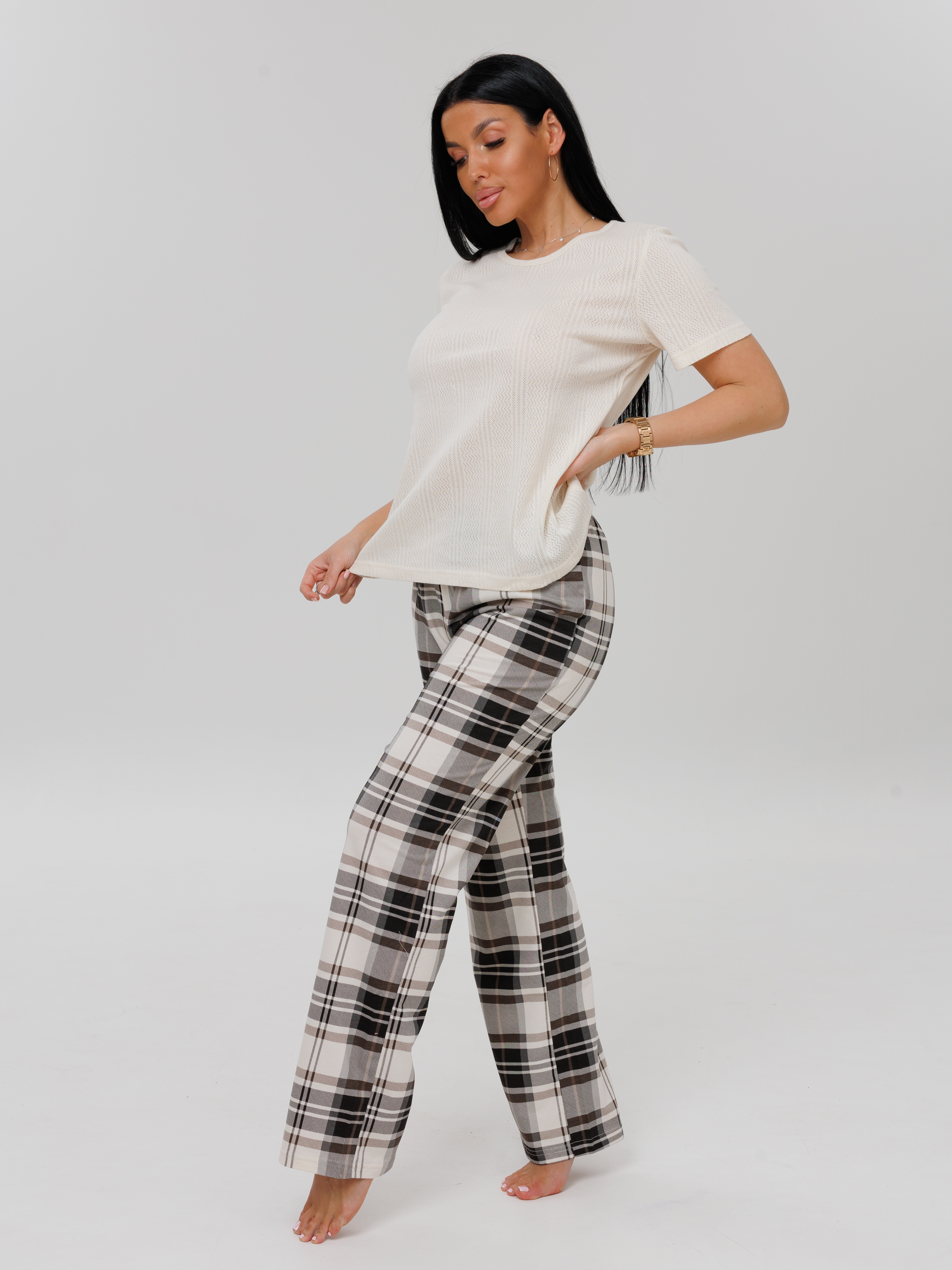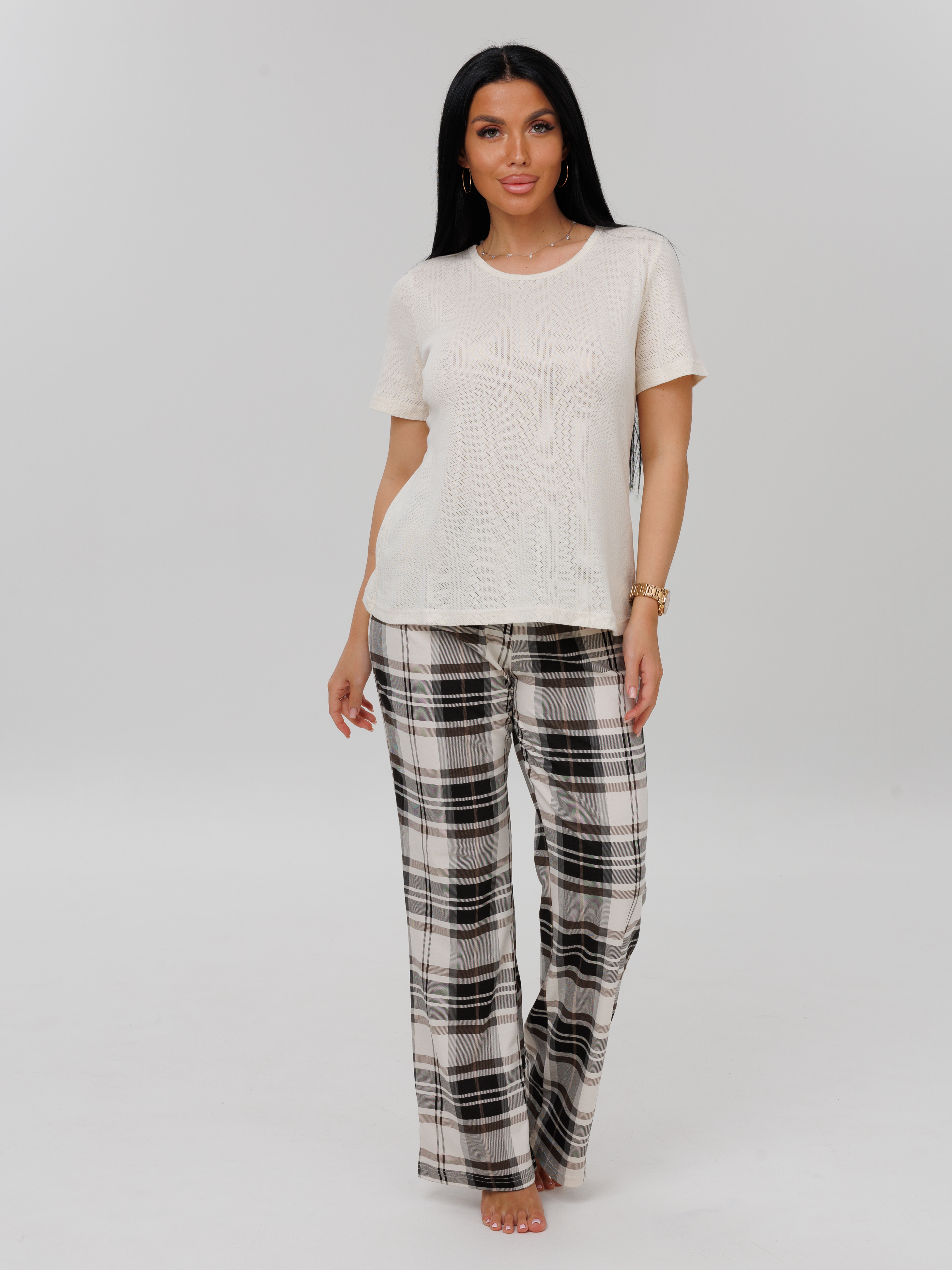 Женский костюм К-223(К+Риб) / Молочный (клетка)