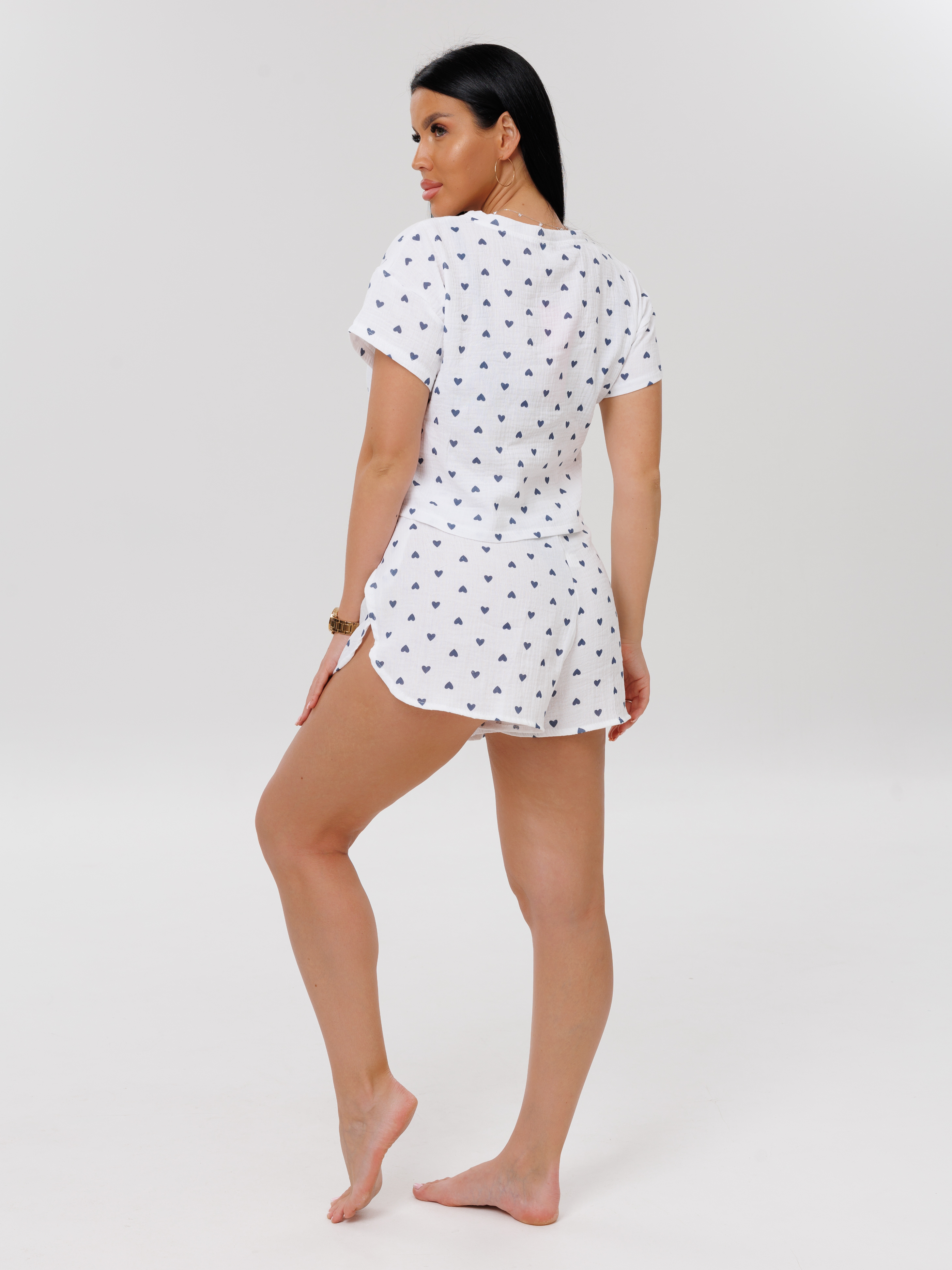 Женский костюм с шортами из муслина — это комплект одежды, состоящий из рубашки и шорт, изготовленных из лёгкой, дышащей и мягкой ткани. Муслин — это 100% хлопок с особым плетением нитей, который обеспечивает комфорт в жаркую погоду. Такие костюмы подходят для повседневной носки, прогулок, пляжа, путешествий или домашнего отдыха.