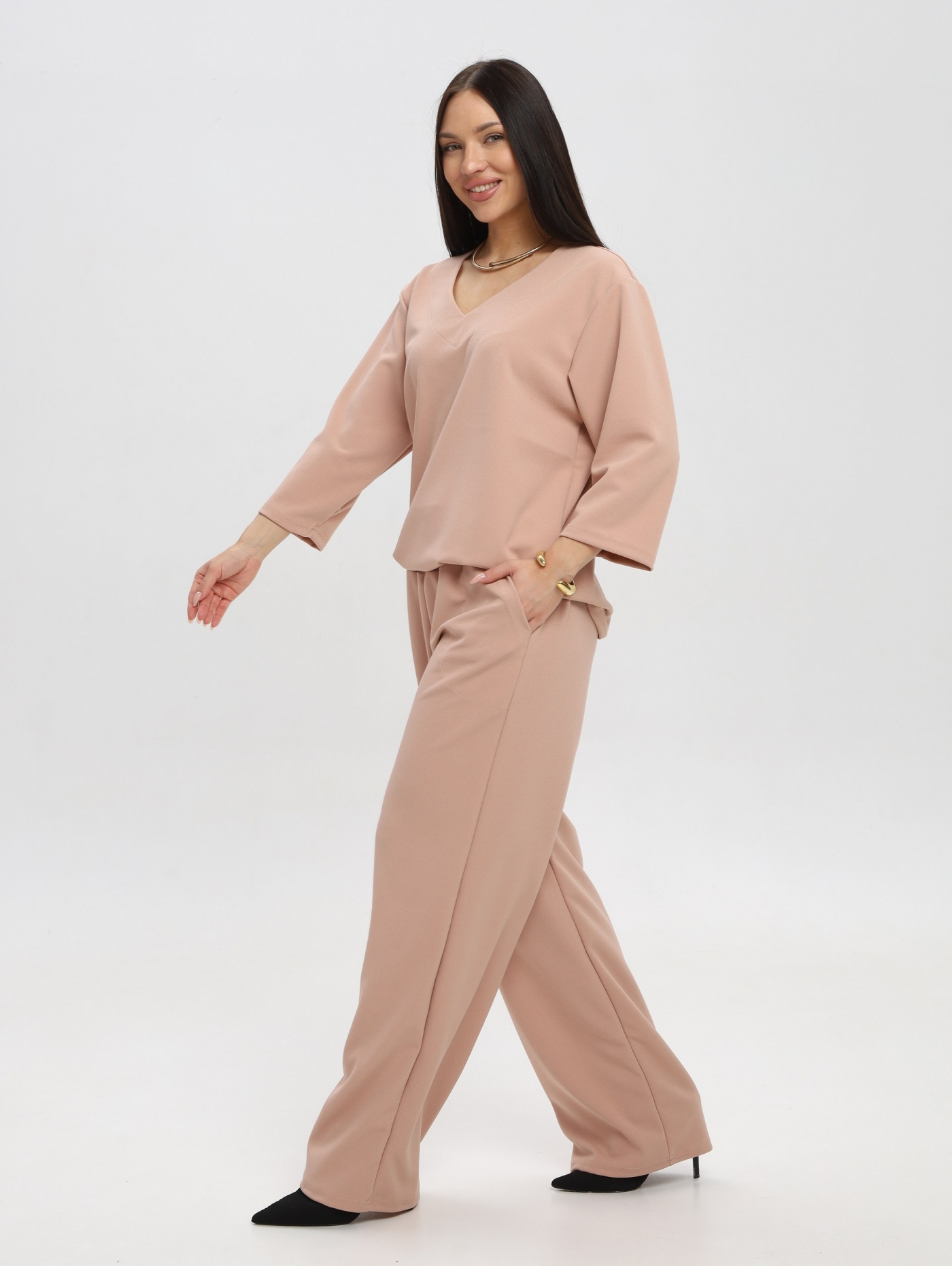 Женский костюм с брюками — это комплект, который сочетает комфорт, функциональность и стиль. Он подходит для тренировок, прогулок, активного отдыха или повседневного использования.