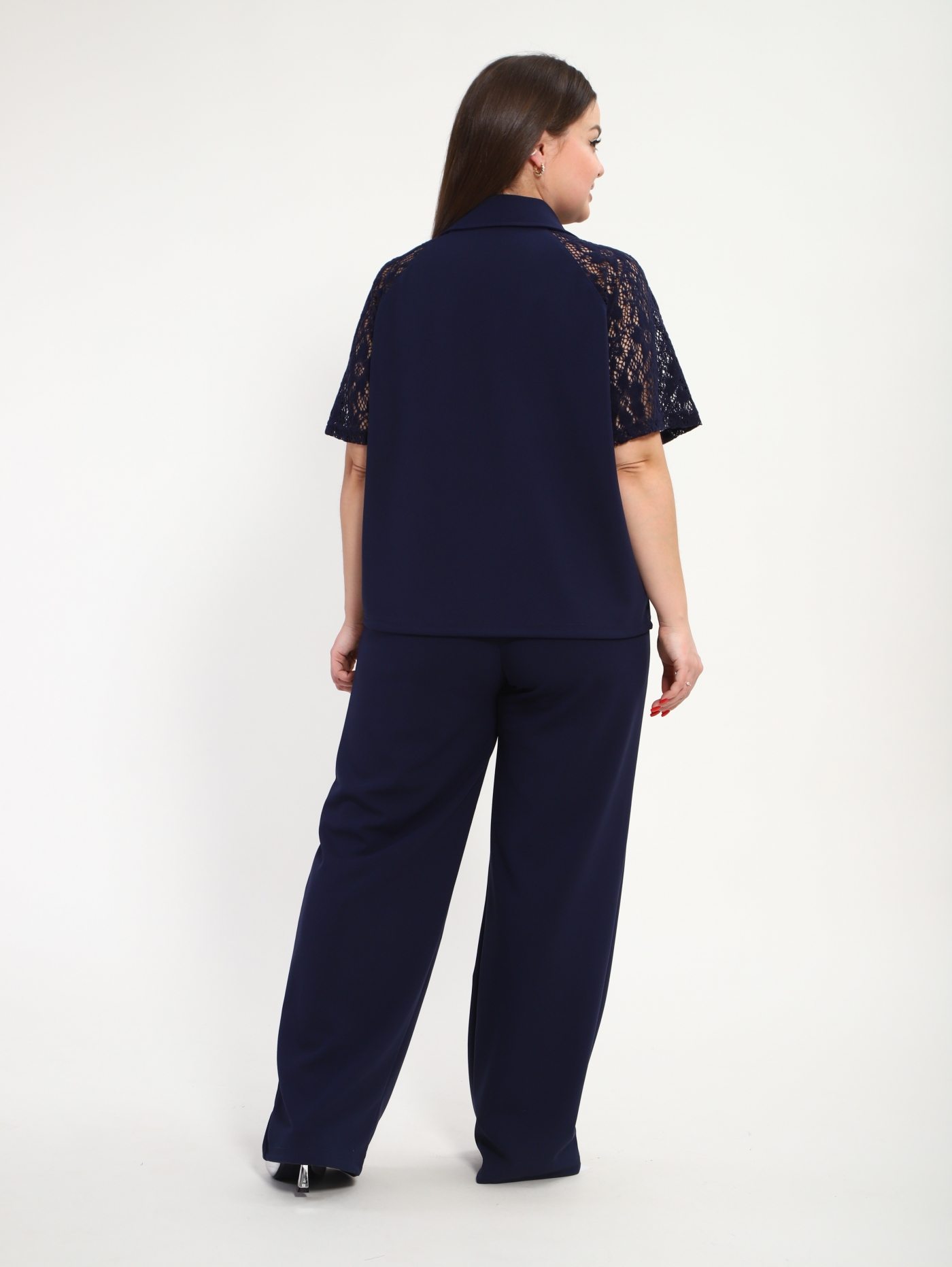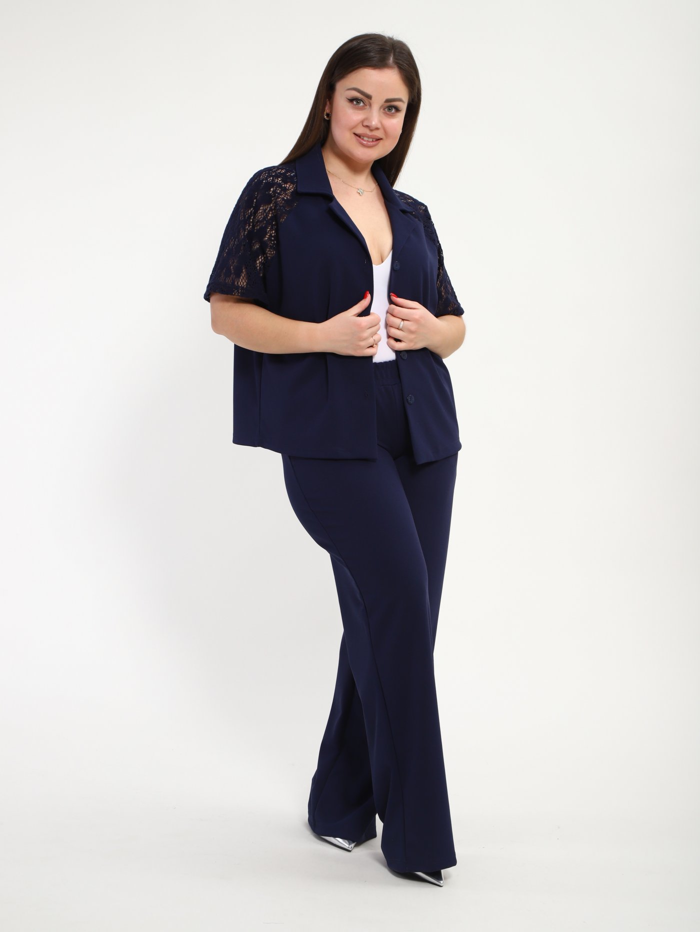 Женский костюм с брюками из крепа с кружевом — это сочетание элегантности и текстуры. Креп обеспечивает прочность и форму, а кружево добавляет романтичности и декоративности. Такие костюмы могут использоваться для вечерних выходов, деловых мероприятий или в качестве акцентного элемента гардероба.