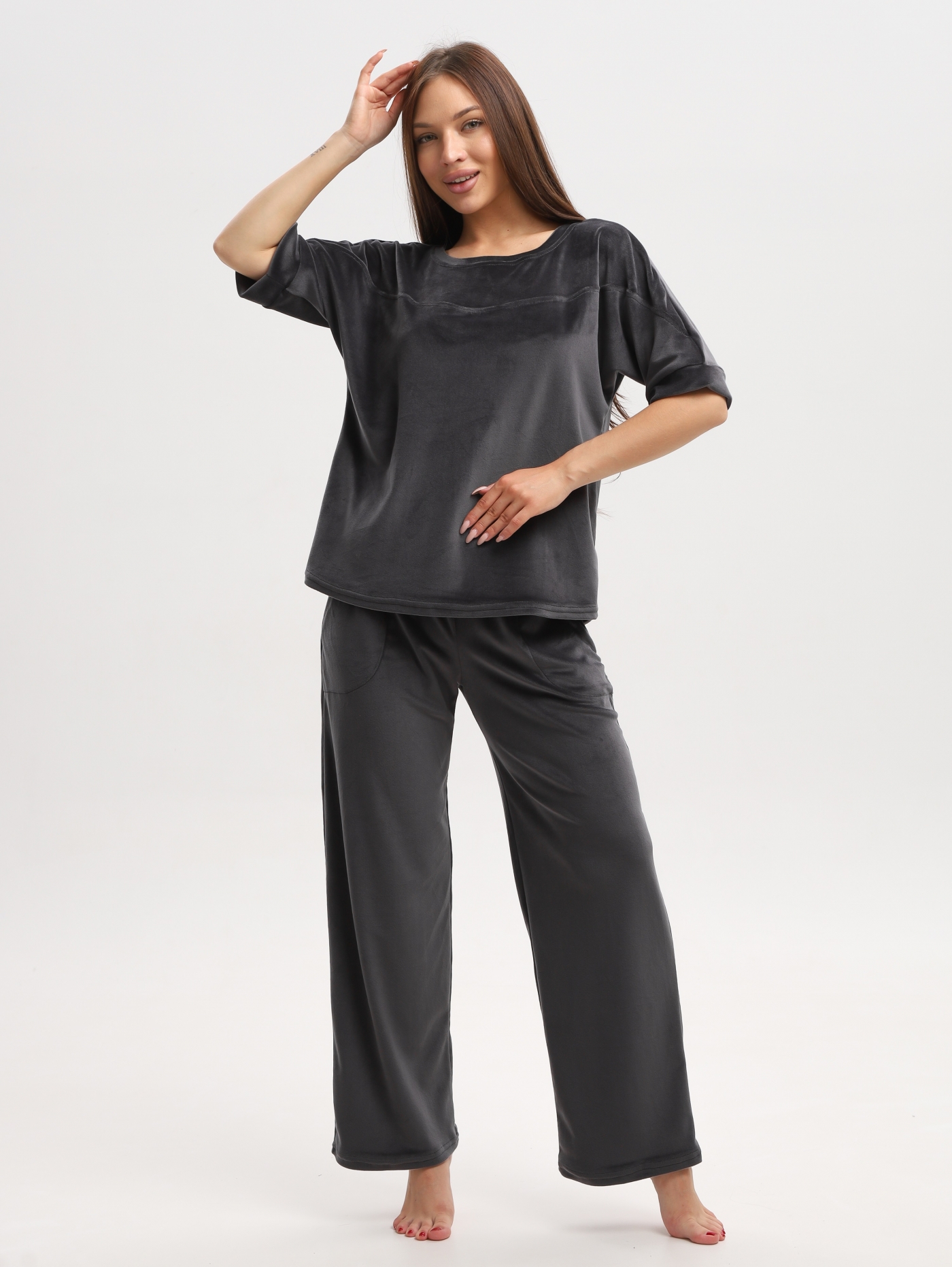 Женский костюм К3130 - это практичная женская модель, выполненная из современного материала — велюра. Костюм отлично подходит для повседневной носки и активного отдыха.