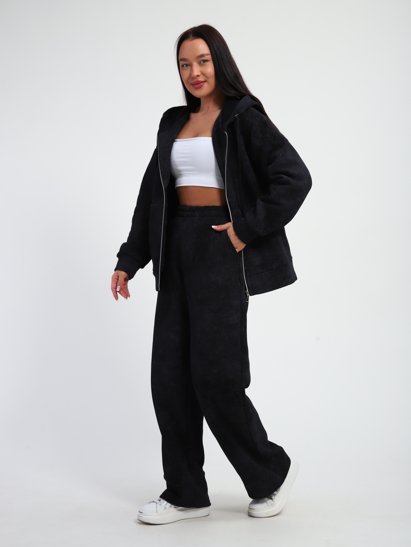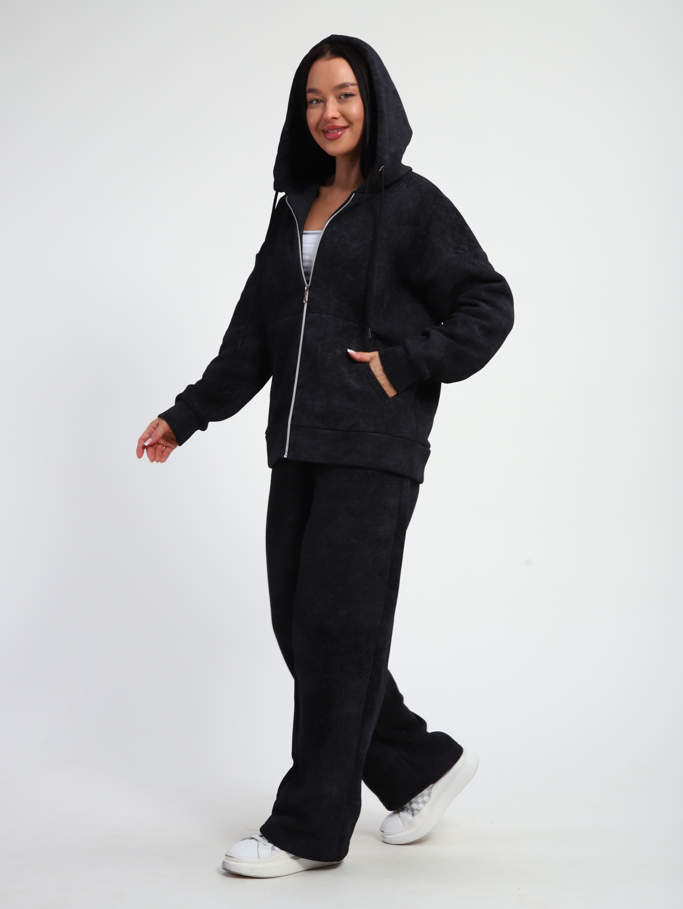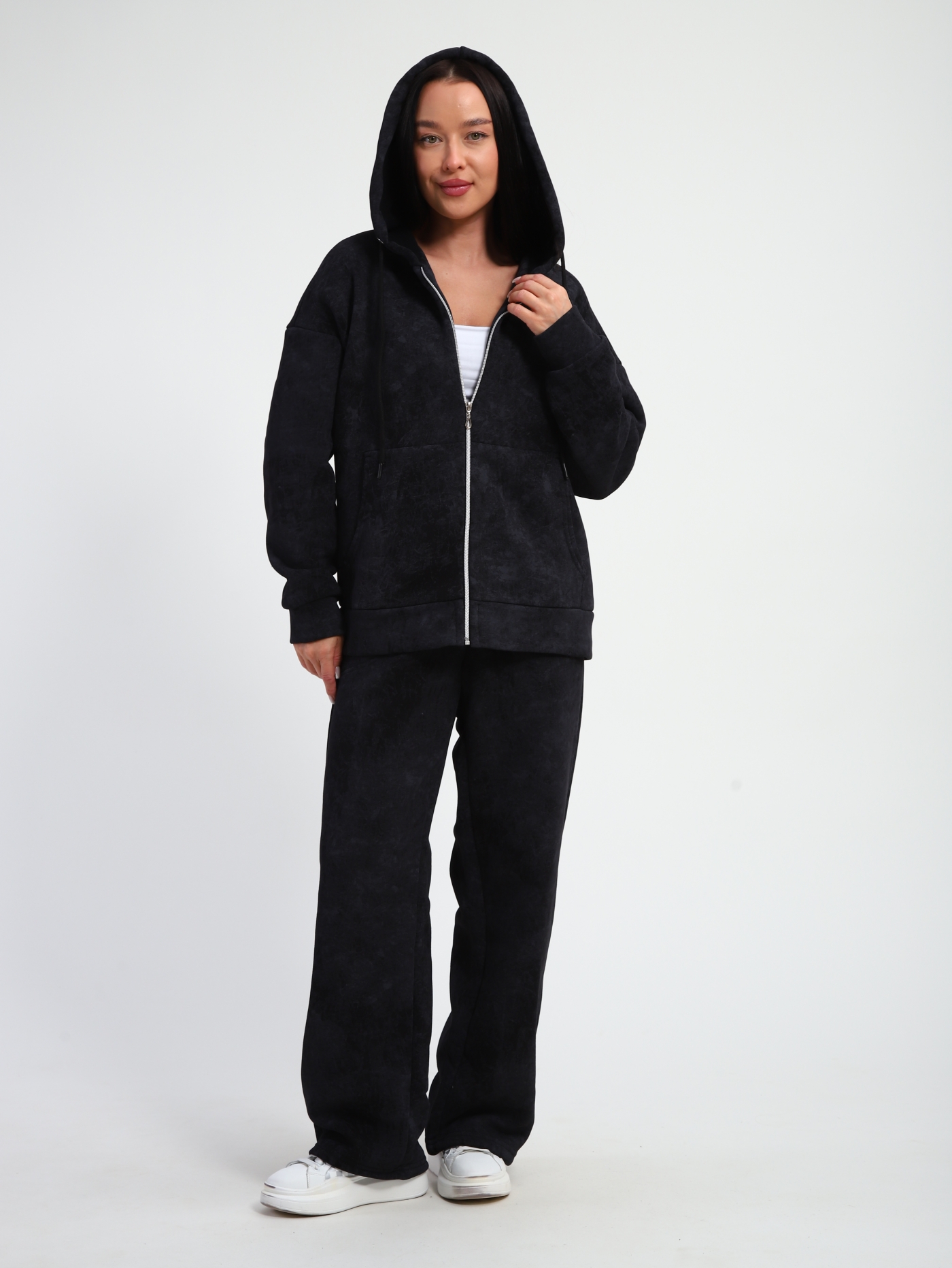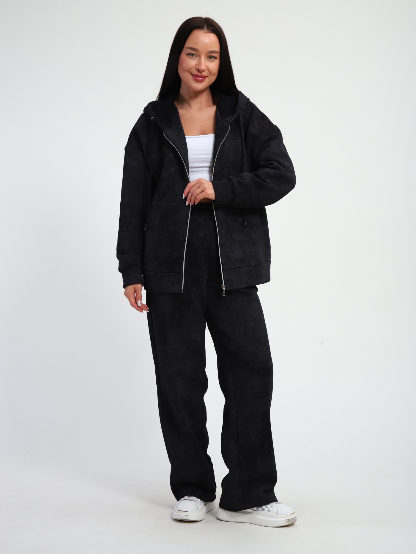 Женские костюмы из футера — это практичная и комфортная одежда, подходящая для спорта, активного отдыха и повседневной носки. Футер — трикотажная ткань с гладкой лицевой стороной и мягким ворсом с изнаночной, которая отличается эластичностью, износостойкостью и теплотой.