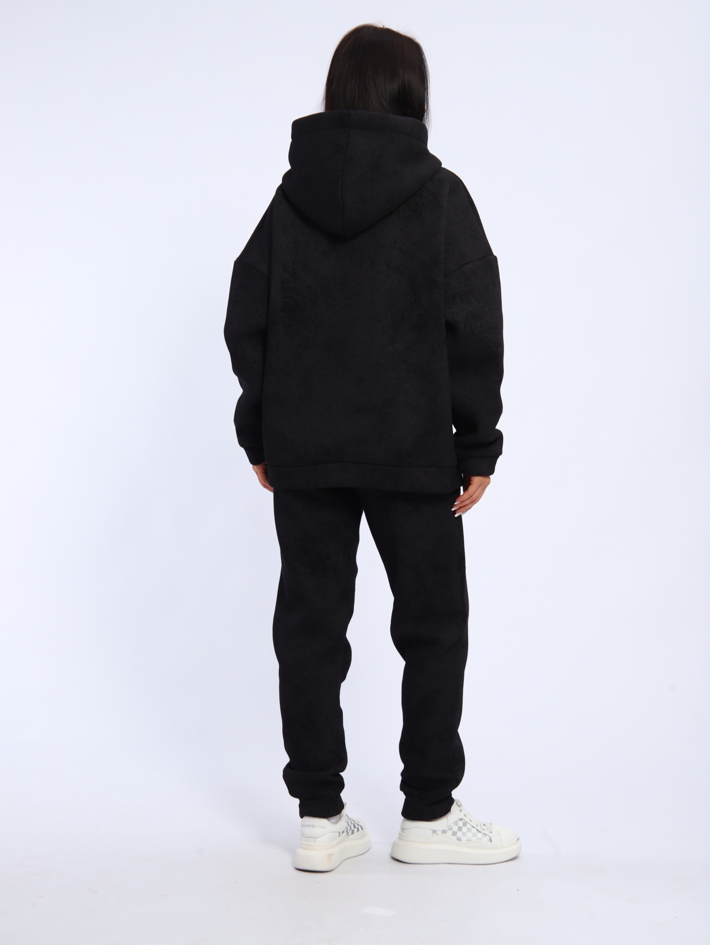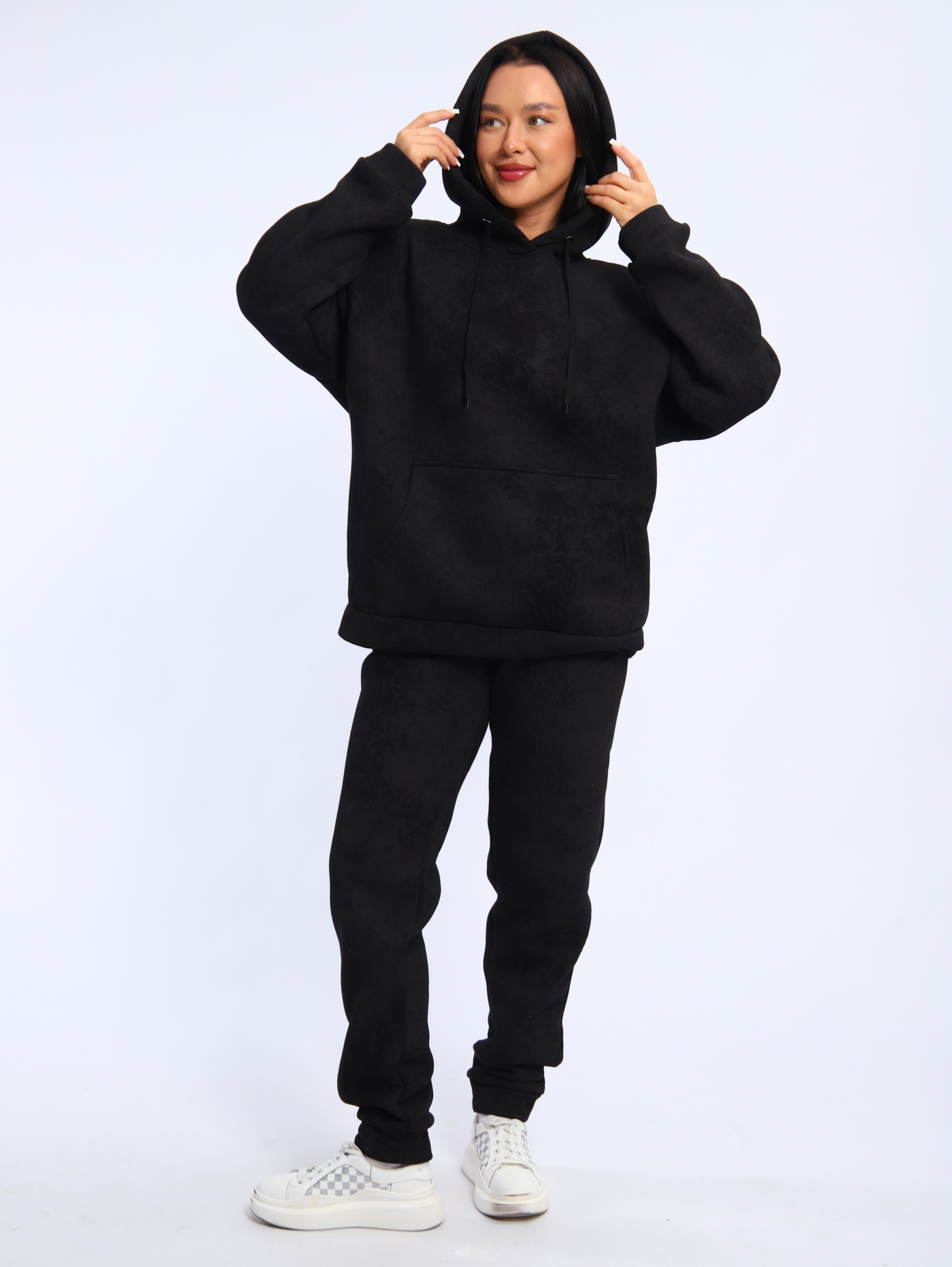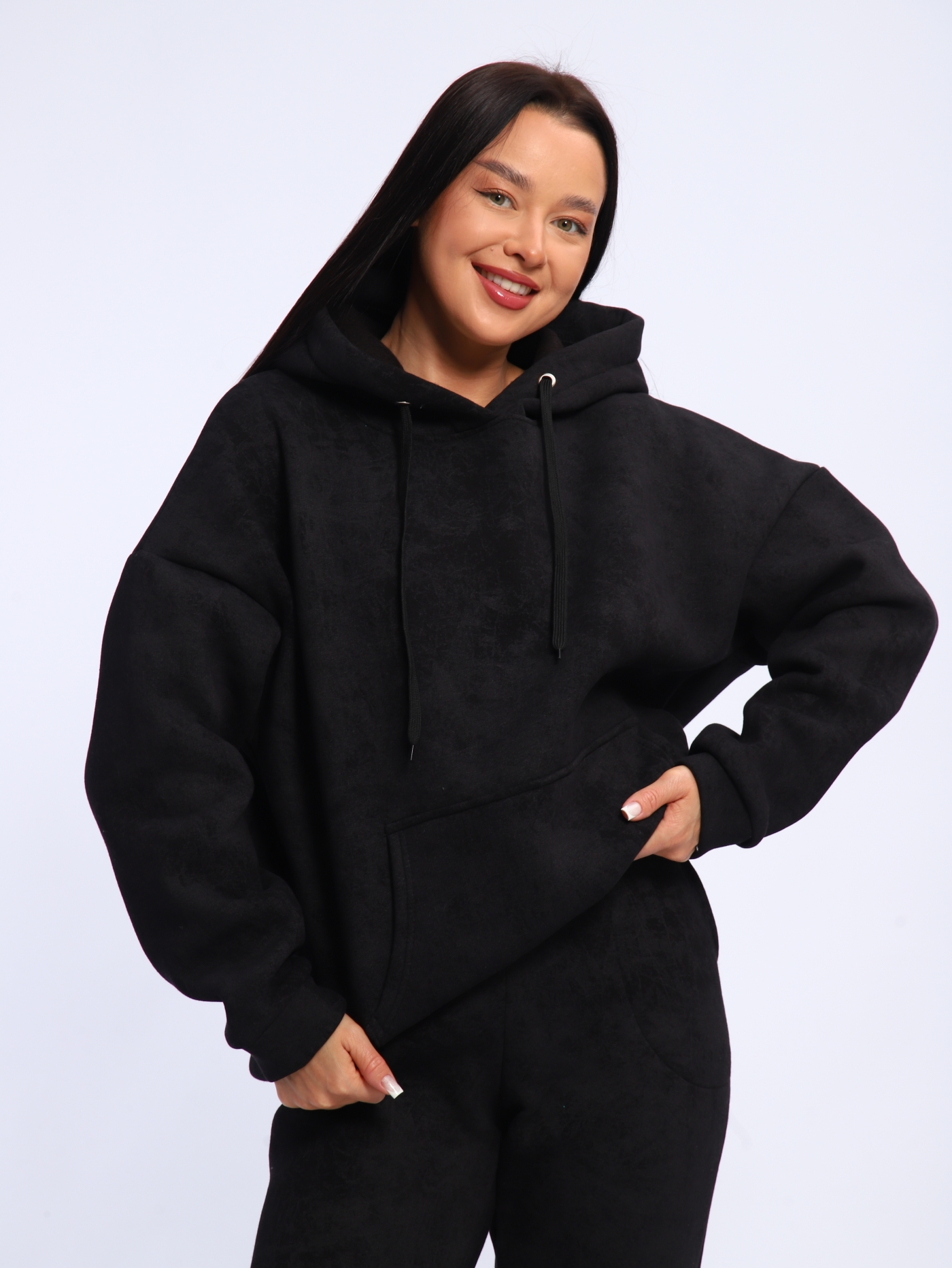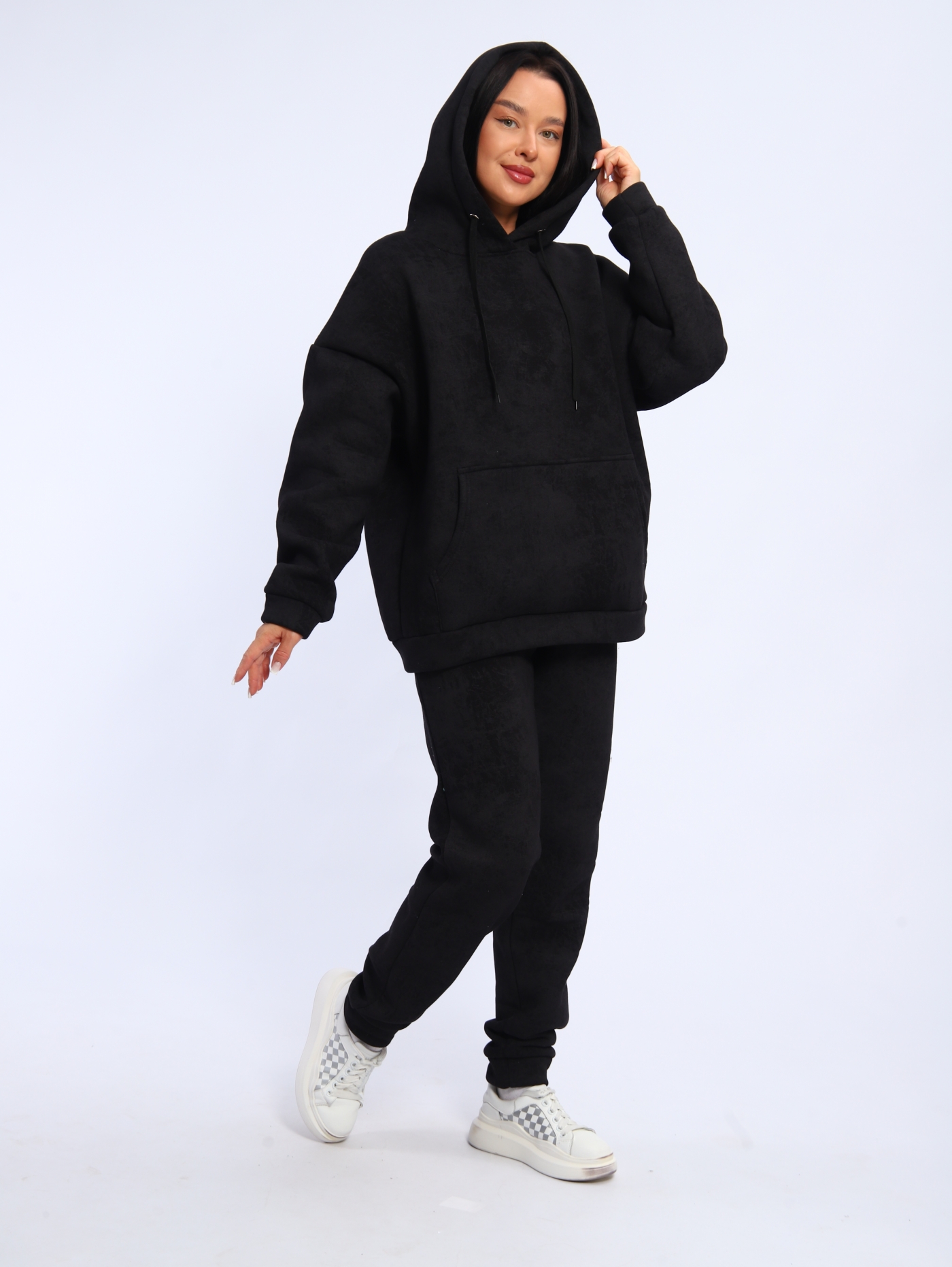 Женский костюм К3176.1 состоит из худи с капюшоном и спортивных брюк. Футер трёхнитка с начёсом, из которого отшит костюм, обеспечивает мягкость, теплоту и долговечность. Ткань «дышит», не создаёт парникового эффекта и сохраняет форму после стирок.