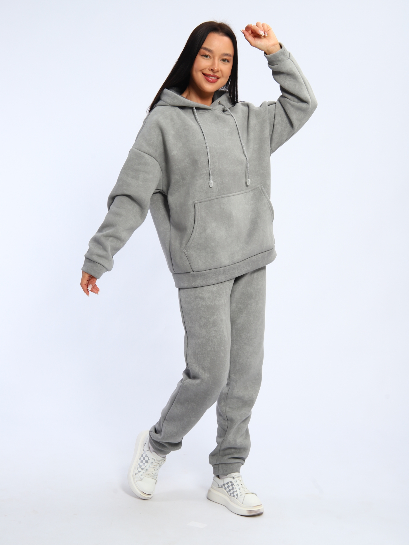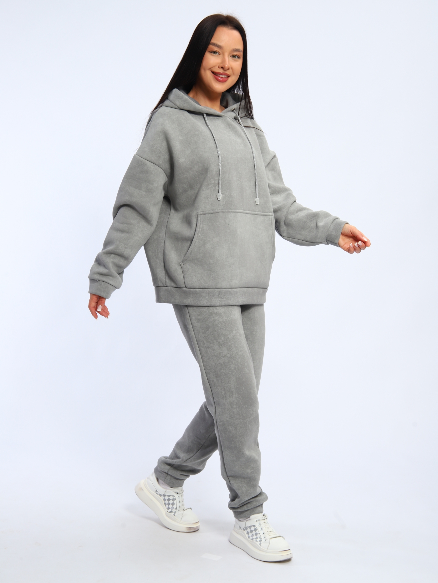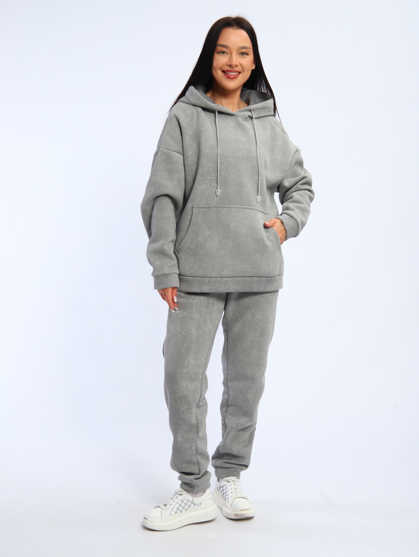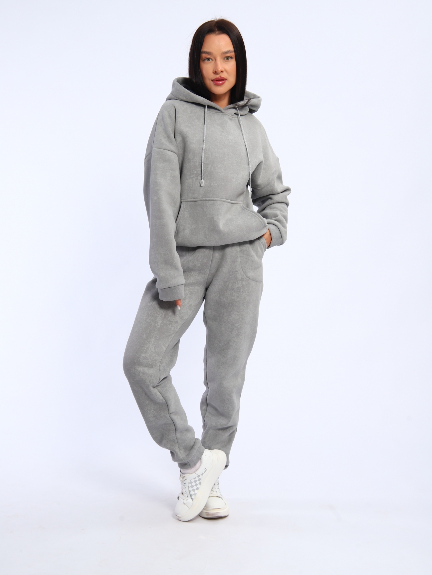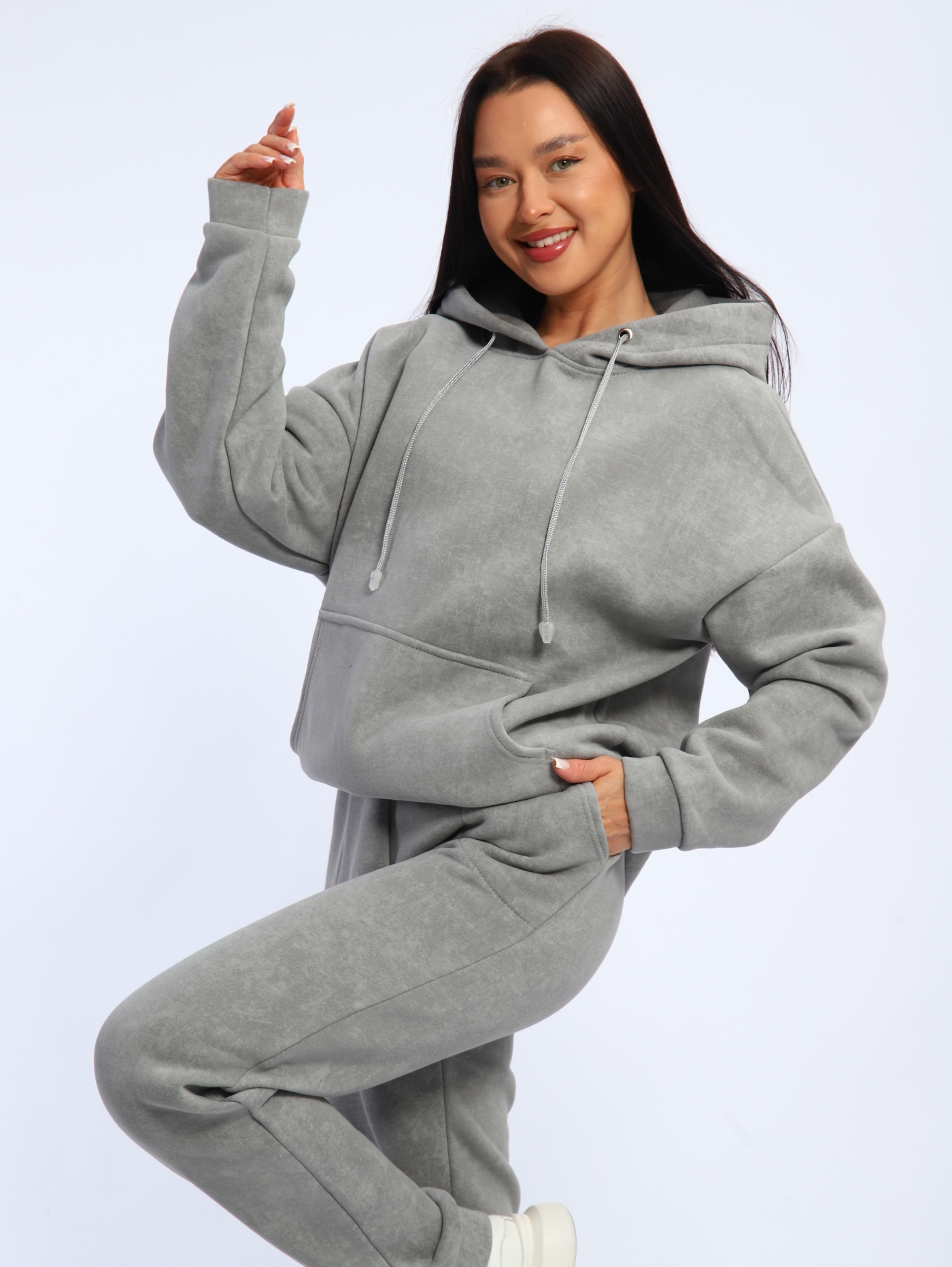 Женский костюм К3176.2 состоит из худи с капюшоном и спортивных брюк. Футер трёхнитка с начёсом, из которого отшит костюм, обеспечивает мягкость, теплоту и долговечность. Ткань «дышит», не создаёт парникового эффекта и сохраняет форму после стирок.