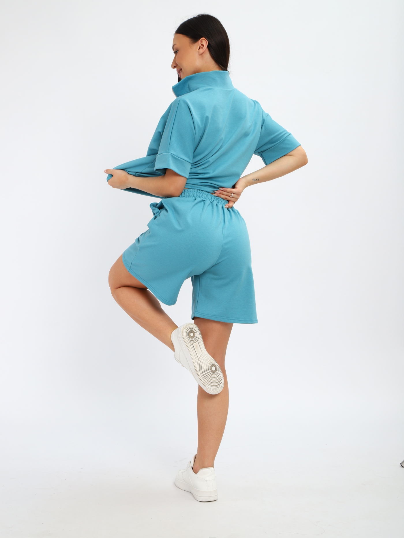 Женский костюм из футера с шортами — это удобный и практичный комплект, который подходит для дома, прогулок, спорта и отдыха. Футер — мягкий, дышащий трикотаж, который хорошо сохраняет форму и обеспечивает комфорт при носке.