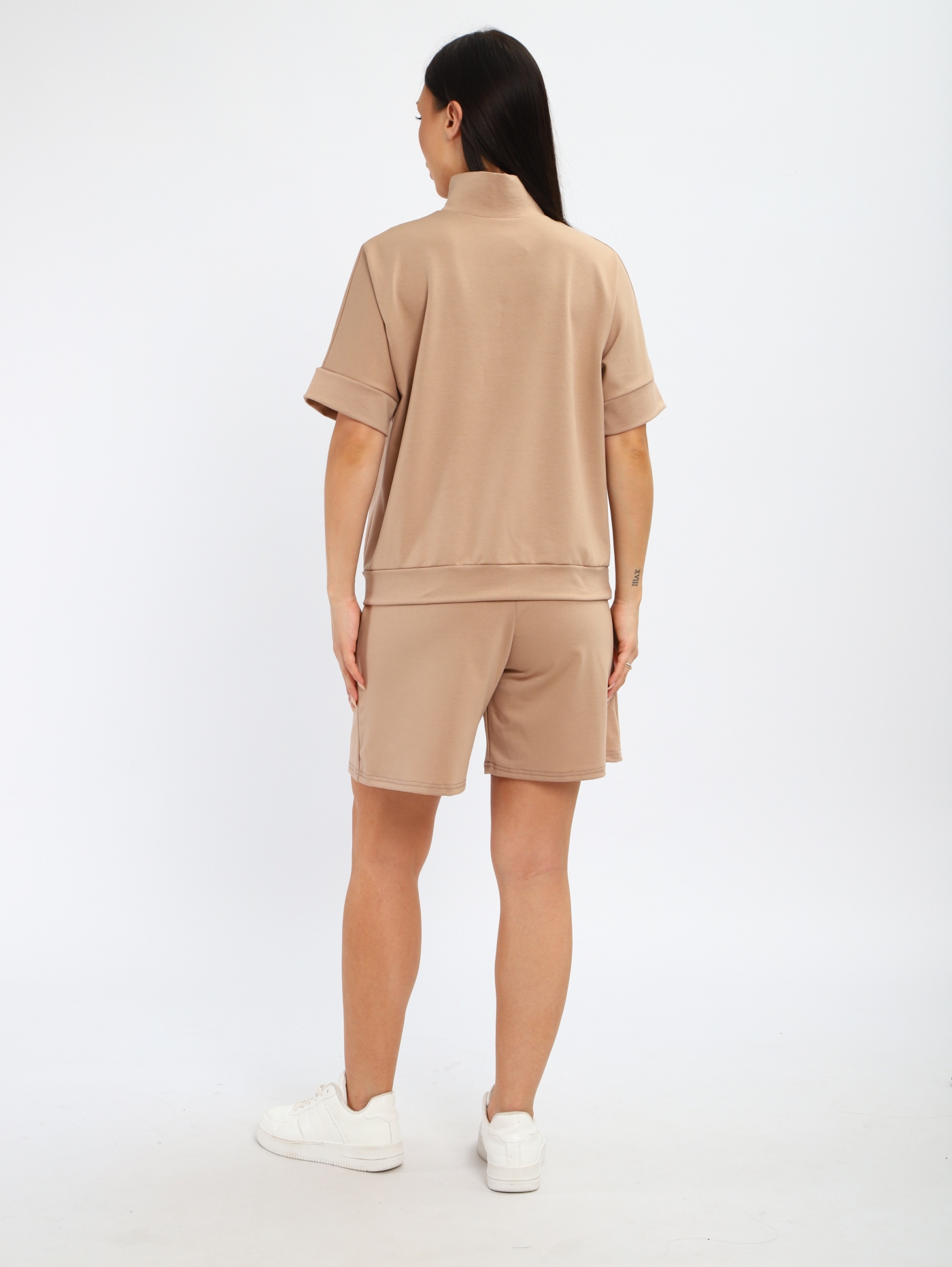 Женский костюм из футера с шортами — это удобный и практичный комплект, который подходит для дома, прогулок, спорта и отдыха. Футер — мягкий, дышащий трикотаж, который хорошо сохраняет форму и обеспечивает комфорт при носке.