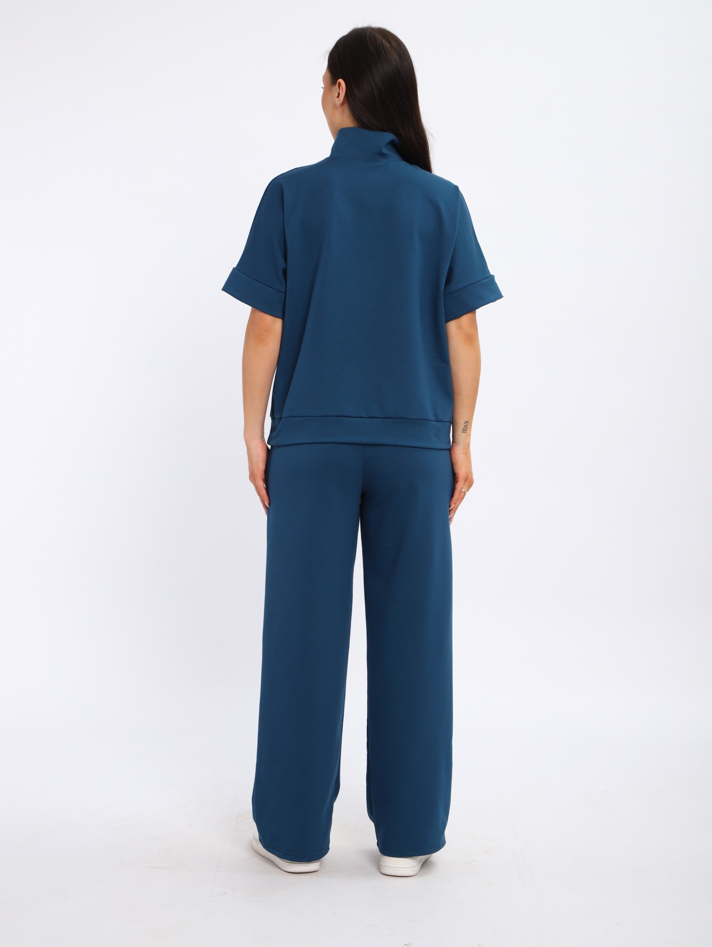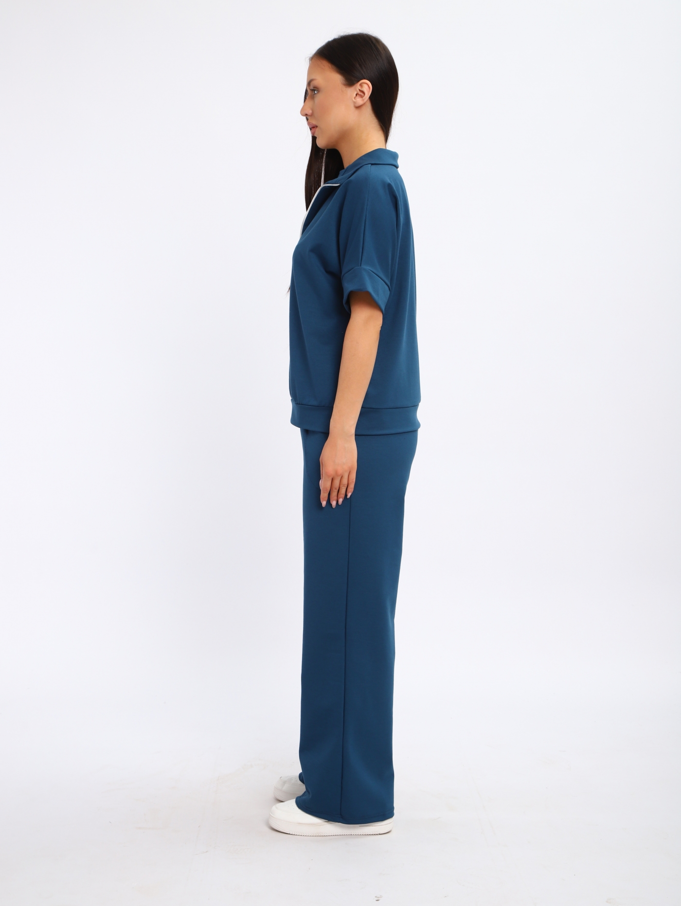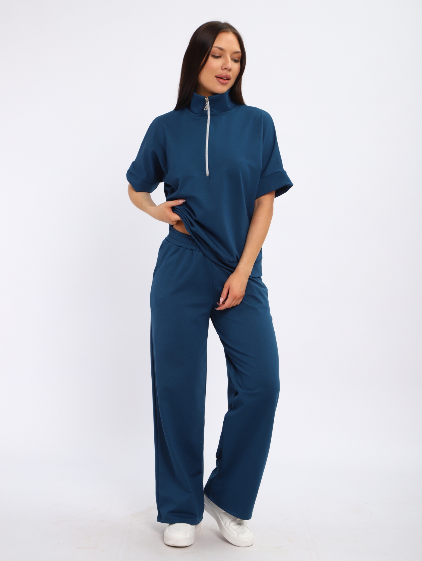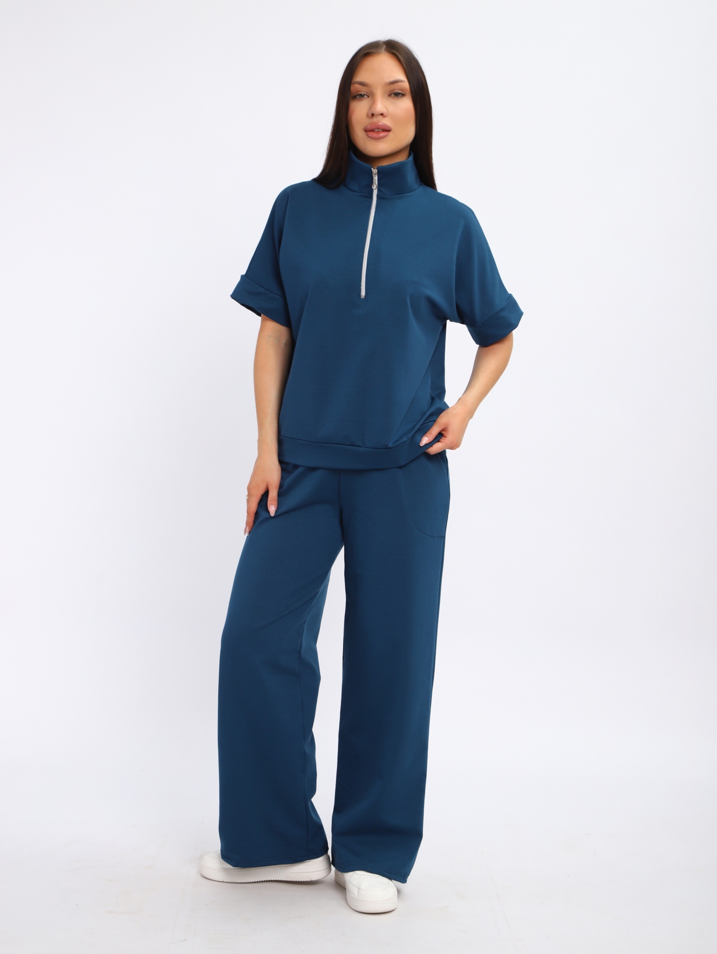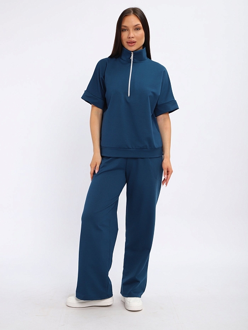 Женский костюм с брюками из однотонного футера с короткими рукавами — это удобный и практичный вариант для повседневной носки, спорта или отдыха. Футер — мягкий трикотаж из хлопка с добавлением синтетических волокон (полиэстера, лайкры), который хорошо тянется, сохраняет форму и обеспечивает комфорт.