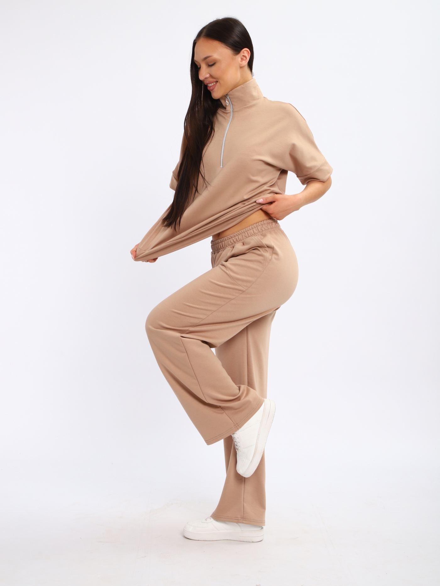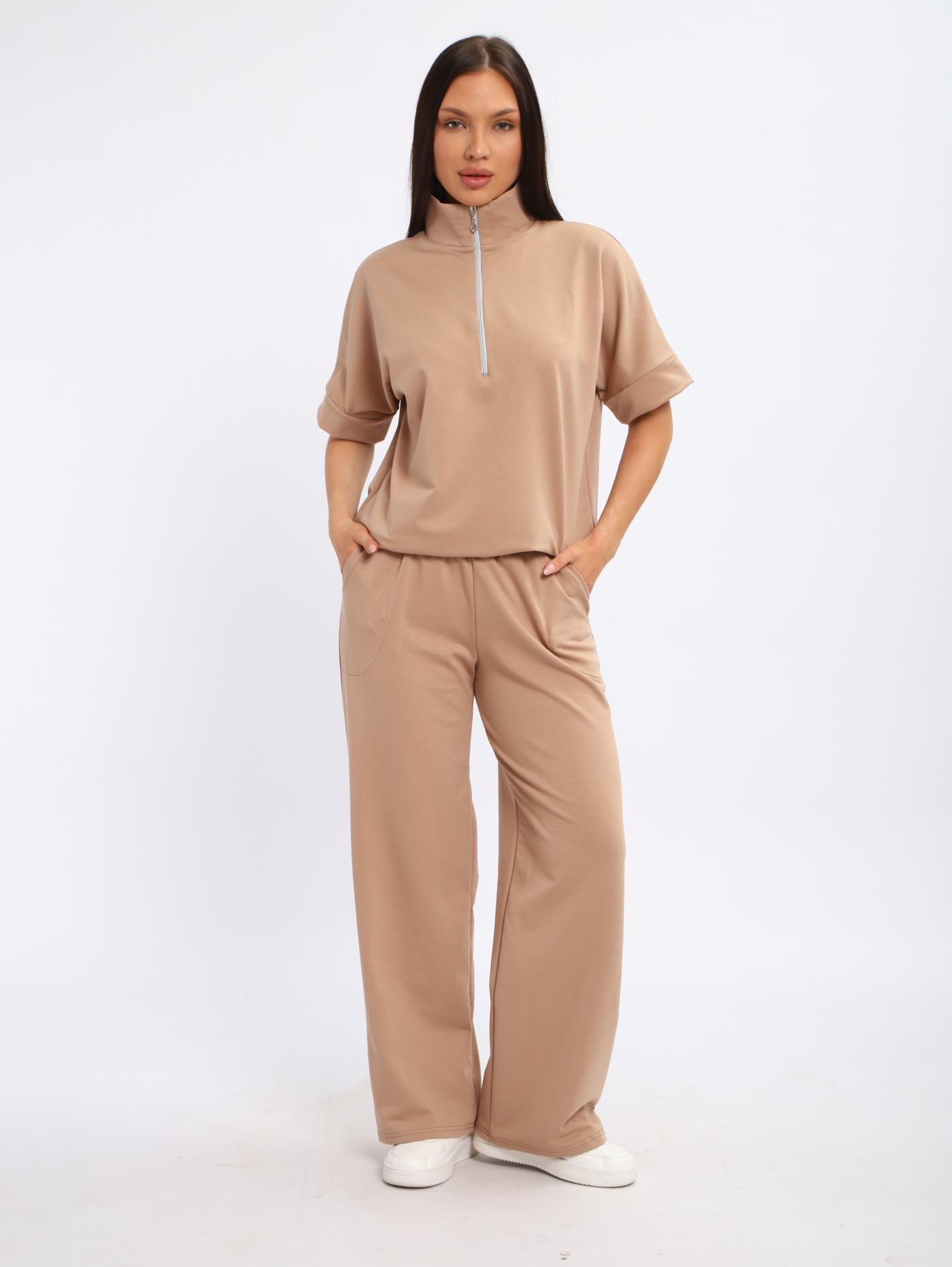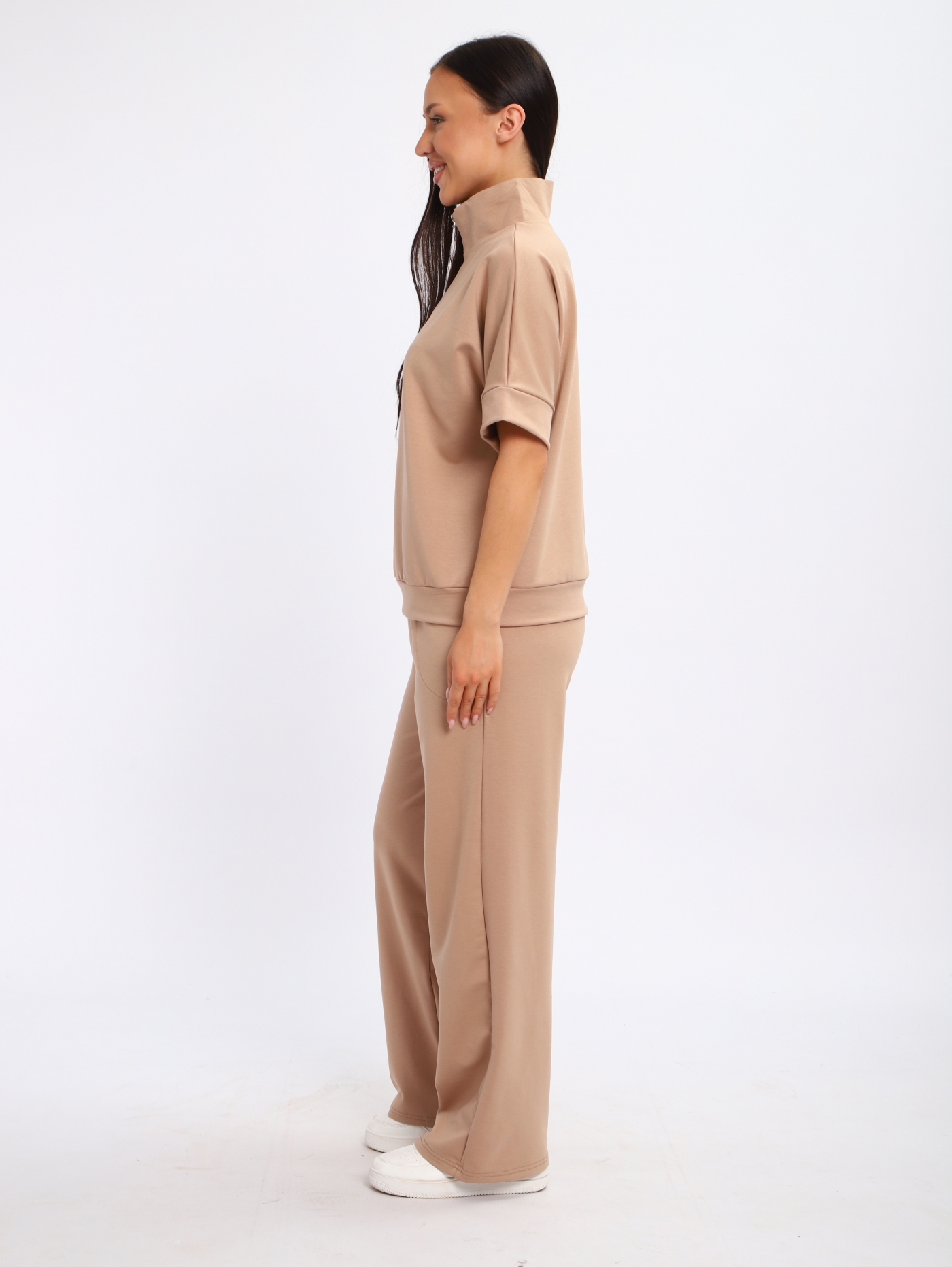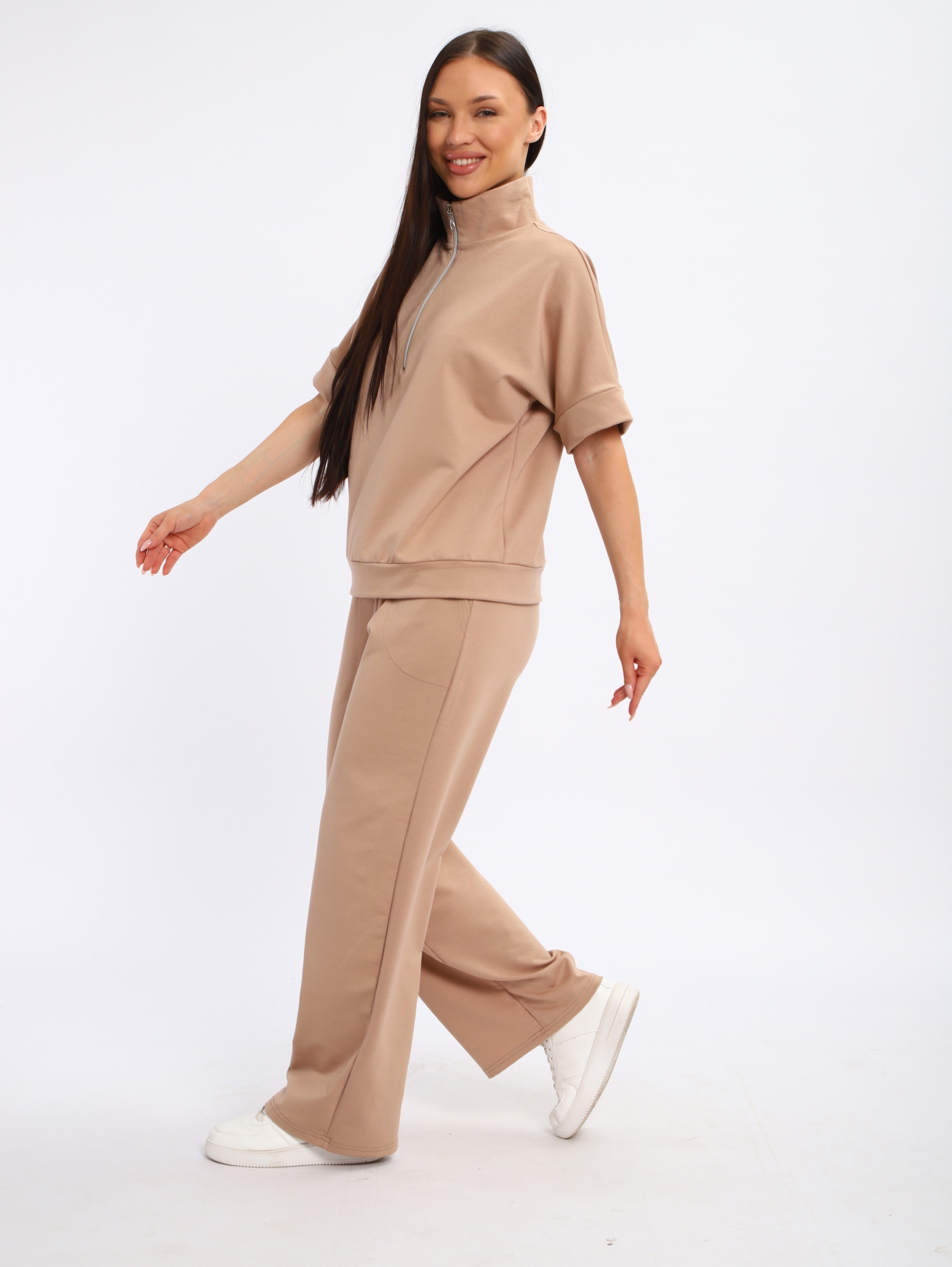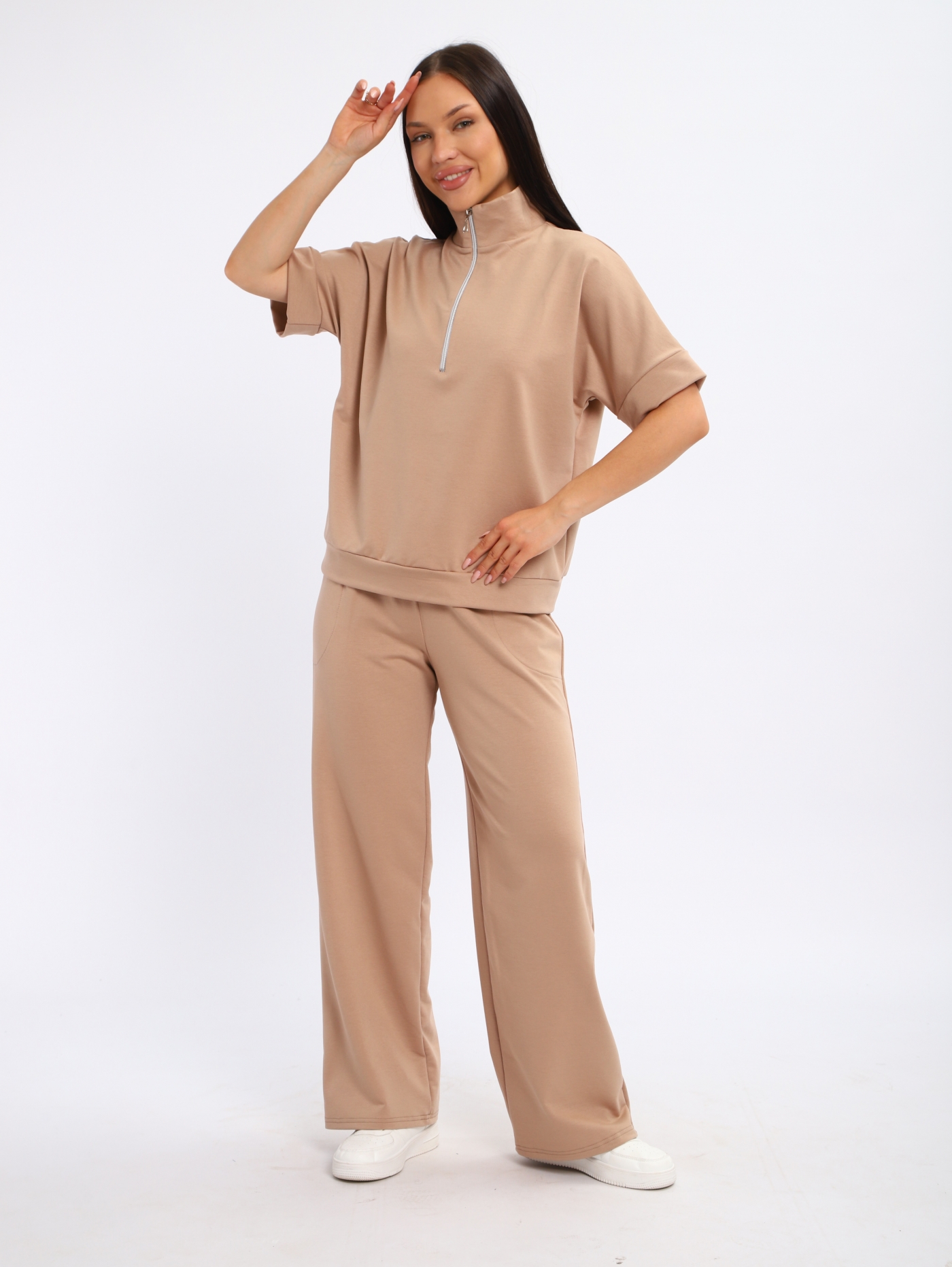 Женский костюм с брюками из однотонного футера с короткими рукавами — это удобный и практичный вариант для повседневной носки, спорта или отдыха. Футер — мягкий трикотаж из хлопка с добавлением синтетических волокон (полиэстера, лайкры), который хорошо тянется, сохраняет форму и обеспечивает комфорт.