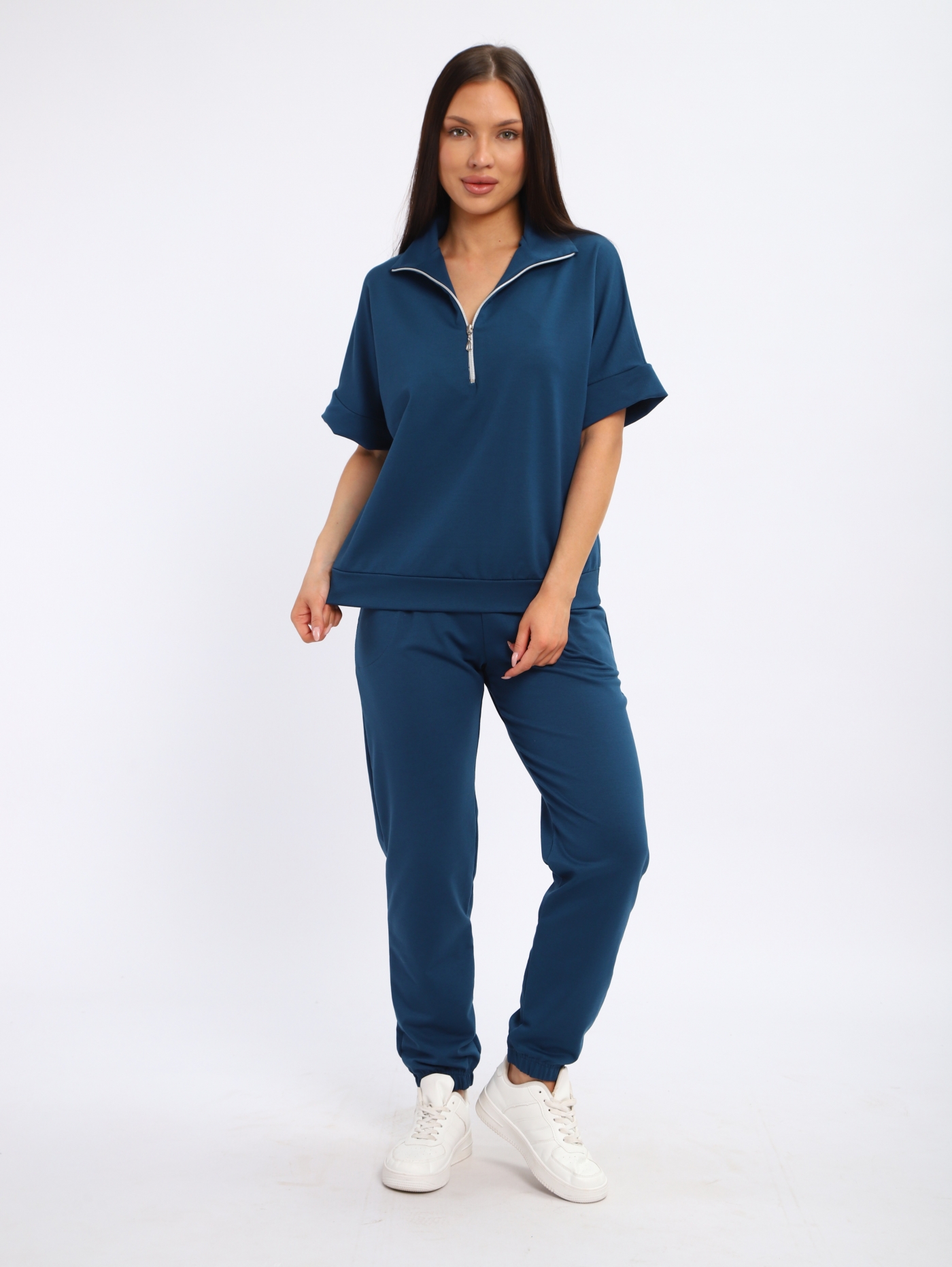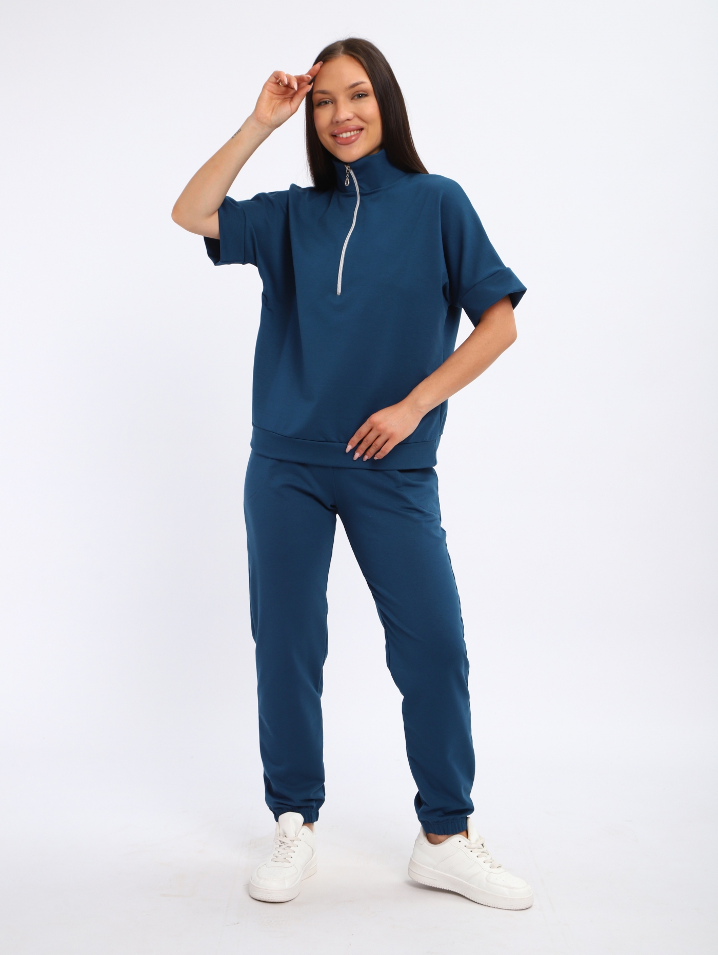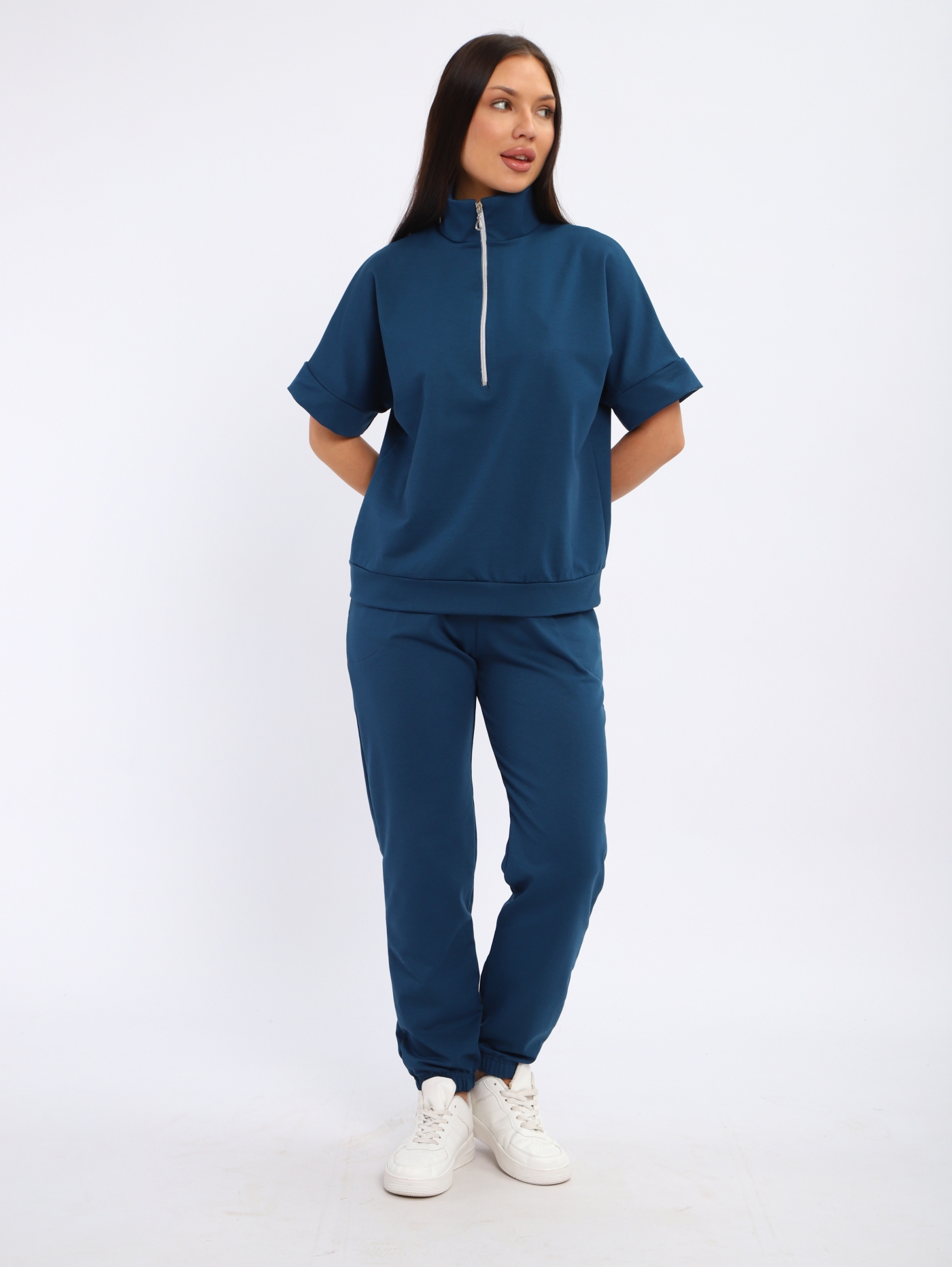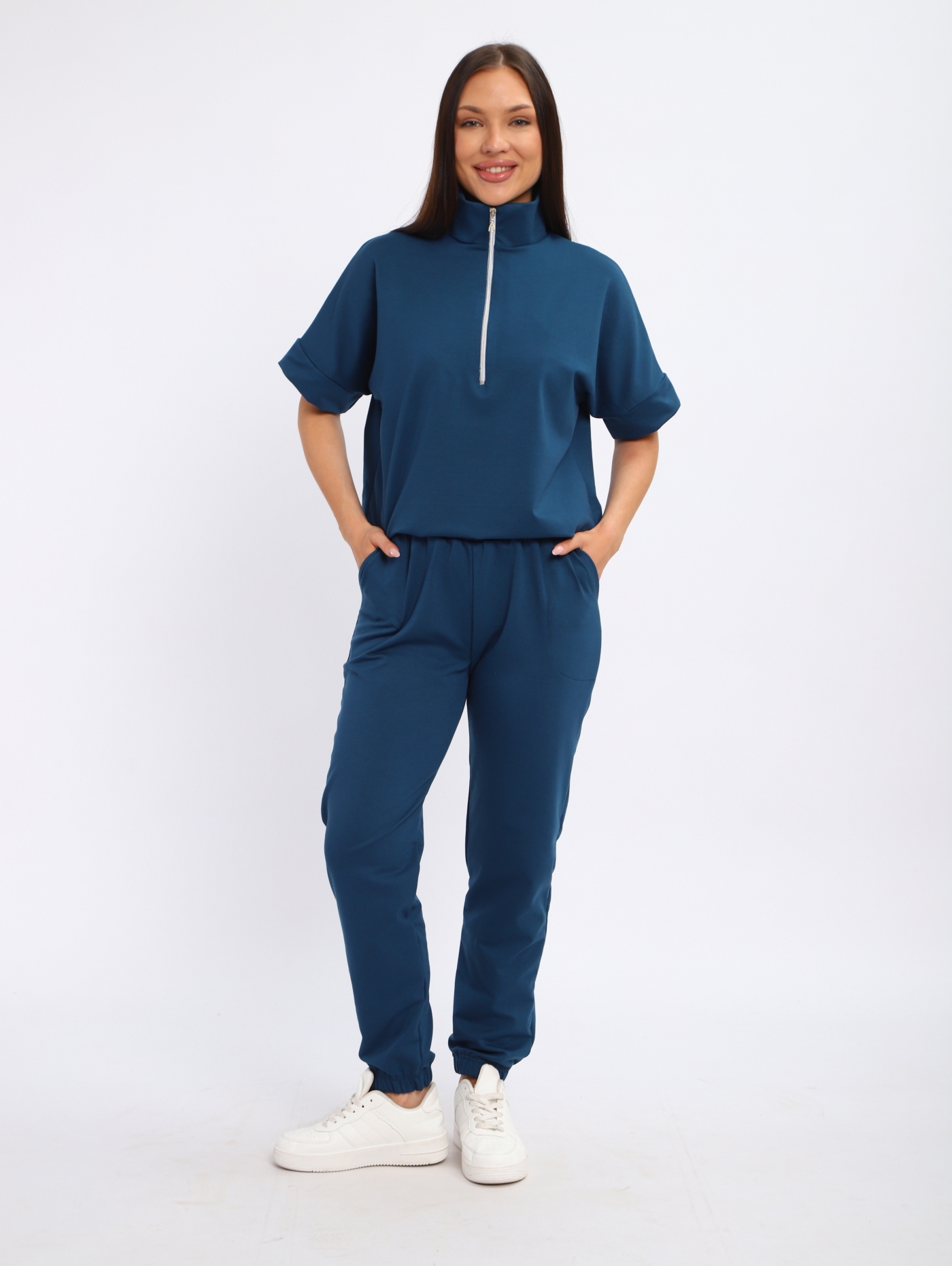 Женский костюм с брюками из однотонного футера с короткими рукавами — это удобный и практичный вариант для повседневной носки, спорта или отдыха. Футер — мягкий трикотаж из хлопка с добавлением синтетических волокон (полиэстера, лайкры), который хорошо тянется, сохраняет форму и обеспечивает комфорт.