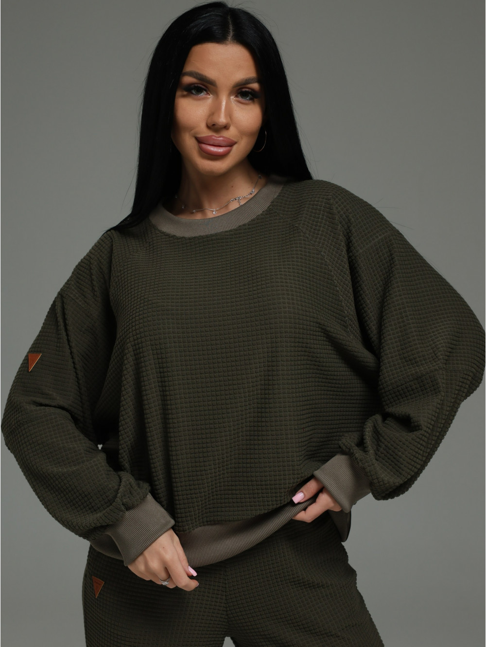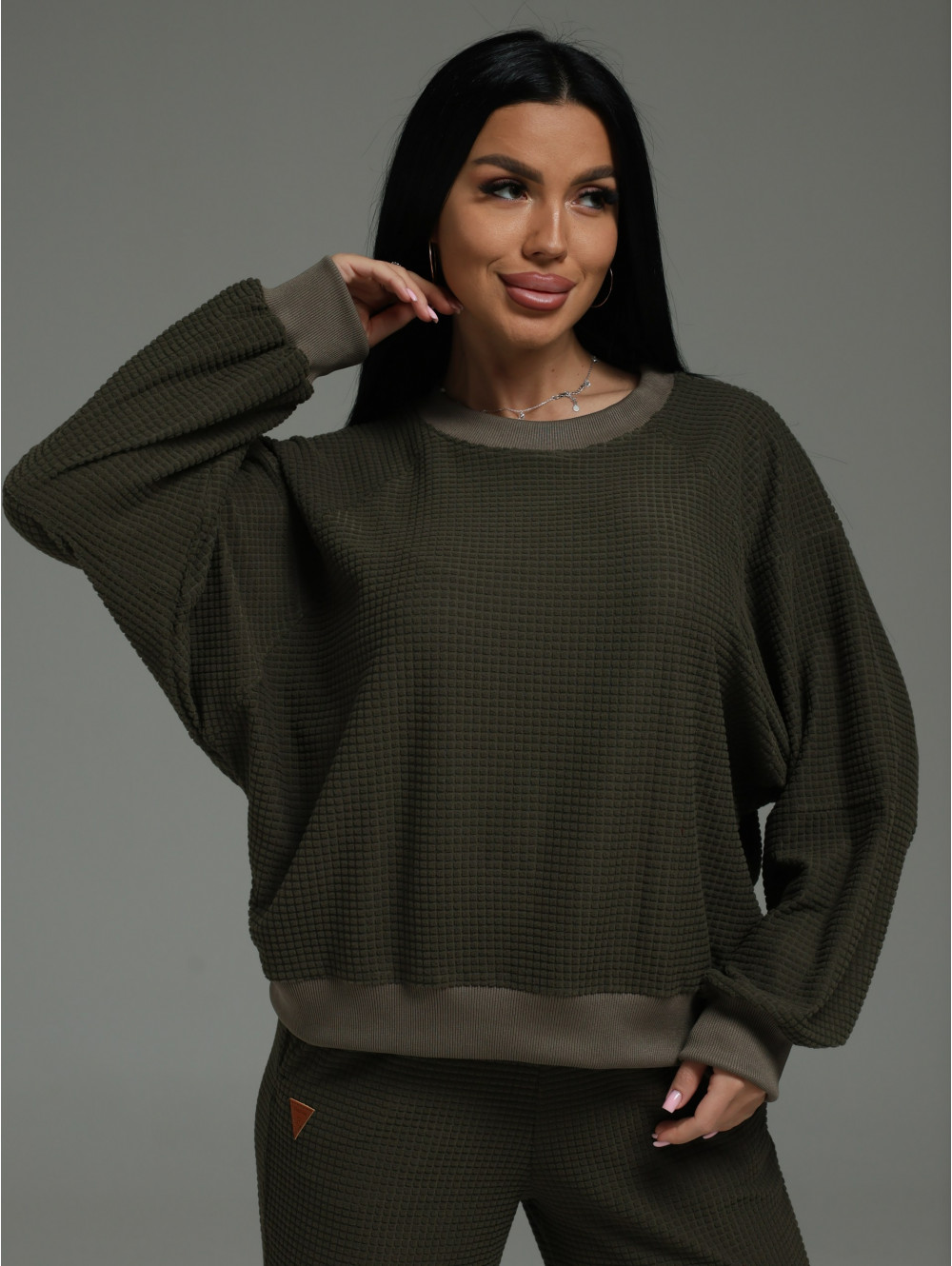 Низ рукавов и низ свитшота на манжете из кашкорсе.