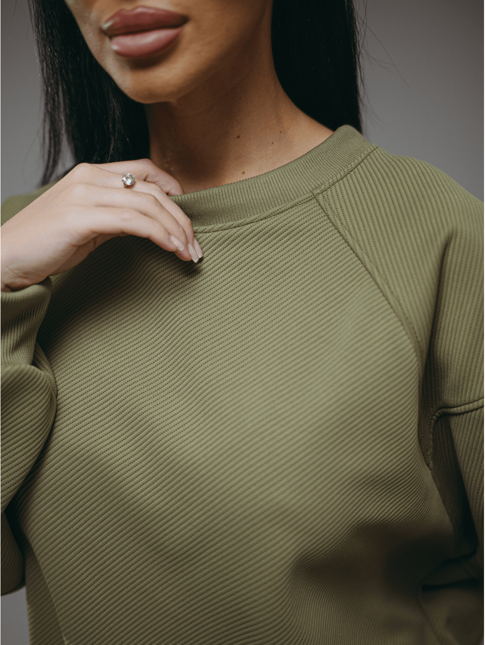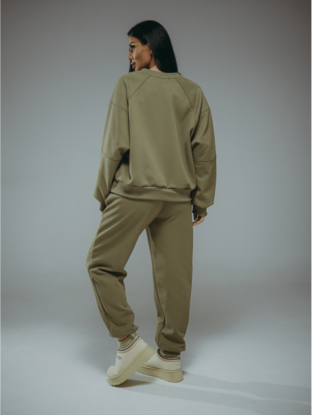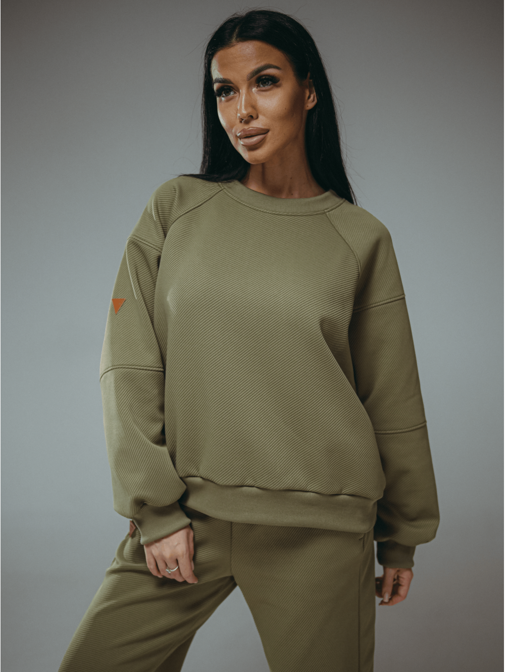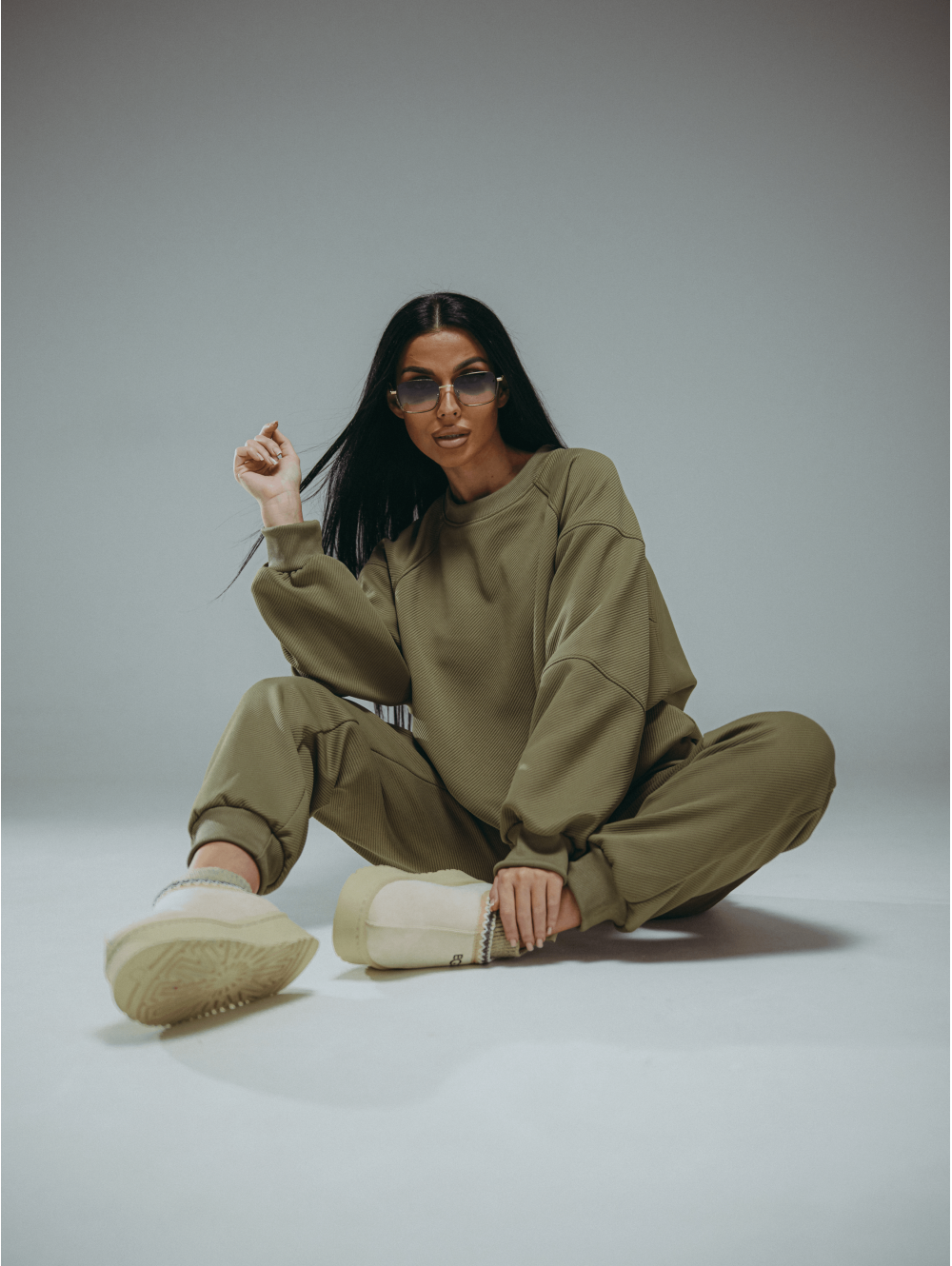 Костюм Калипсо состоит из свитшота и брюк. Свитшот прямого силуэта, с рукавом реглан со вставками. Рукав состоит из трёх частей. Низ рукавов и низ свитшота на манжете из кашкорсе. Брюки на резинке с цельнокроеным поясом. В боковых швах прорезной карман. Низ брюк обработан манжетой из кашкорсе.