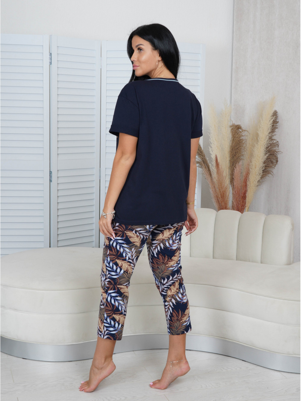 Очаровательный костюм Хилари состоит из удлиненной футболки с коротким рукавом и бриджей с карманами. Удобные штаны на резинке на талии не стеснят движения даже во время активной игры с ребенком, а майка свободного кроя скроет недостатки фигуры. Отлично садится по фигуре, комфортный крой позволяет ощущать себя свободно, уютно. Женская пижама выполнена из качественного 100% хлопка, что позволяет коже дышать, поэтому в ней удобно заниматься бытом, спать и встречаться с близкими на домашних вечерах.