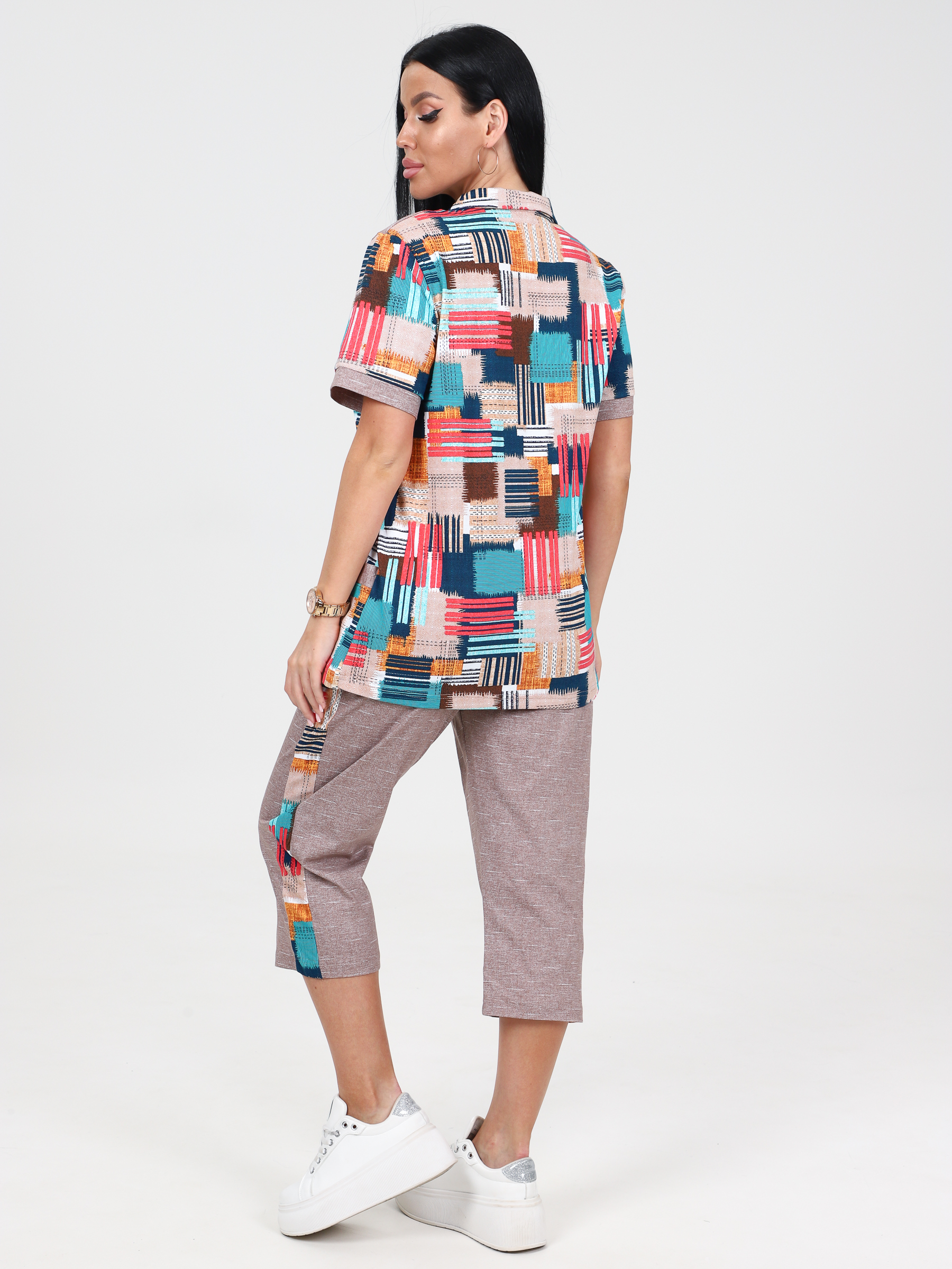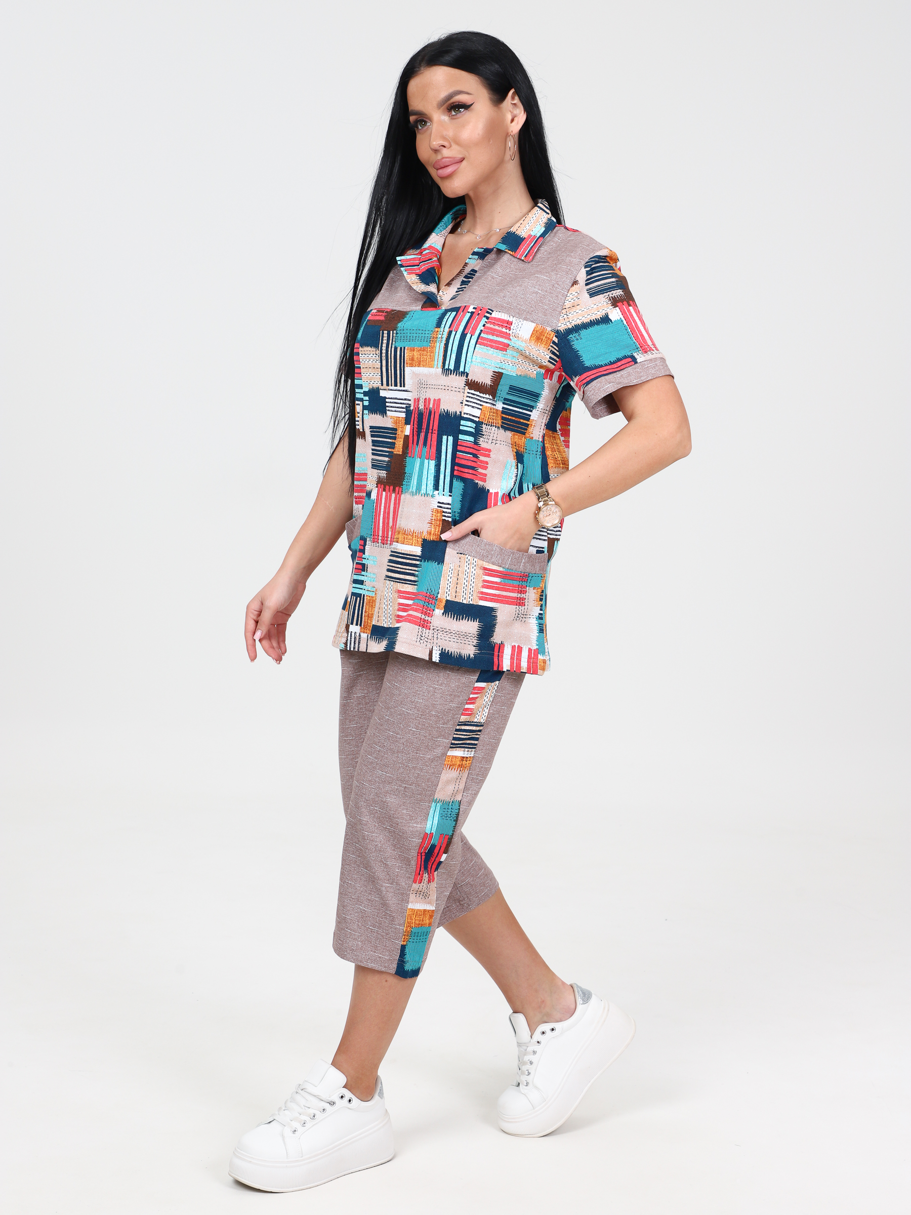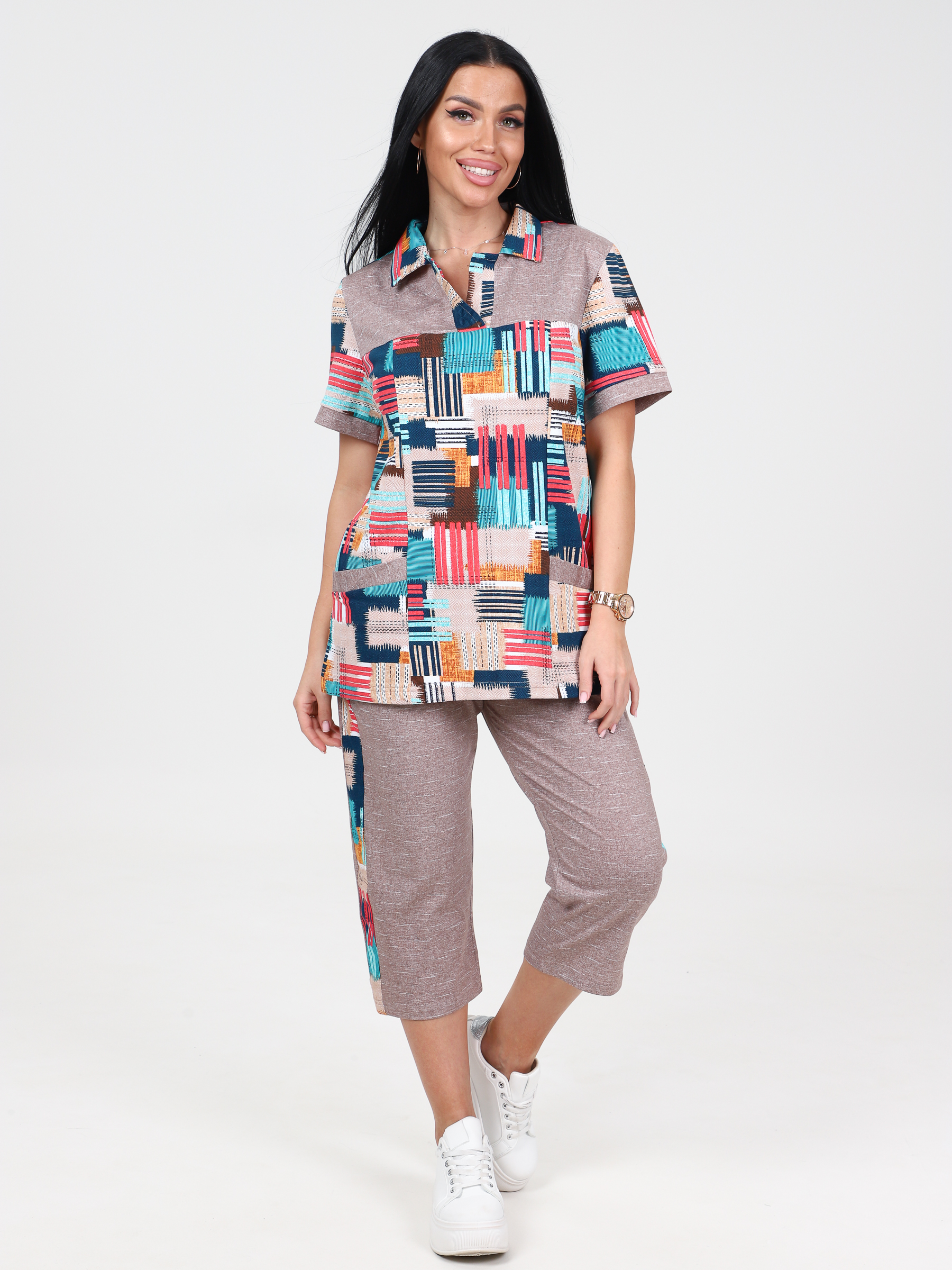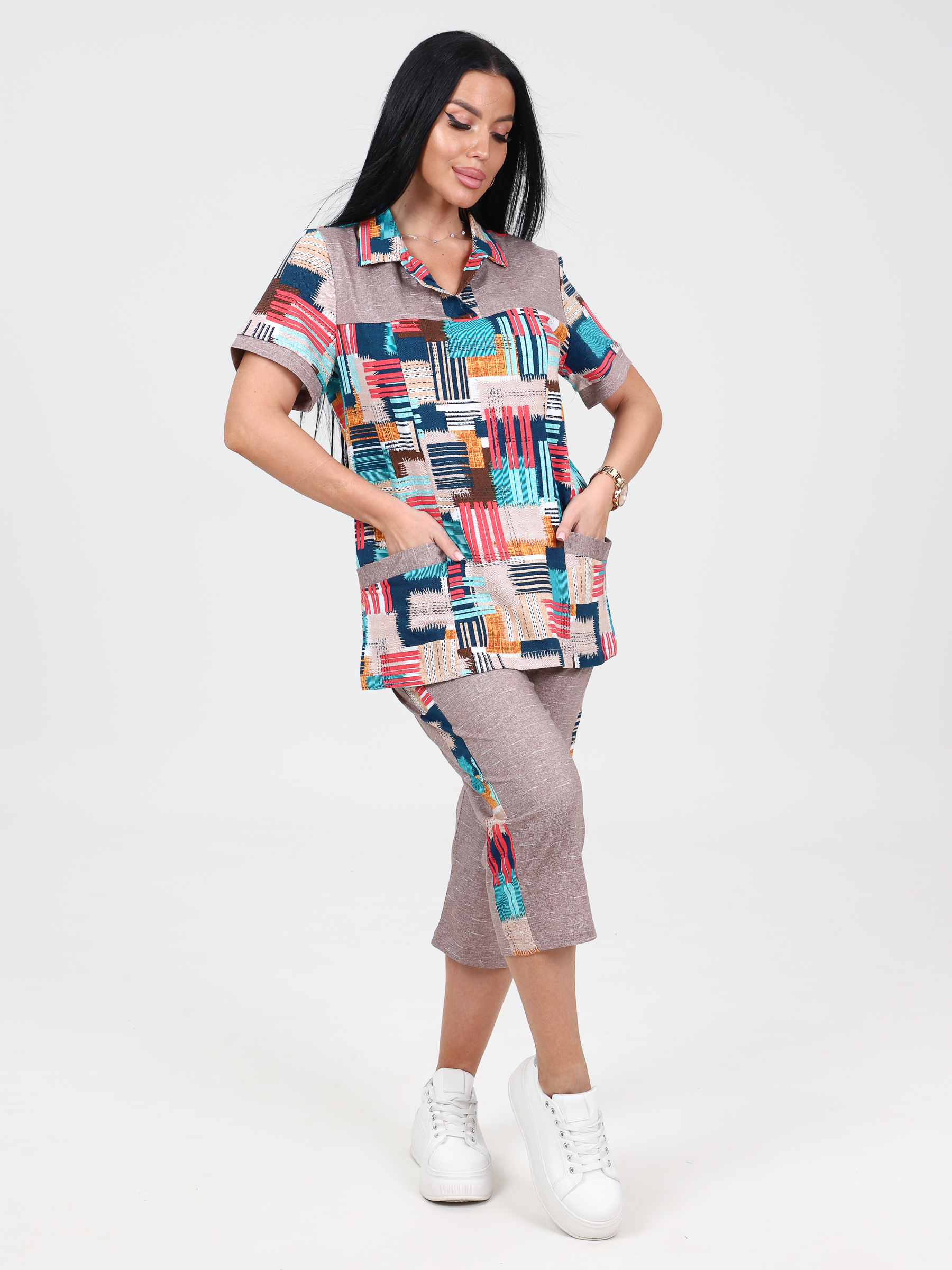 Костюм женский домашний, хлопковый с бриджами сшит из трикотажного полотна - кулирка. Костюм женский - идеальный выбор для активного отдыха, прогулки на свежем воздухе. Хлопковый костюм будет хорошо смотреться на разных типах женской фигуры, подойдет для женщин всех возрастов. Костюм женский имеет удобный свободный крой, что подарит Вам полную свободу движений и комфорт. Костюм полностью изготовлен из воздухопроницаемого мягкого и приятного для кожи хлопка, что даст Вам ощущение комфорта, даже в жаркую погоду! Широкий размерный ряд позволяет удовлетворить потребности женщин любой комплектации.