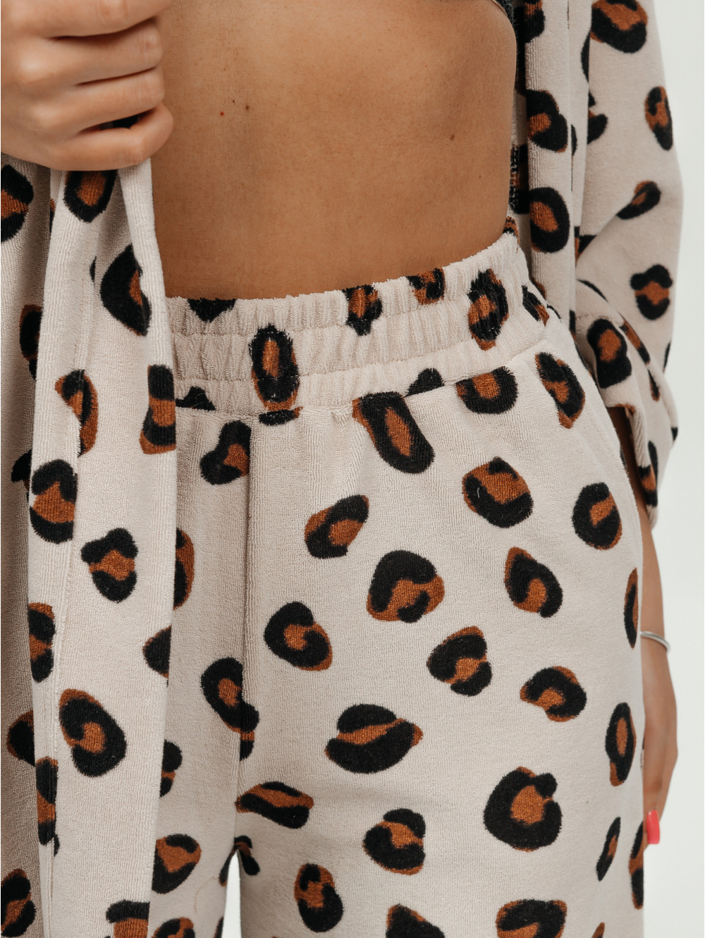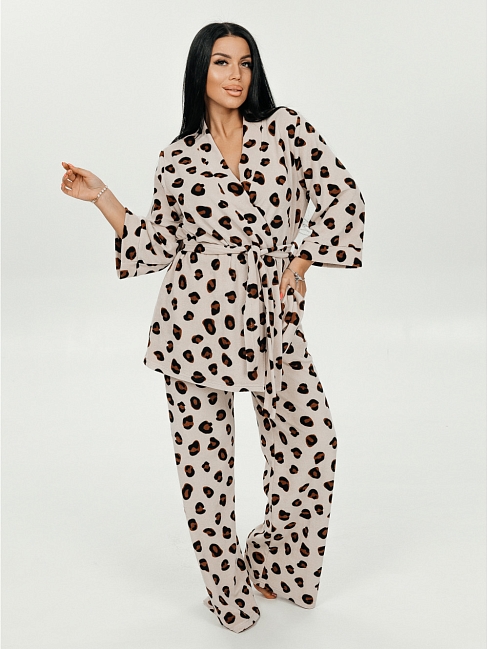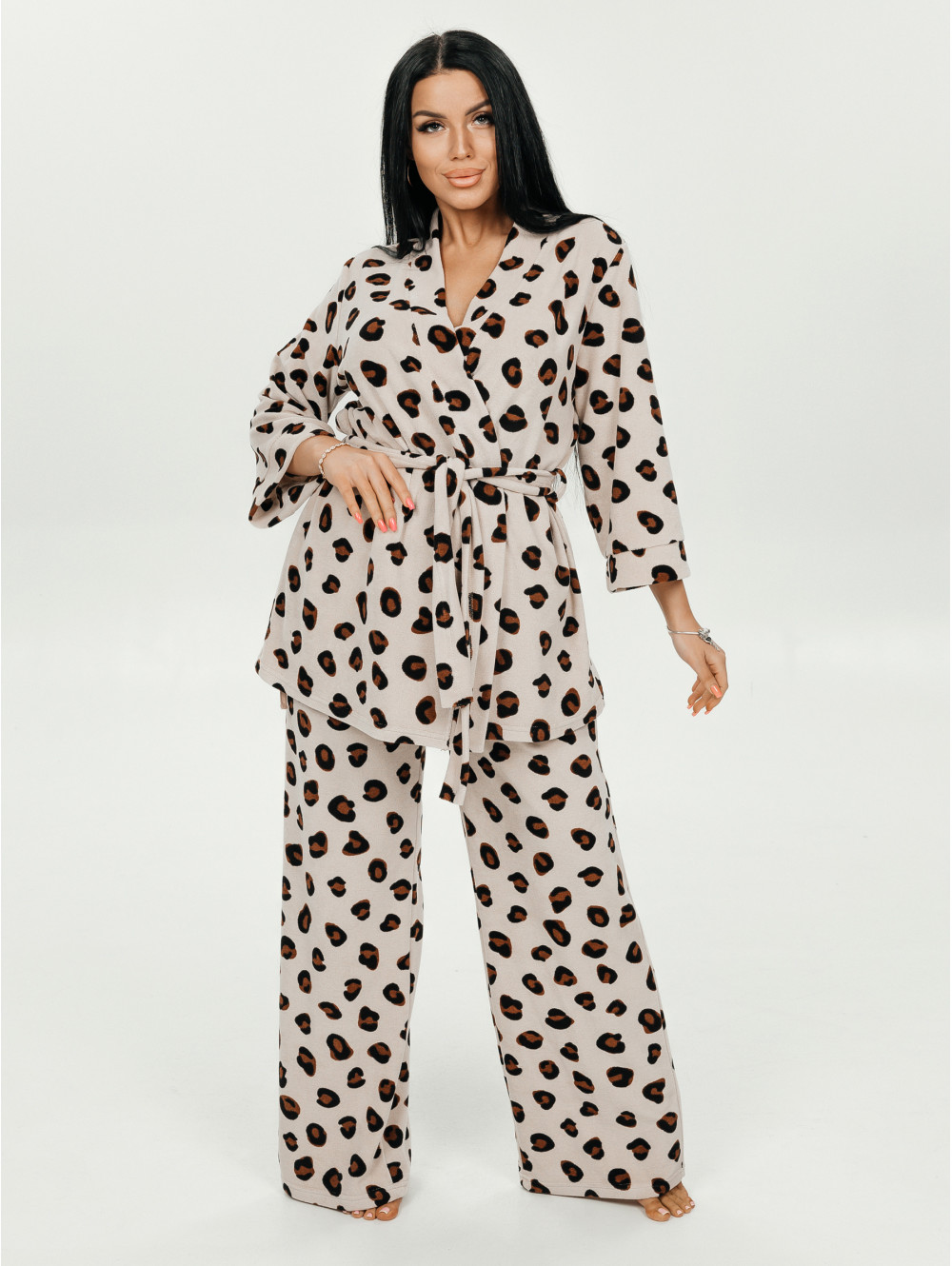 Костюм женский состоит из кардигана и брюк с актуальным анималистическим принтом, выполнен из высококачественной хлопкосодержащей махры по самым передовым технологиям. Широкий размерный ряд позволит Вам выбрать подходящий размер на любой тип фигуры и чувствовать себя королевой.
