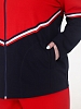 Костюм из футера с лайкрой отделан декоративными лентами. Толстовка на молнии, рукава втачные, аккуратные внутренние карманы с листочкой. Брюки прямые, пояс на резинке, 2 внутренних кармана.