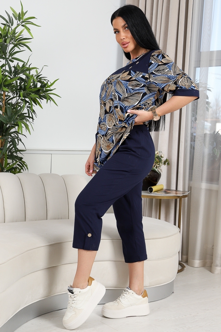 Женский костюм Листья 634 / синий