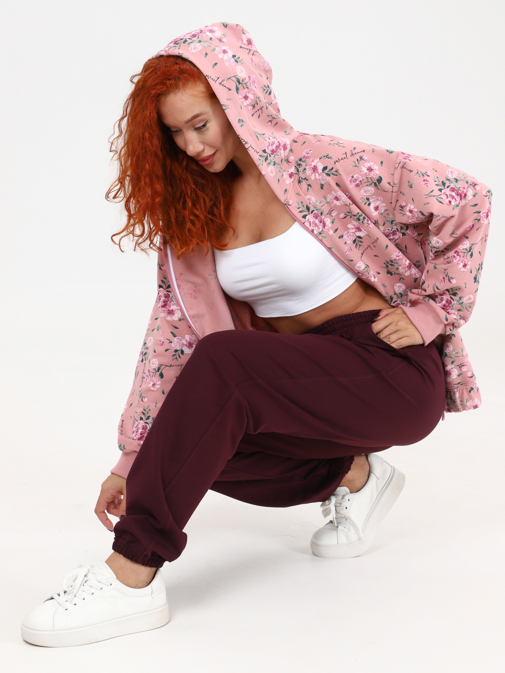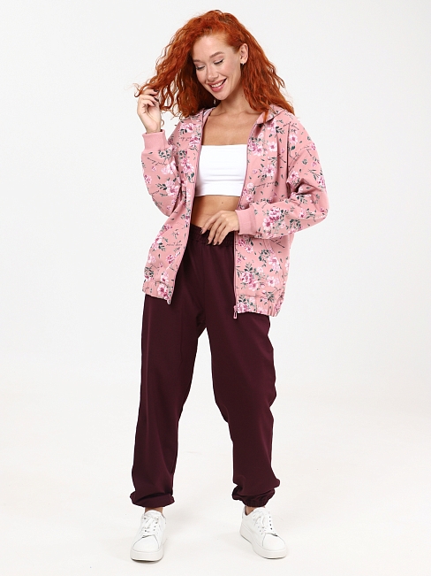 Женский спортивный костюм на молнии больших размеров - идеальный выбор на каждый день. Костюм женский на молнии выполнен из плотного трикотажного материала - футер без начеса. Женский костюм состоит из худи на молнии с капюшоном и брюк джоггеров со средней посадкой и карманами, внизу брючин резинка. Костюм выдержан в спортивном стиле, что позволяет носить его в различных обстоятельствах. Он уместен в кафе, на прогулке в парке или на спортивной площадке.