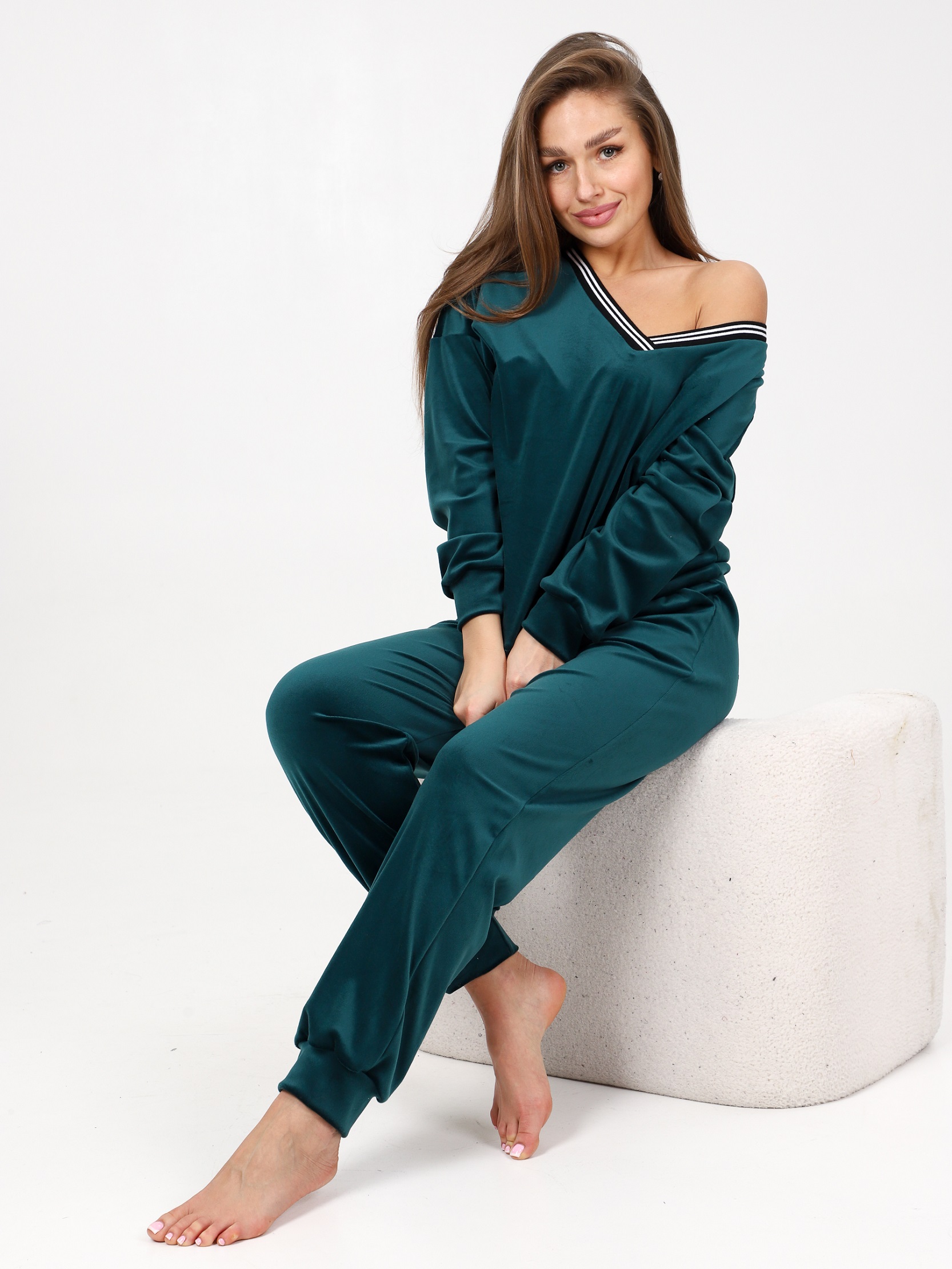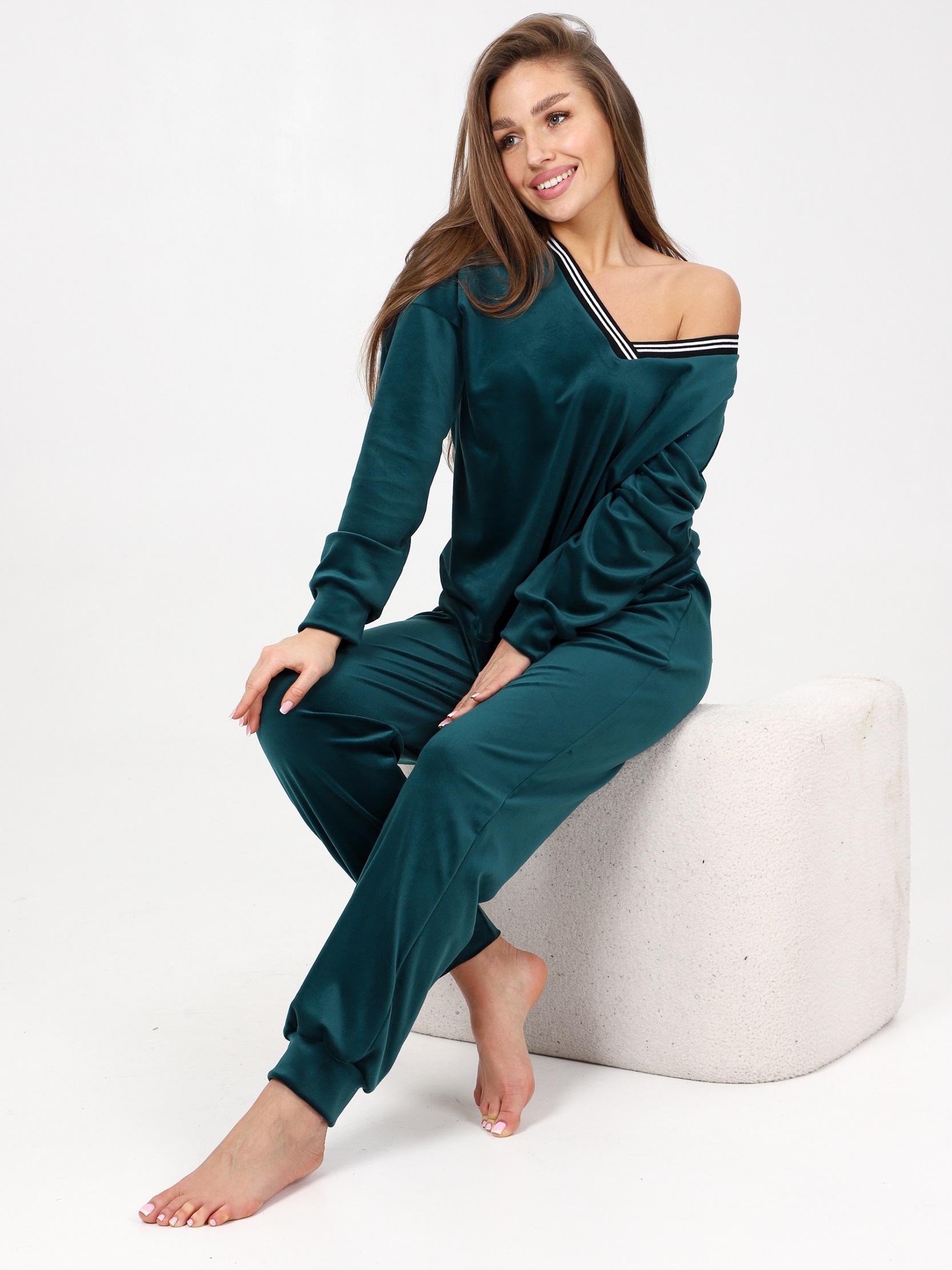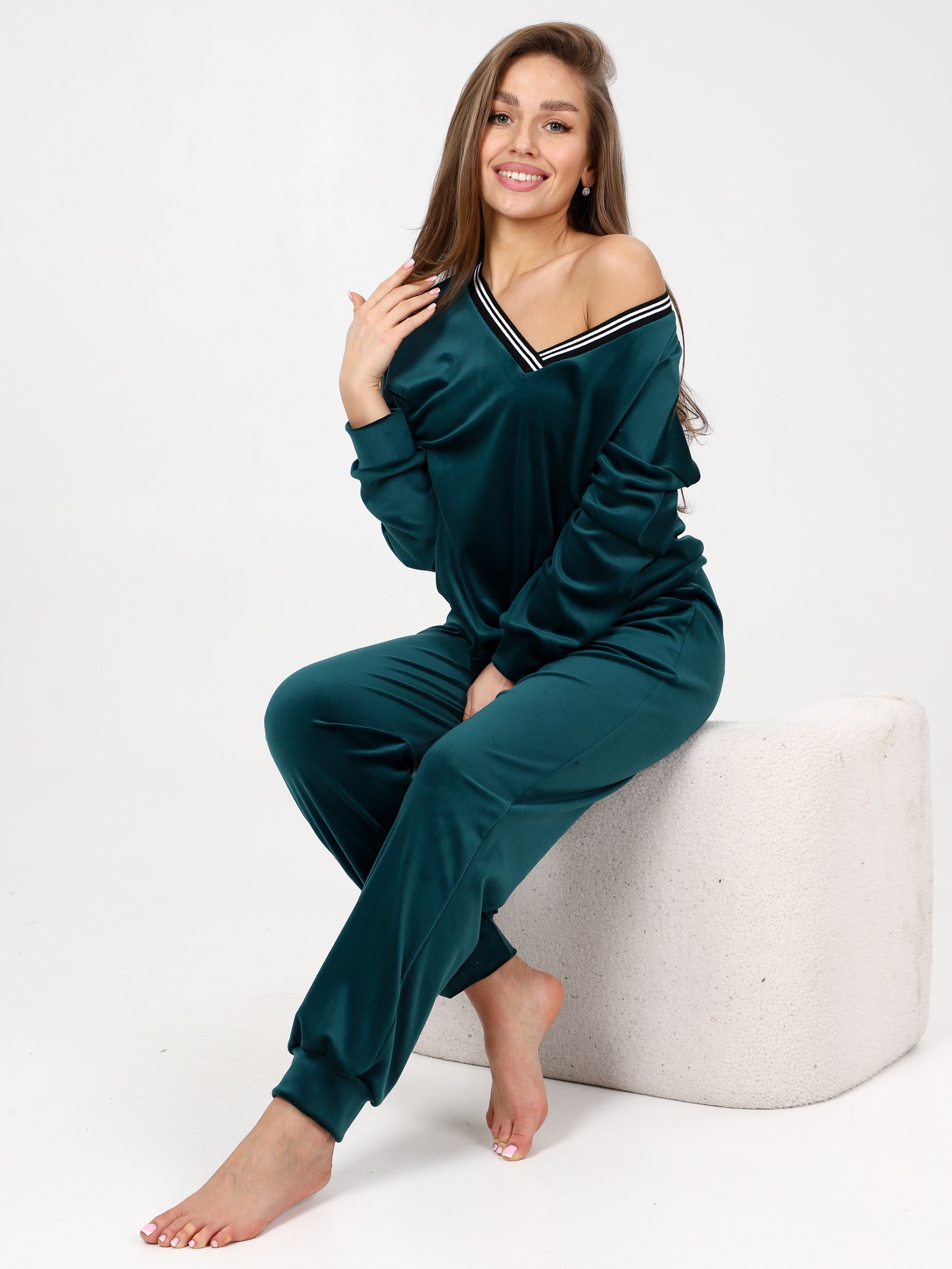 Домашний костюм из велюра – это идеальный вариант для тех, кто ищет комфорт и стиль в одежде. Стильный костюм с брюками очень удобный в носке и совершенно простой в уходе. Ткань легко стирается и гладится.