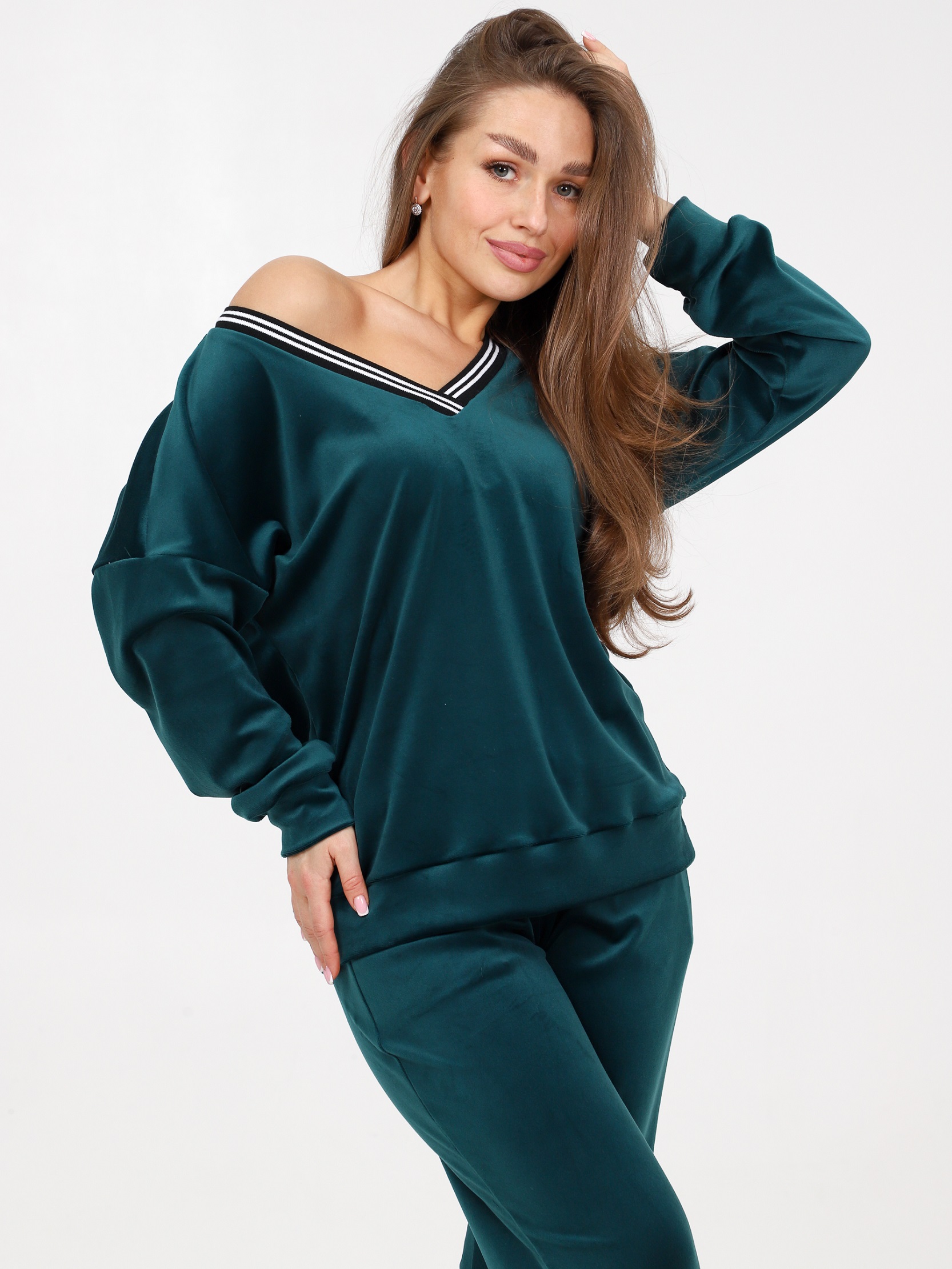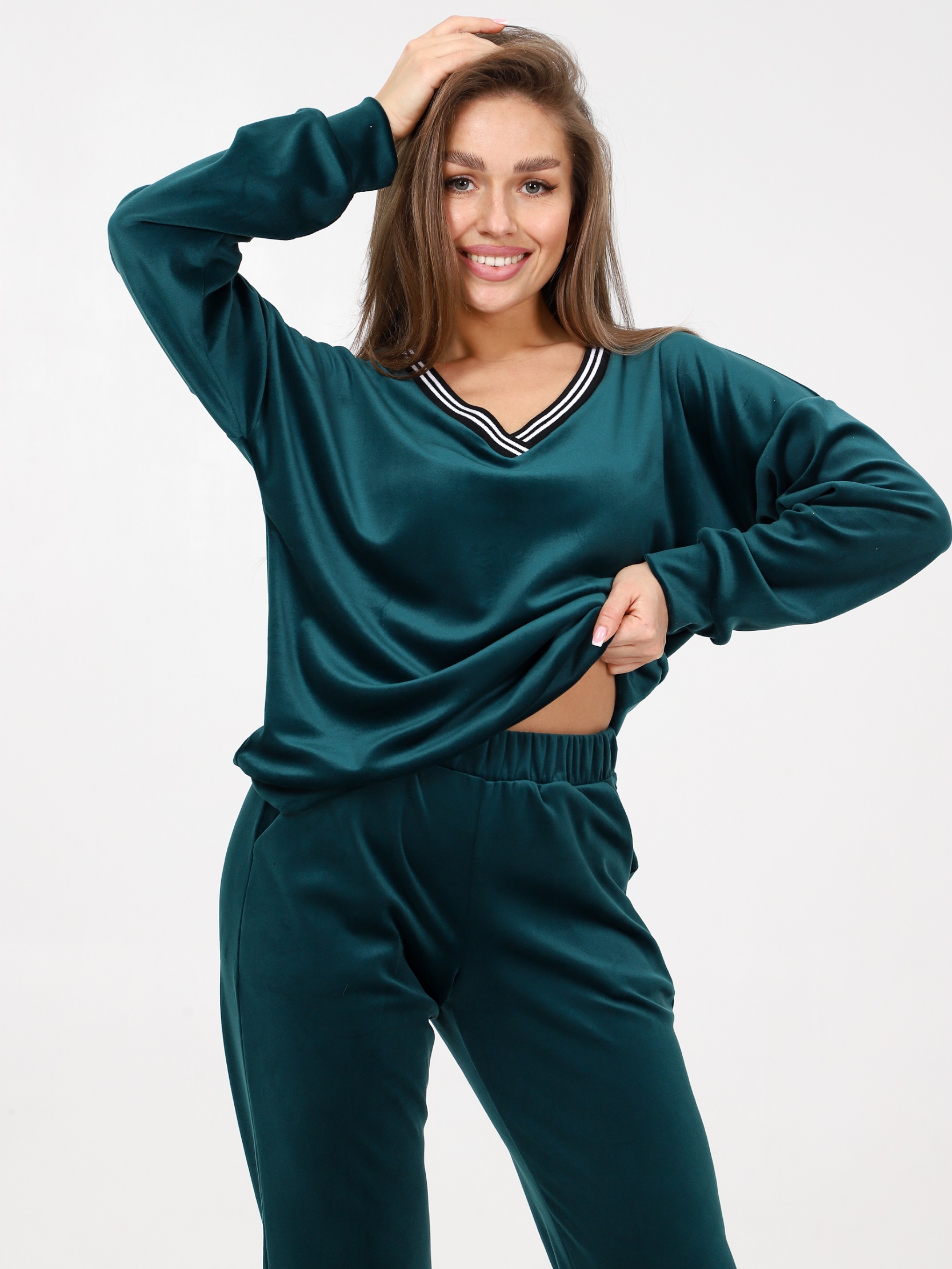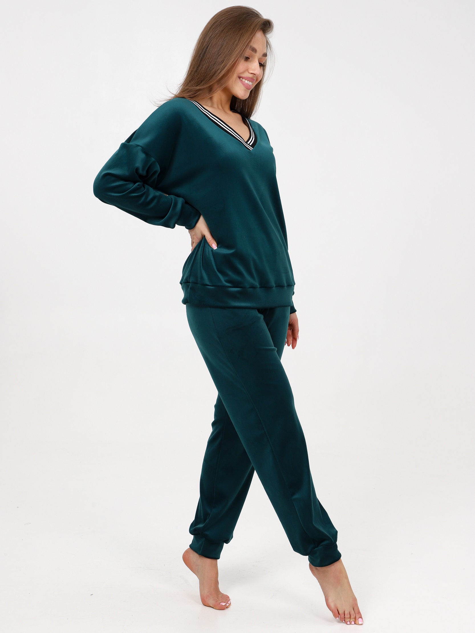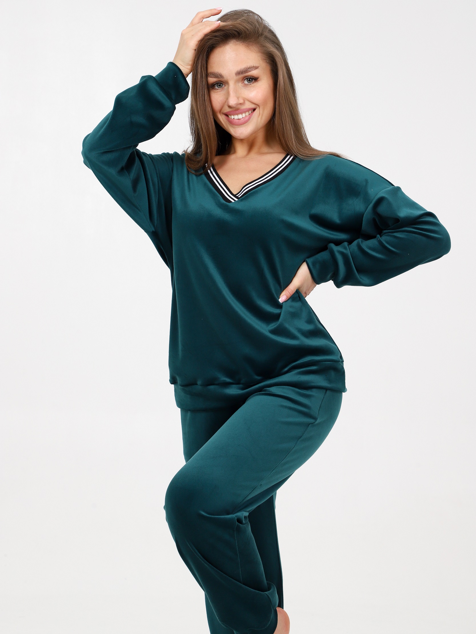 Домашний костюм из велюра – это идеальный вариант для тех, кто ищет комфорт и стиль в одежде. Стильный костюм с брюками очень удобный в носке и совершенно простой в уходе. Ткань легко стирается и гладится.