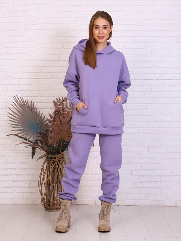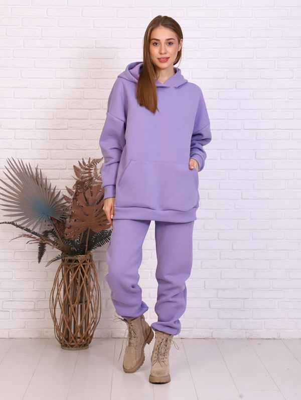 Ультра-модный спортивный костюм Меган в стиле оверсайз, выполненный из мягкого трикотажного полотна (футер с начесом). Худи со спущенным плечом, объемными рукавами, карманом-кенгуру и капюшоном. Брюки свободные с боковыми карманами.