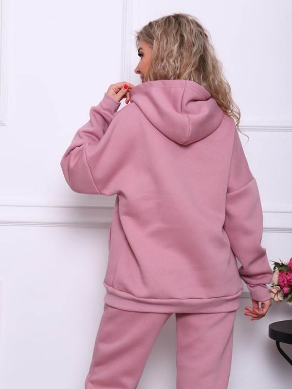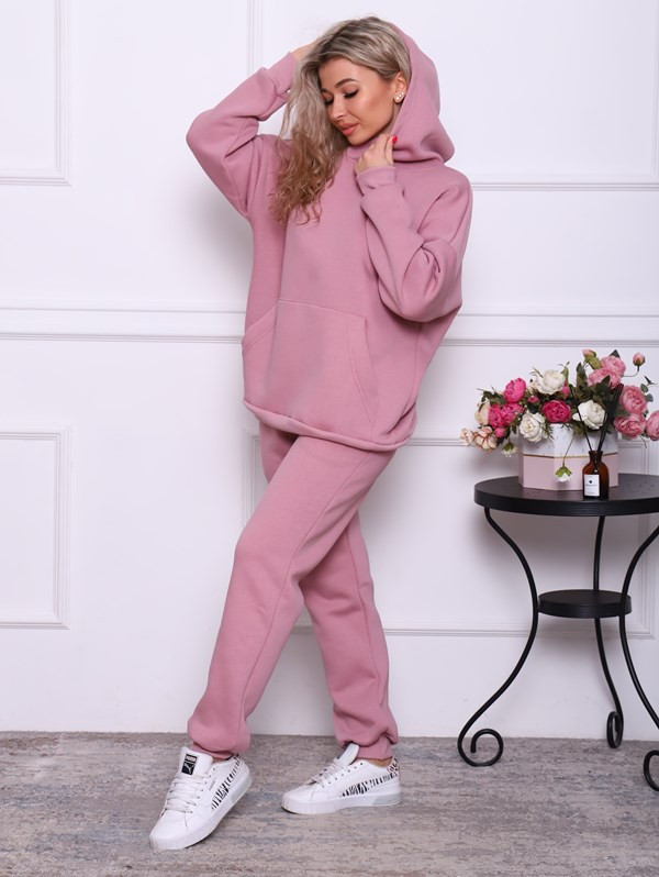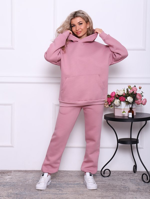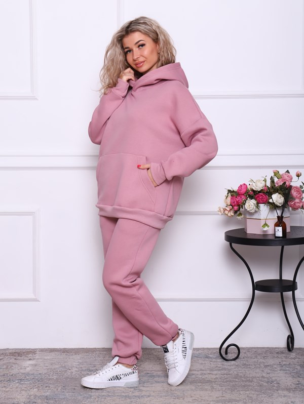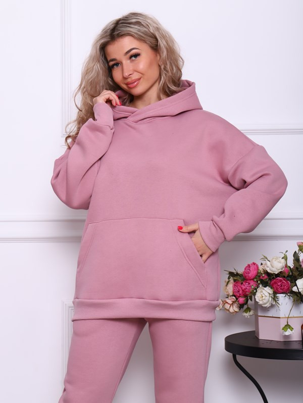 Ультра-модный спортивный костюм Меган в стиле оверсайз, выполненный из мягкого трикотажного полотна (футер с начесом). Худи со спущенным плечом, объемными рукавами, карманом-кенгуру и капюшоном. Брюки свободные с боковыми карманами.