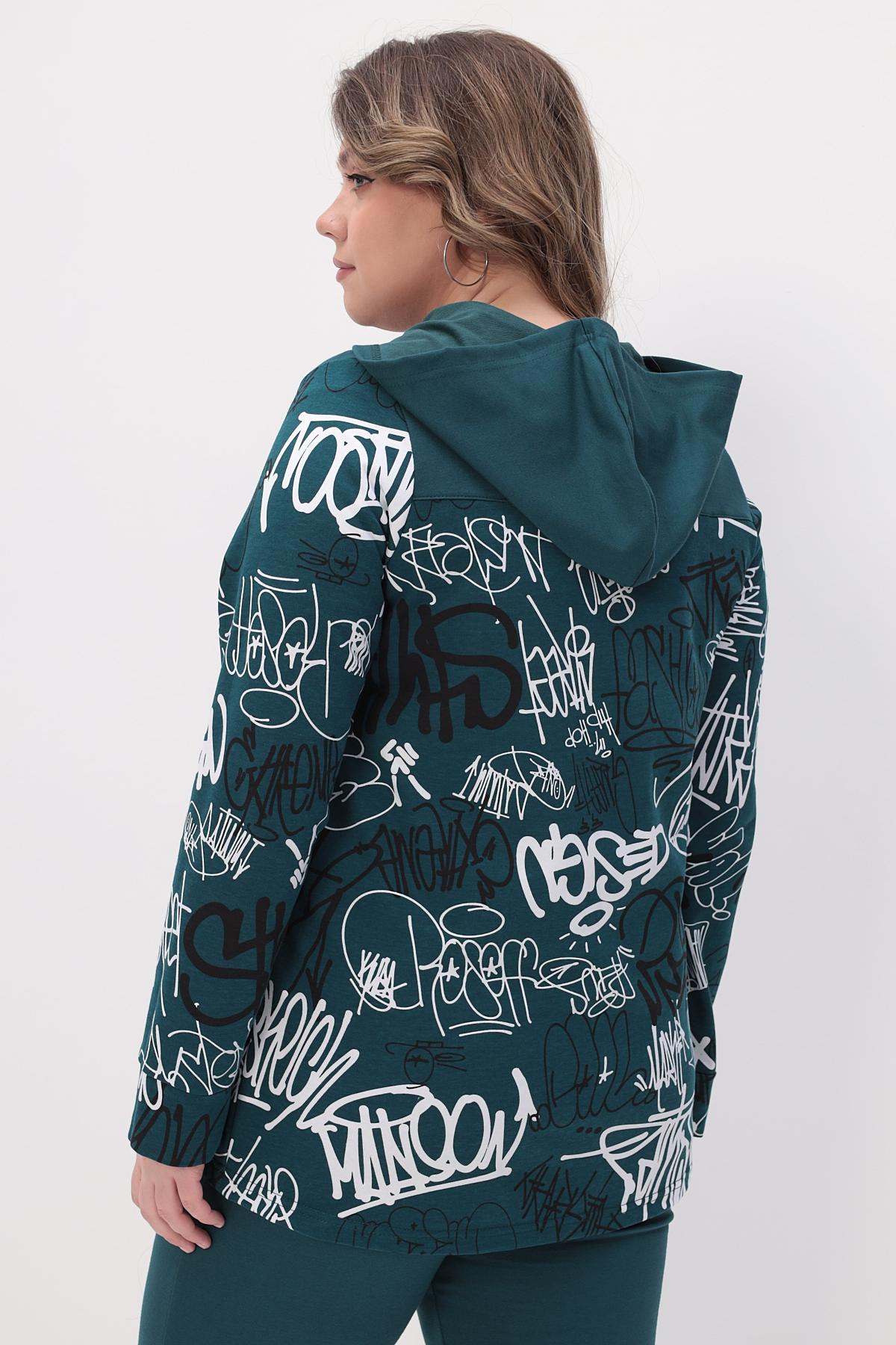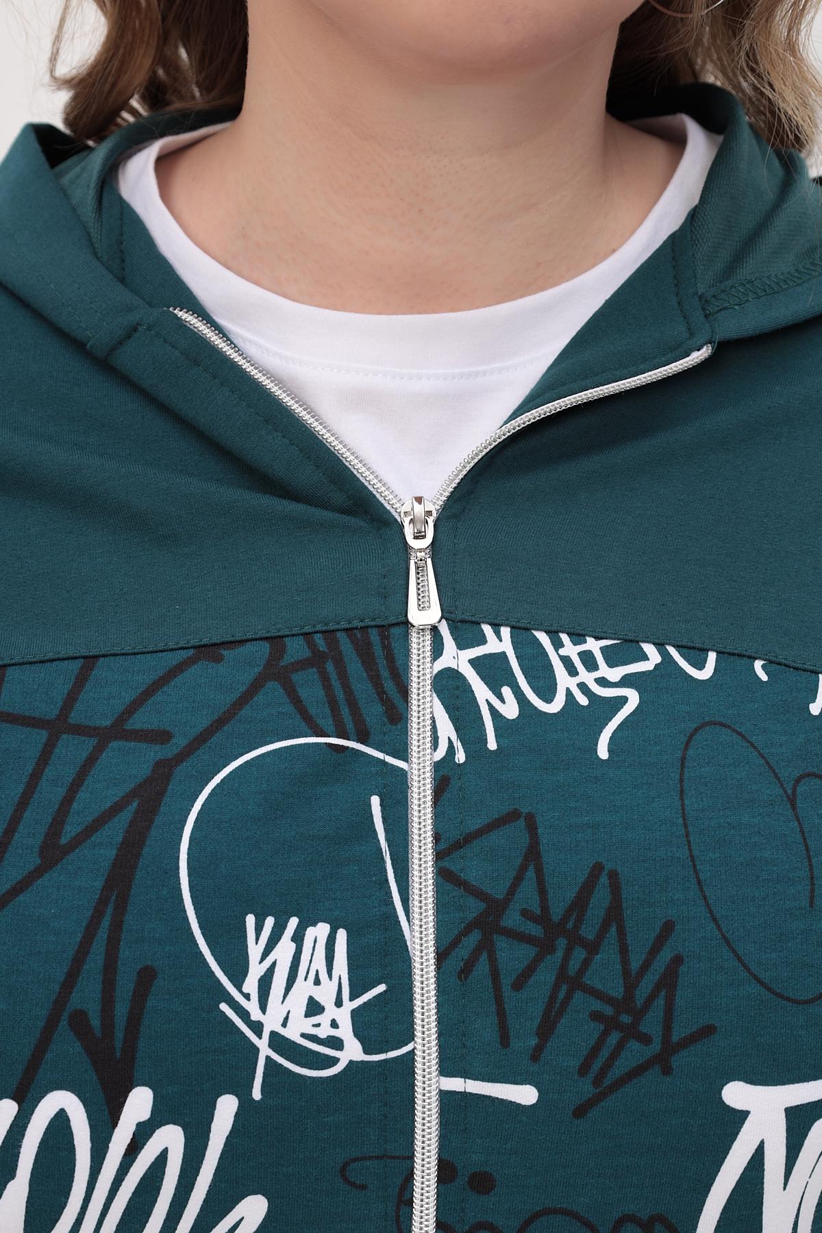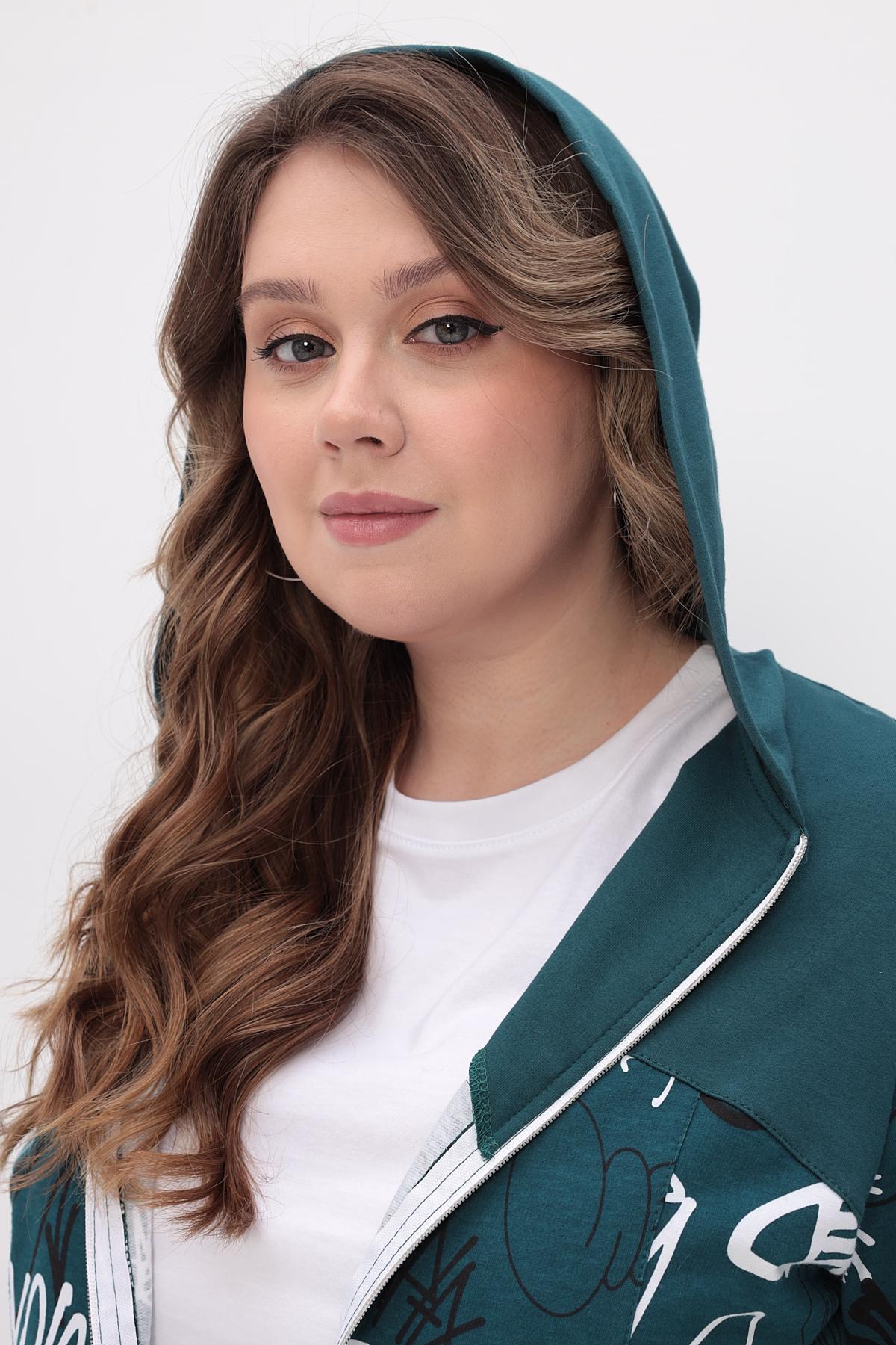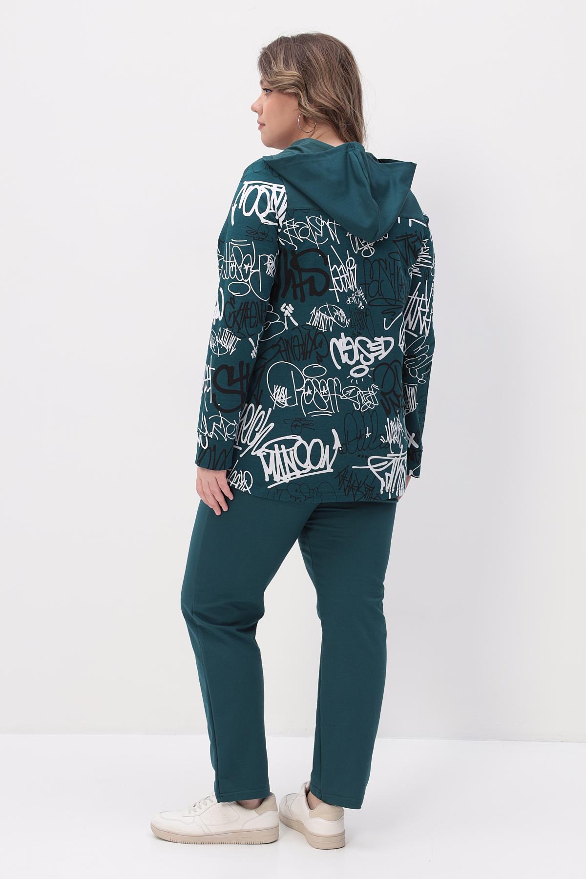 Костюм, в который можно влюбиться с первого взгляда. Сам костюм очень удобен и комфортен для ношения. Куртка прямого кроя с карманами, капюшоном и застёжкой на молнию. Основание куртки с рисунком, а кокетка и капюшон выполнены из однотонной ткани. Брюки прямые, в однотонном синем цвете. Удобную посадку изделия обеспечивает поясная резинка. Прекрасный костюм для дома, отдыха или спорта.