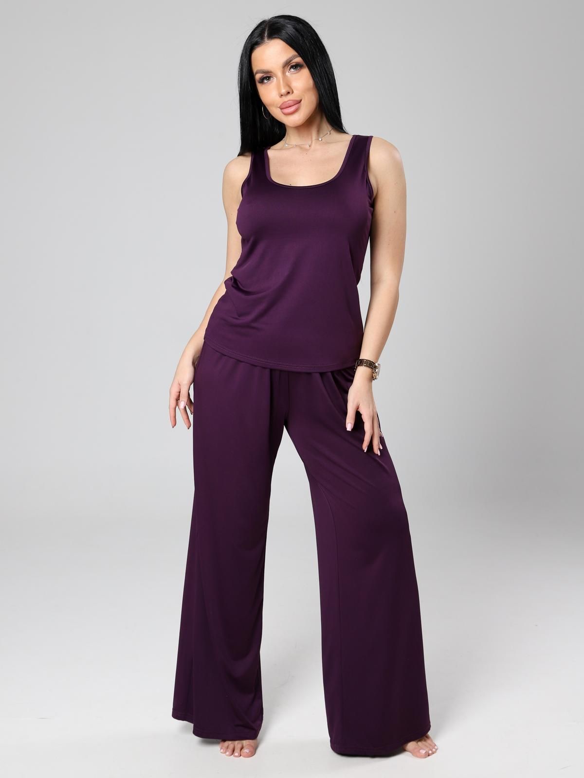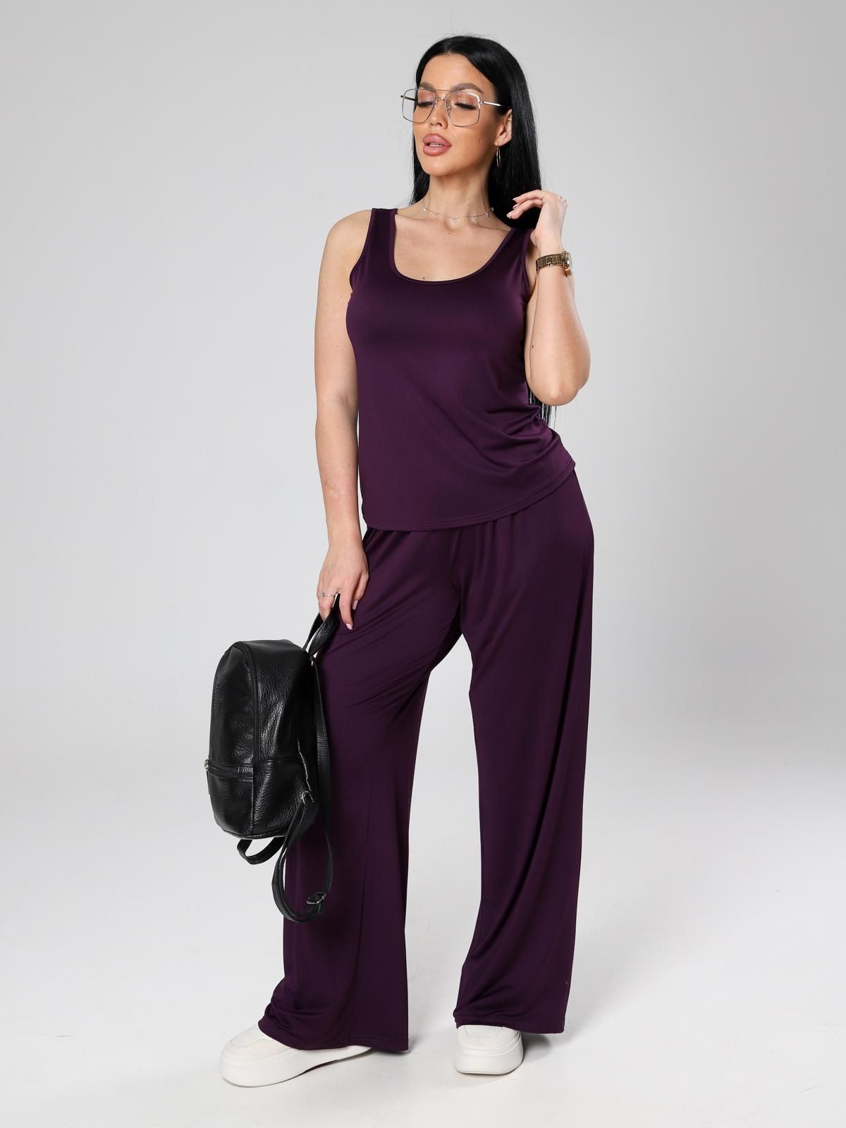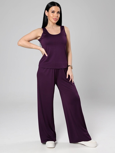Женский костюм с брюками из ткани «масло» — это комплект, состоящий из жакета или блузы и брюк, изготовленный из особого вида трикотажа. Ткань «масло» отличается мягким блеском, хорошей драпировкой и износостойкостью. Она меньше подвержена сминанию, чем другие виды трикотажа, и хорошо сохраняет форму.