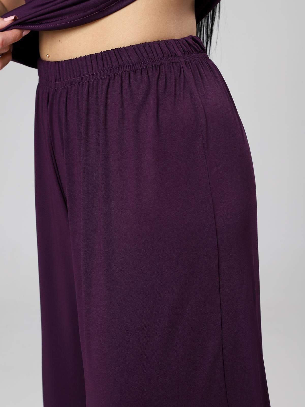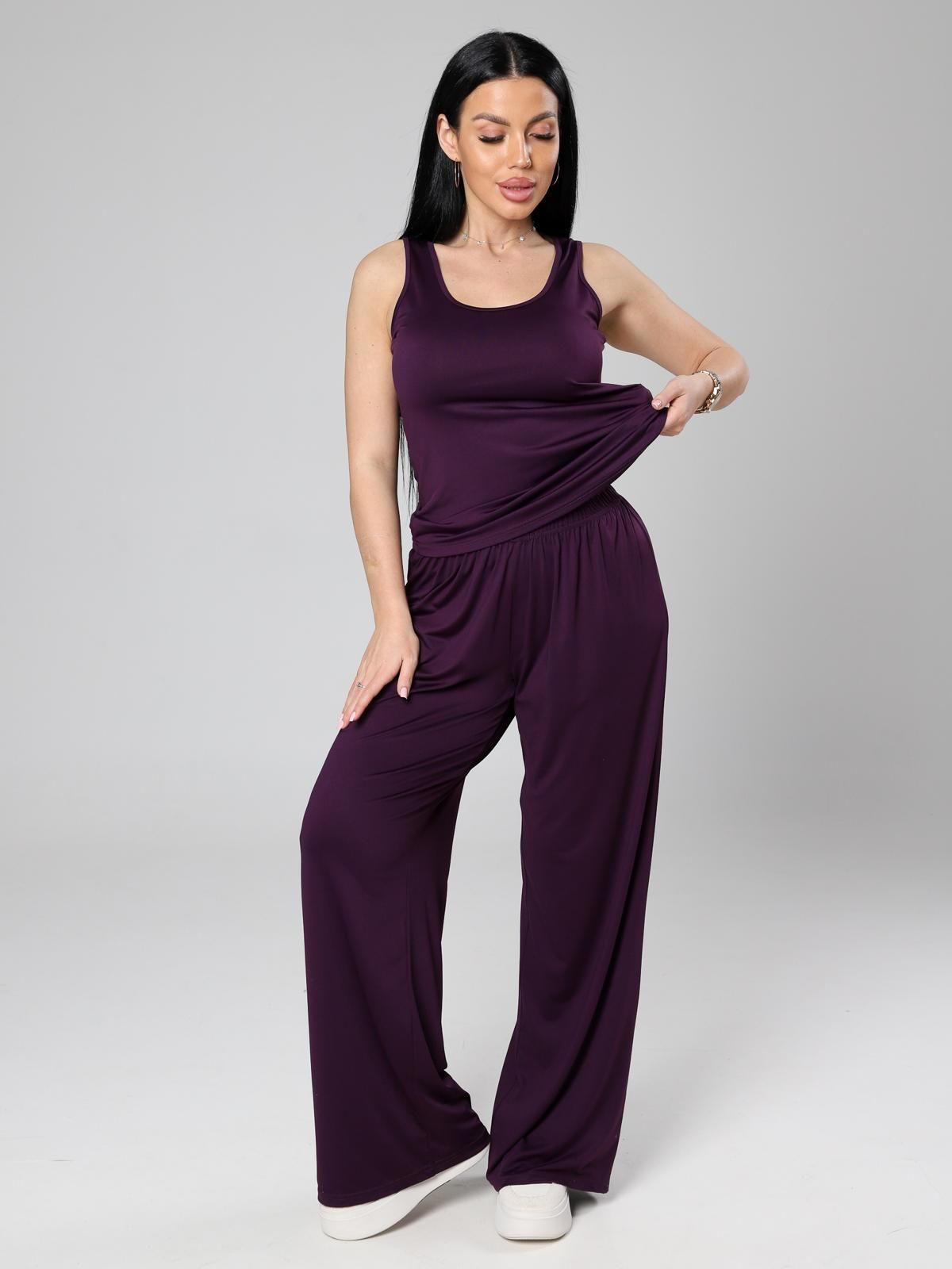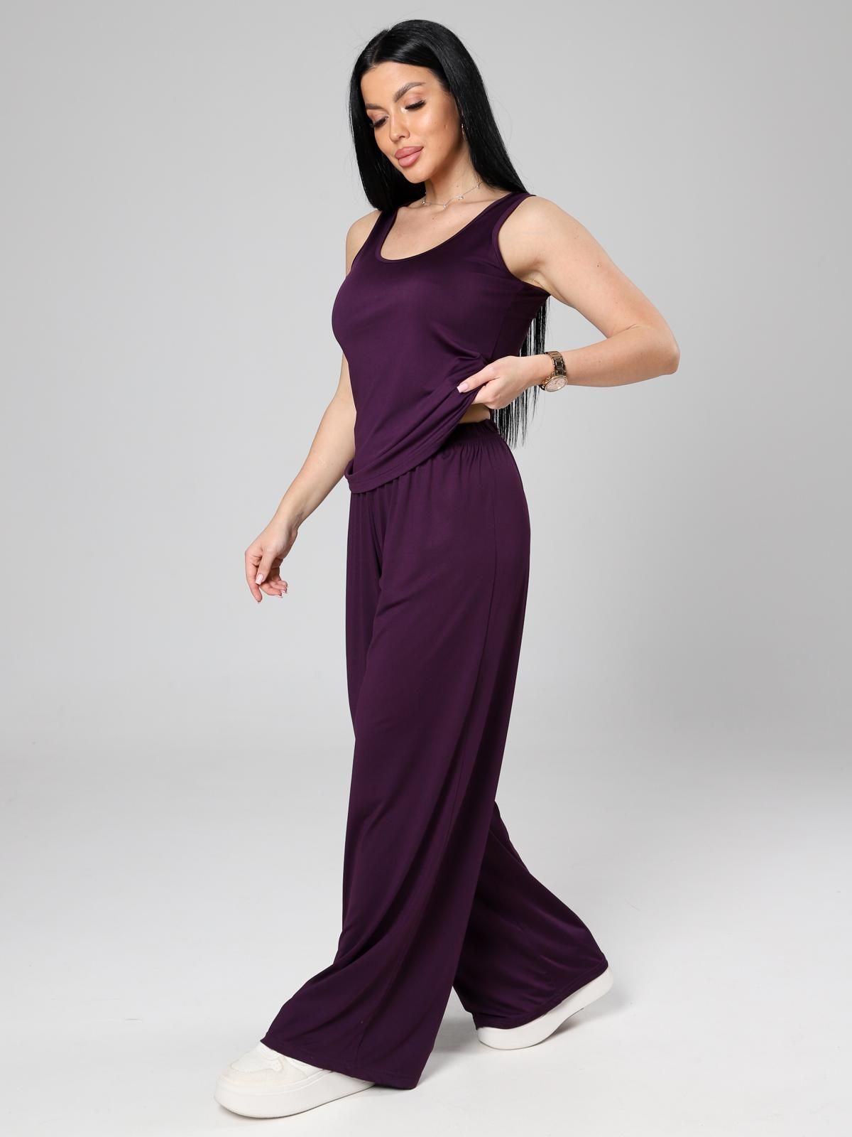 Женский костюм с брюками из ткани «масло» — это комплект, состоящий из жакета или блузы и брюк, изготовленный из особого вида трикотажа. Ткань «масло» отличается мягким блеском, хорошей драпировкой и износостойкостью. Она меньше подвержена сминанию, чем другие виды трикотажа, и хорошо сохраняет форму.